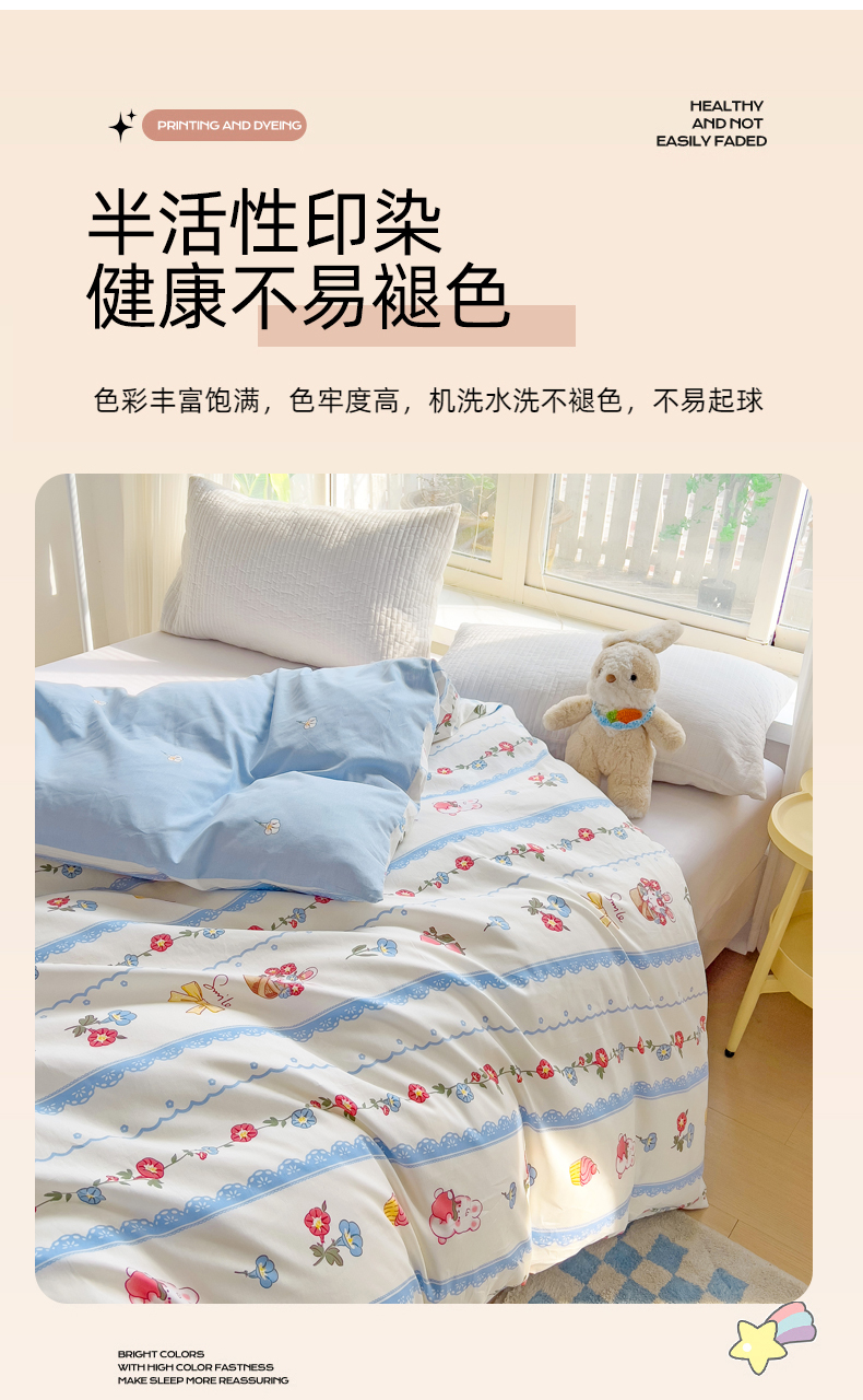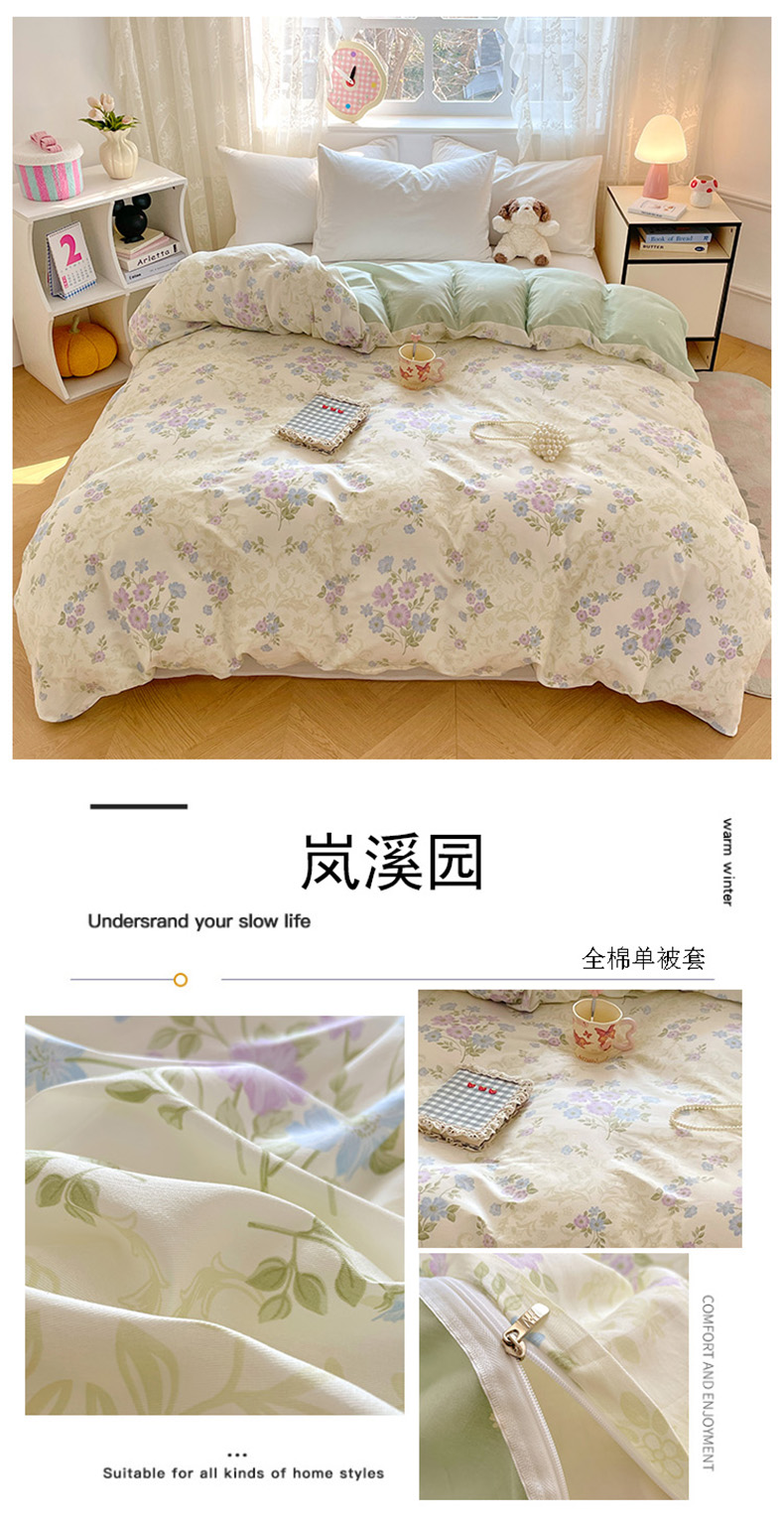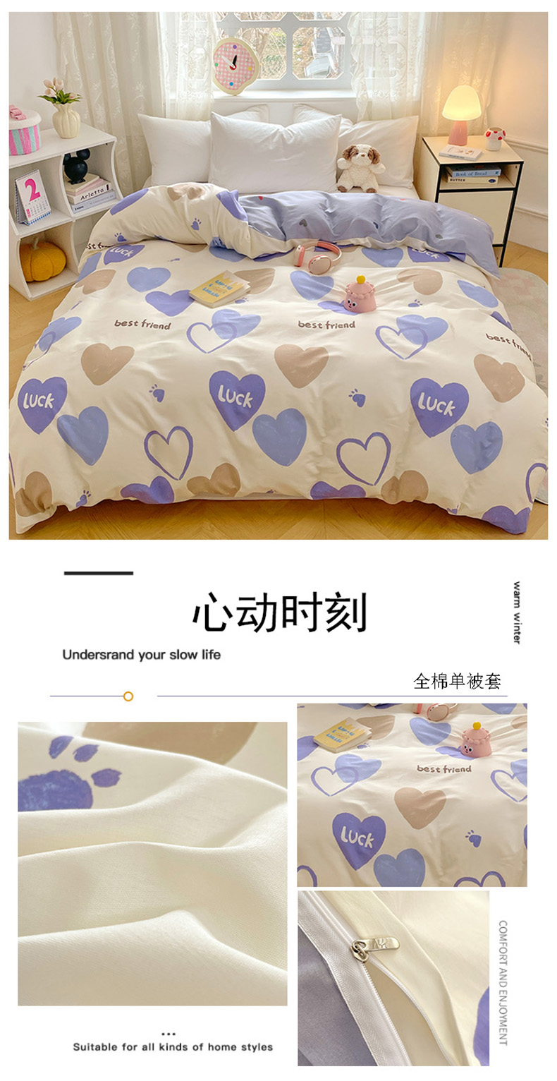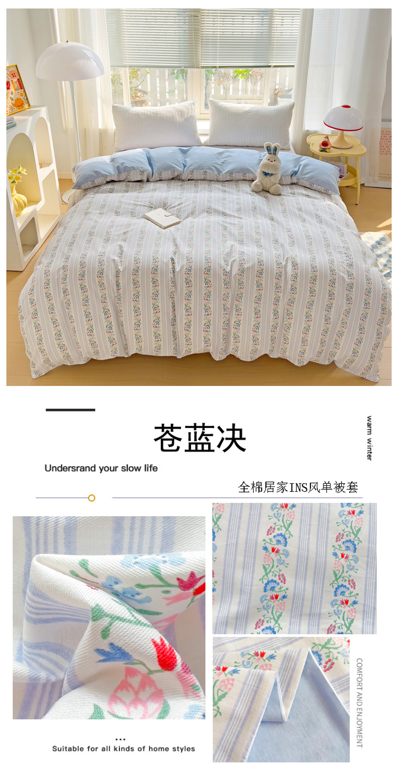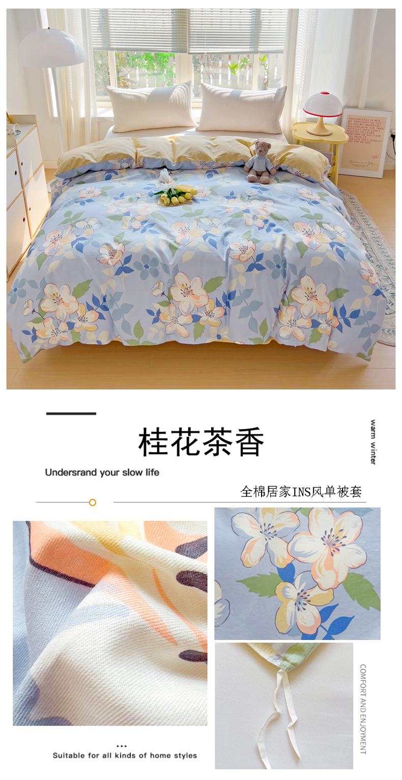 自然醒居家ins风纯棉被套单件100全棉床单床笠床裙150x200单人儿童卡通1.5被罩200x230被单枕套NH151
