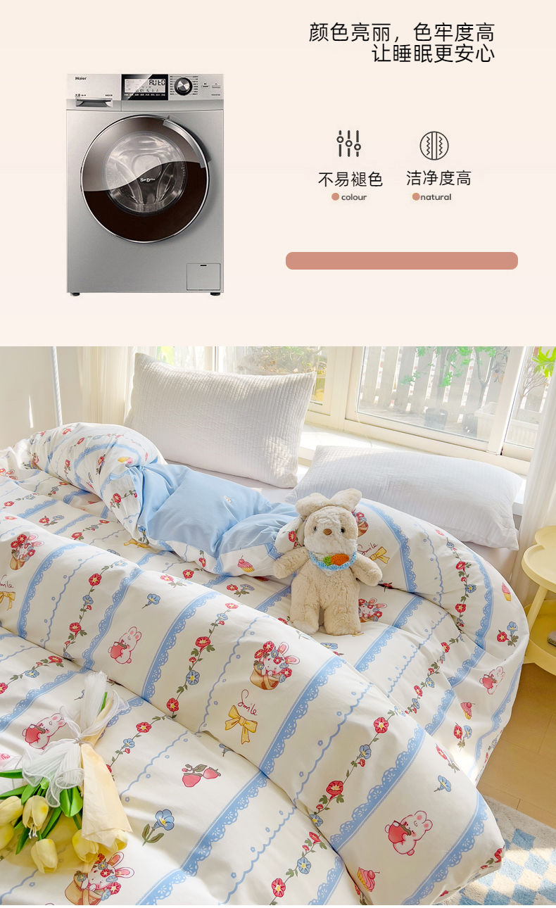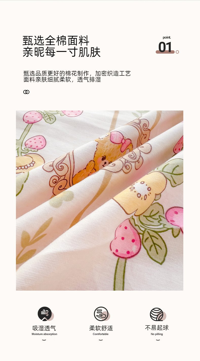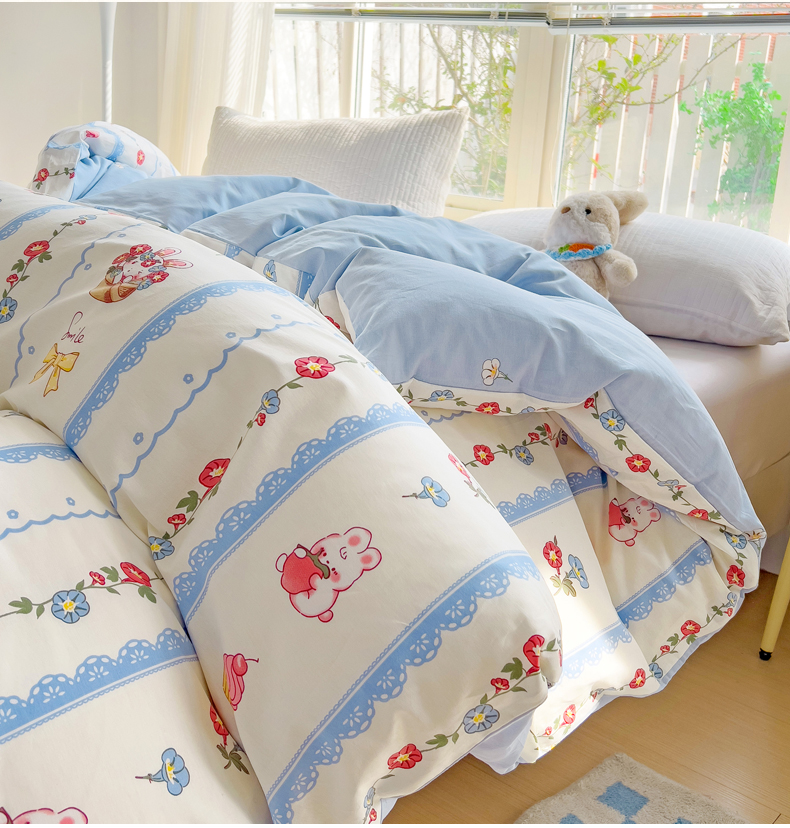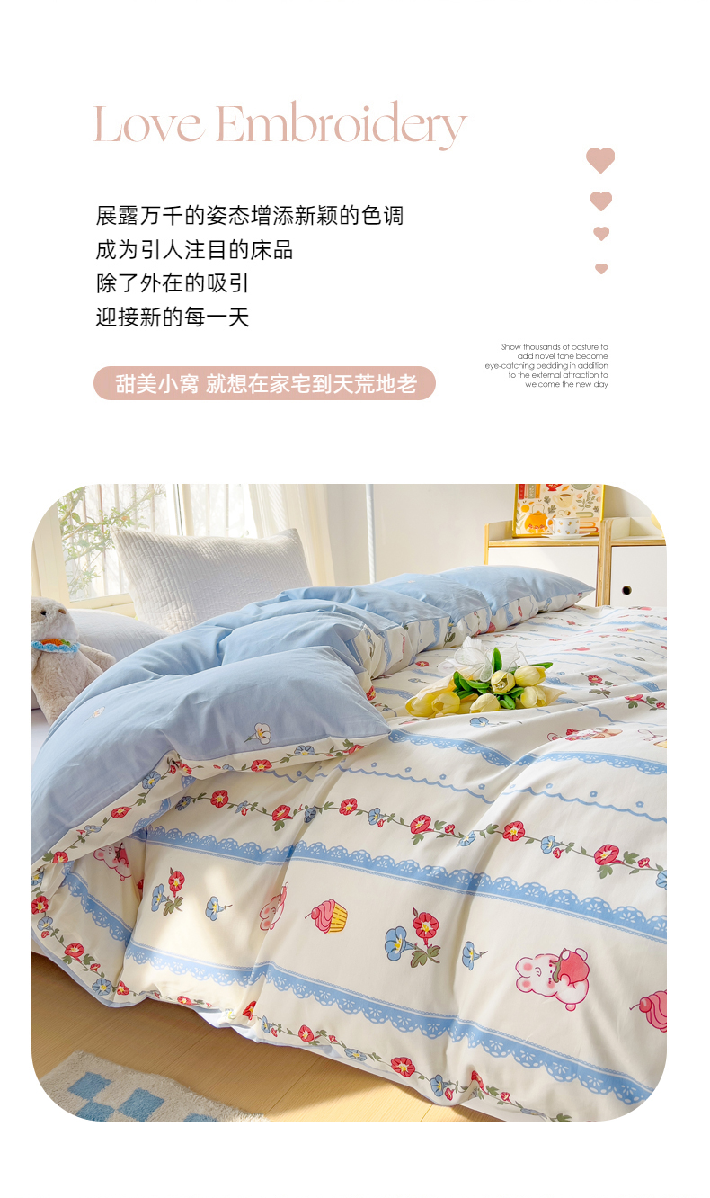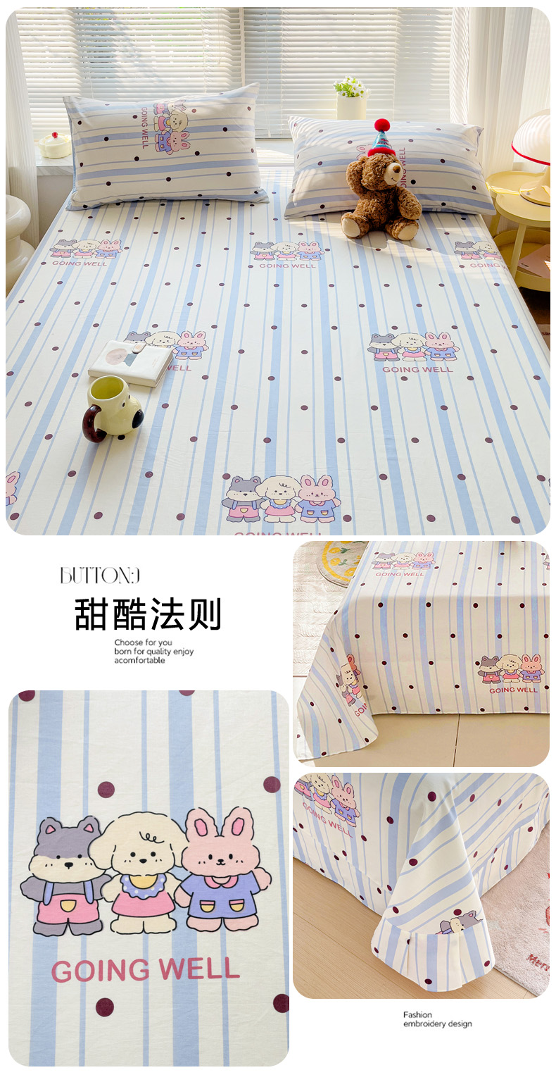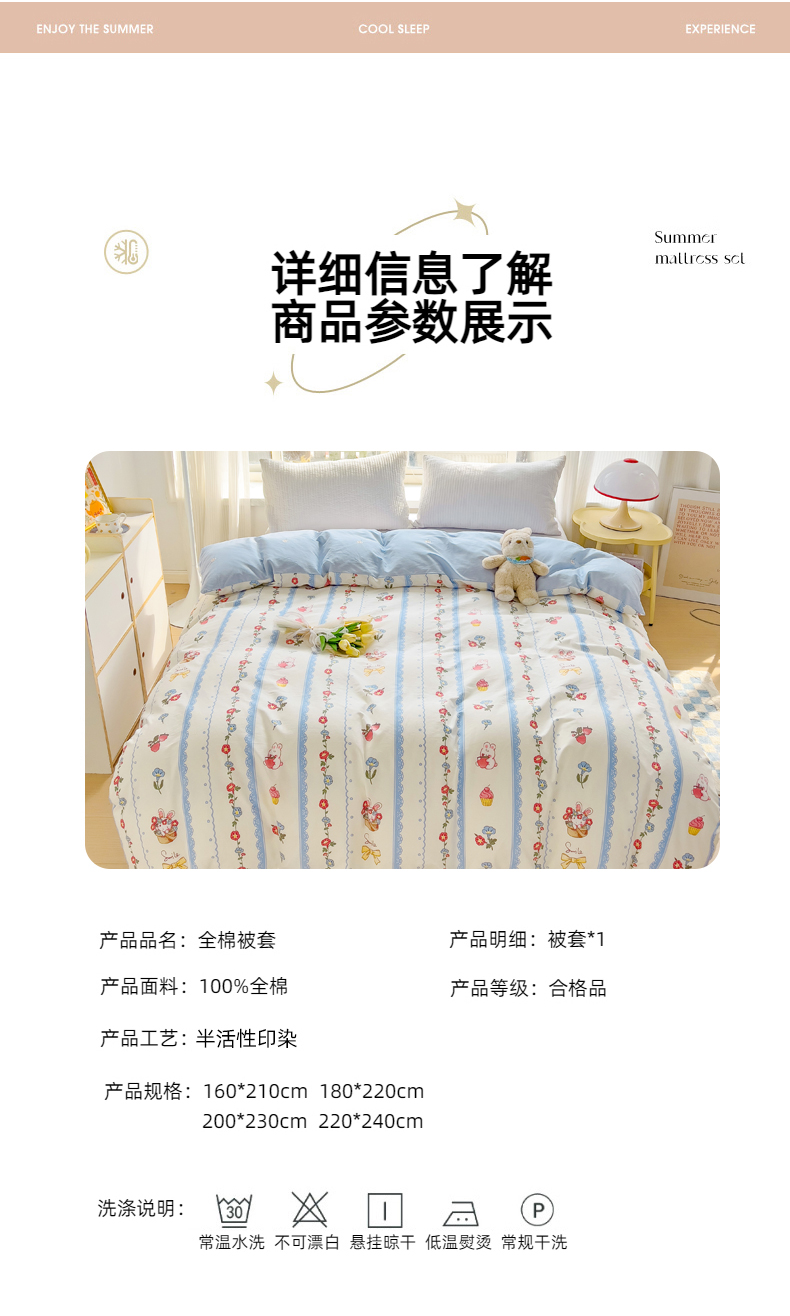 自然醒居家ins风纯棉被套单件100全棉床单床笠床裙150x200单人儿童卡通1.5被罩200x230被单枕套NH151