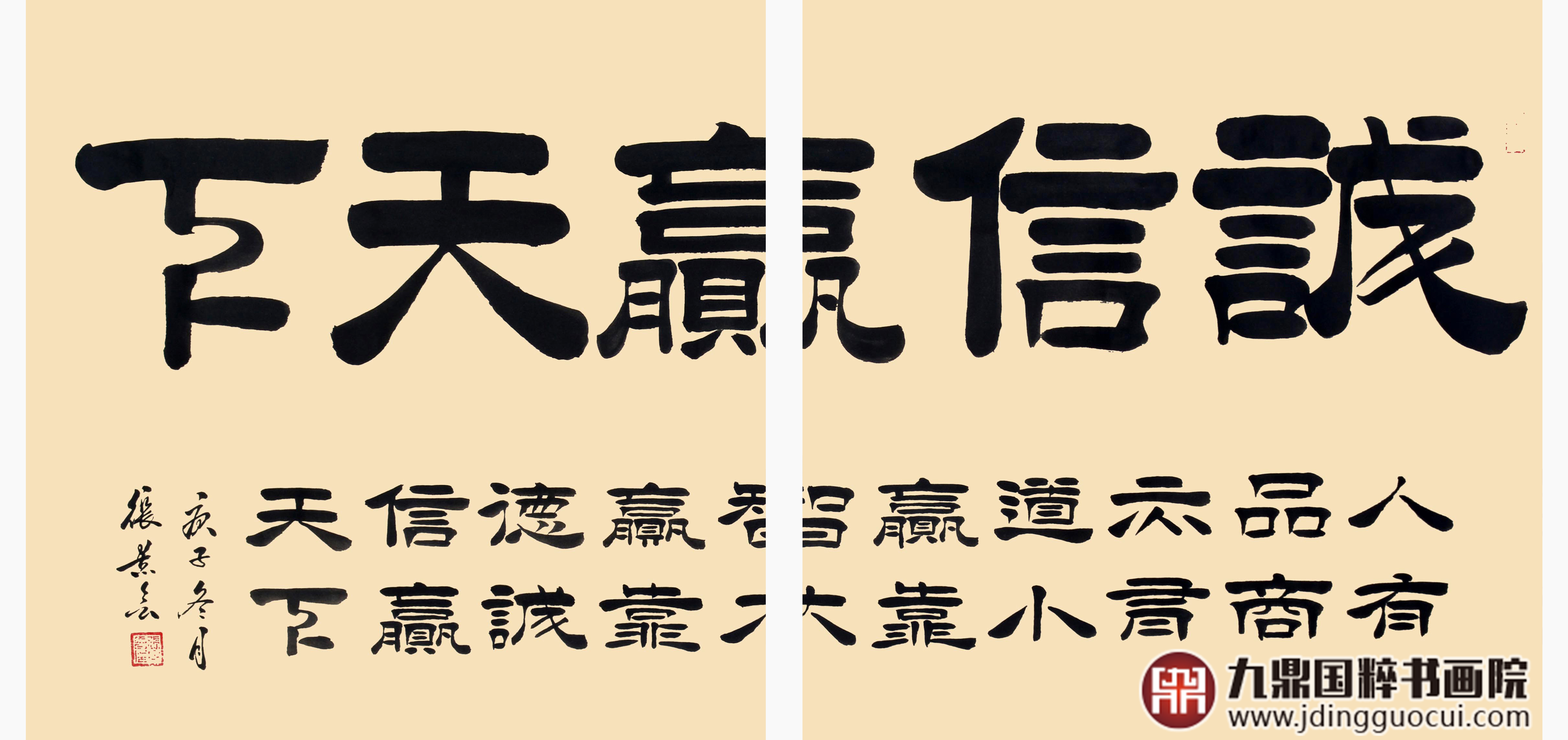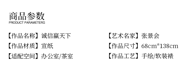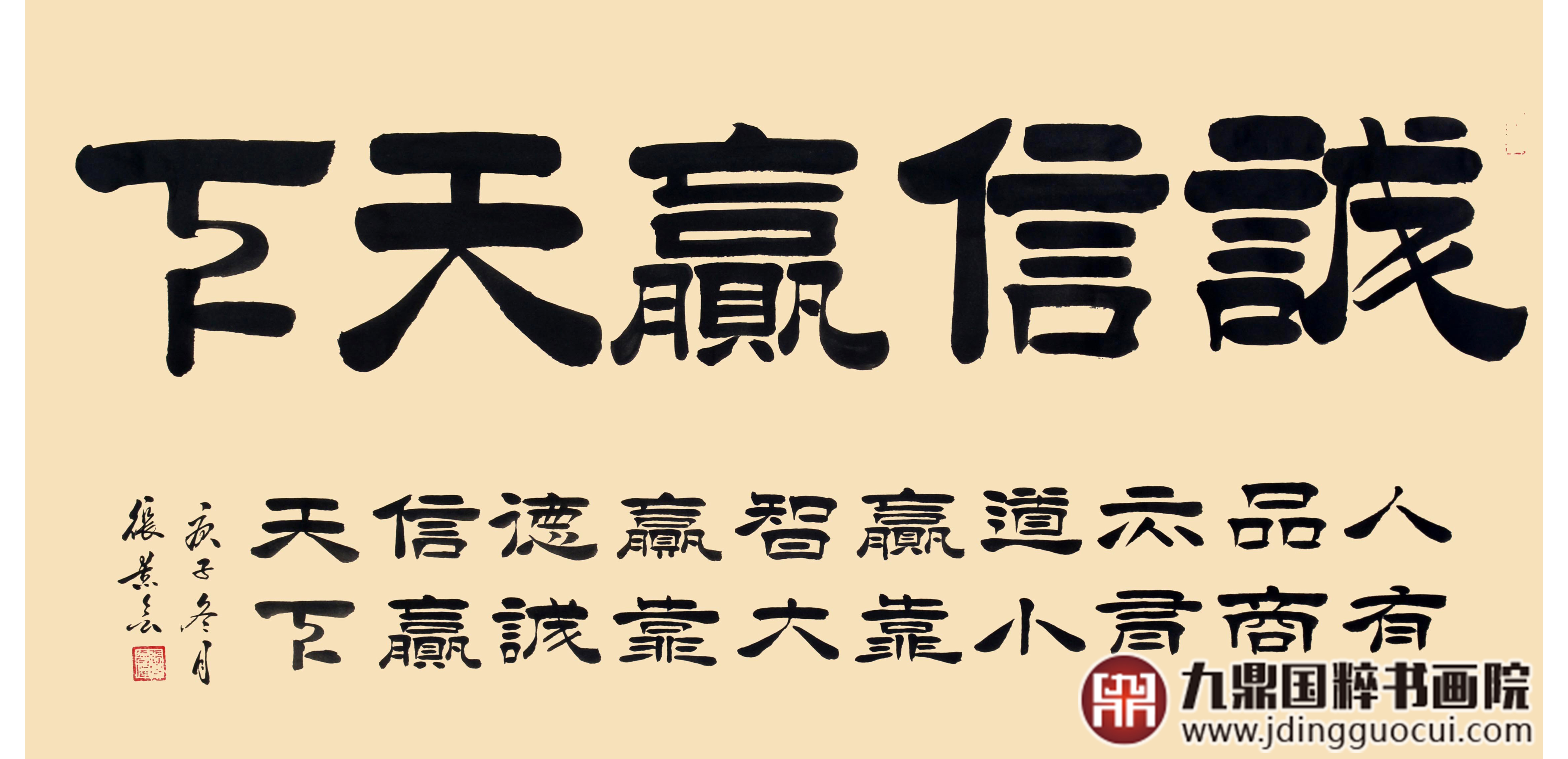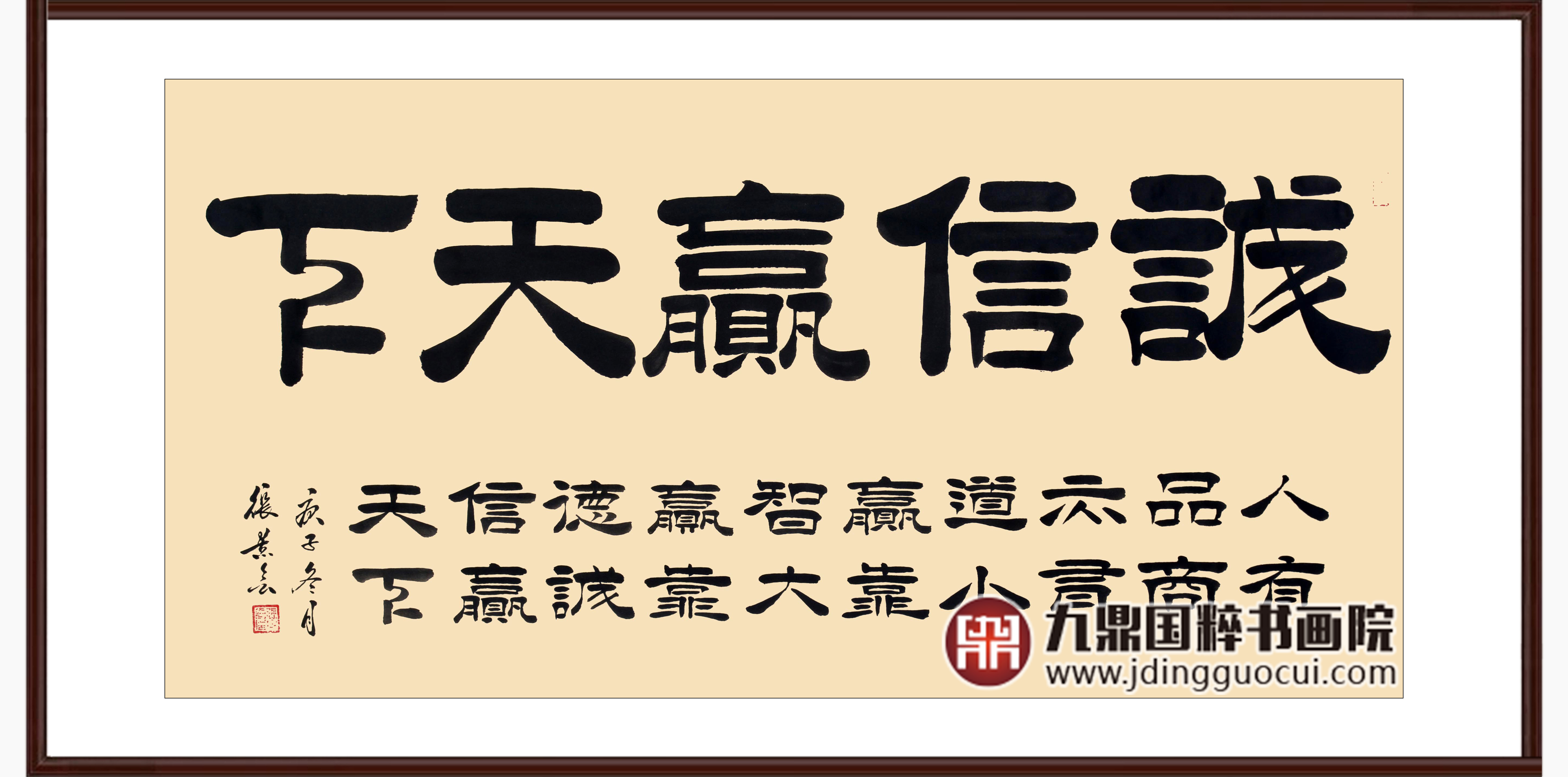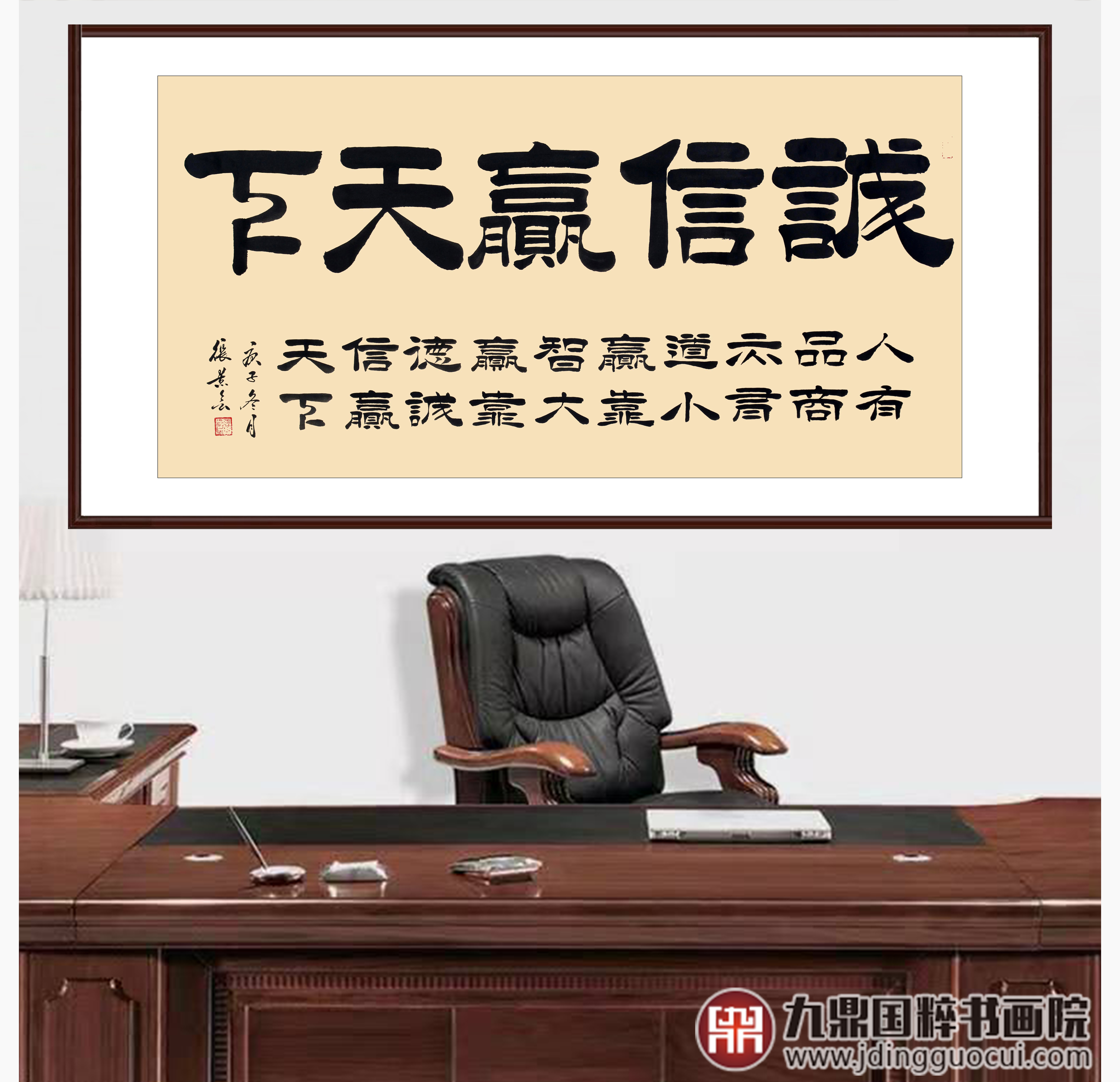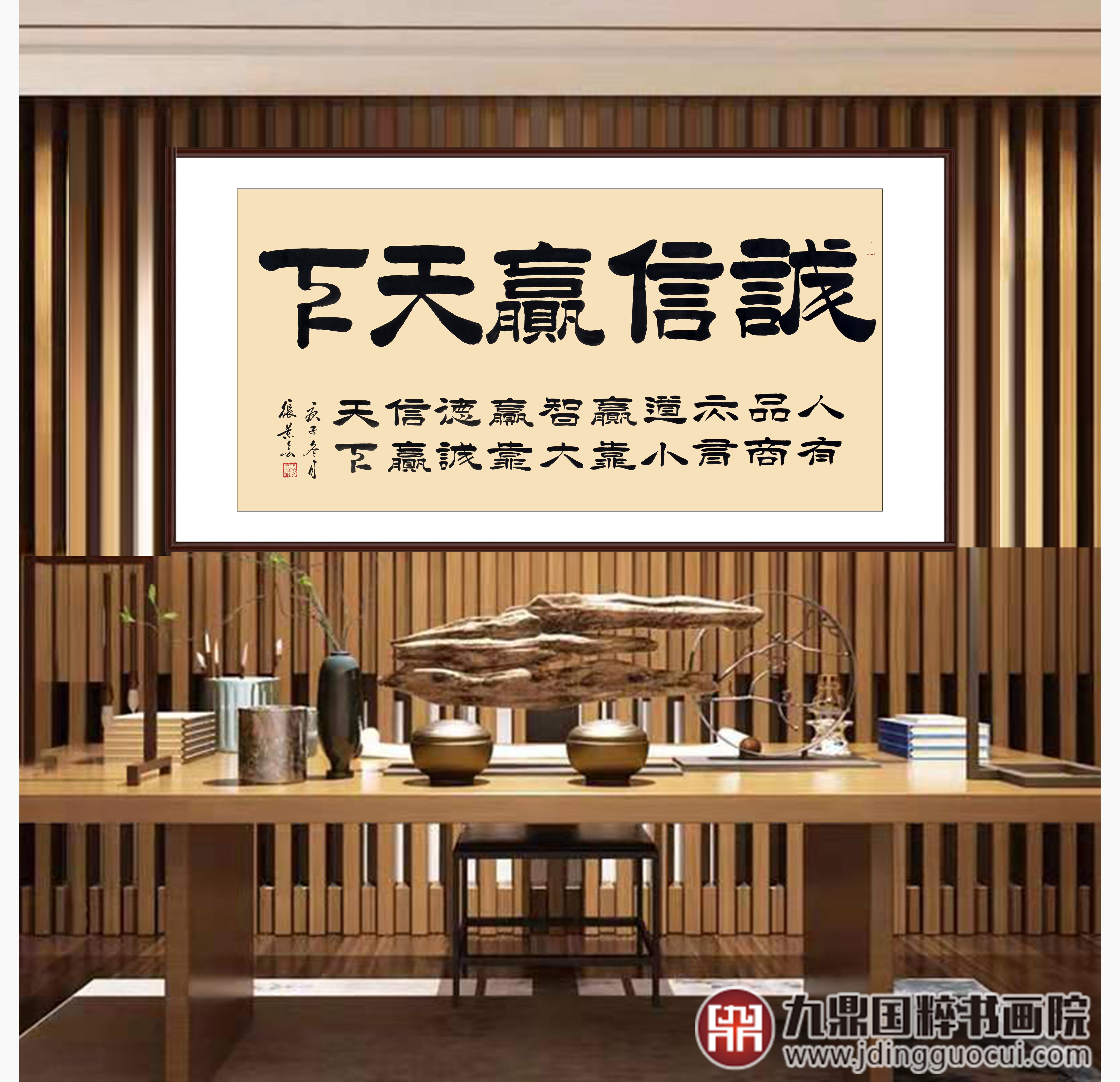 张景会《诚信赢天下》68*138cm 四字书法横幅作品 办公室/茶室挂画