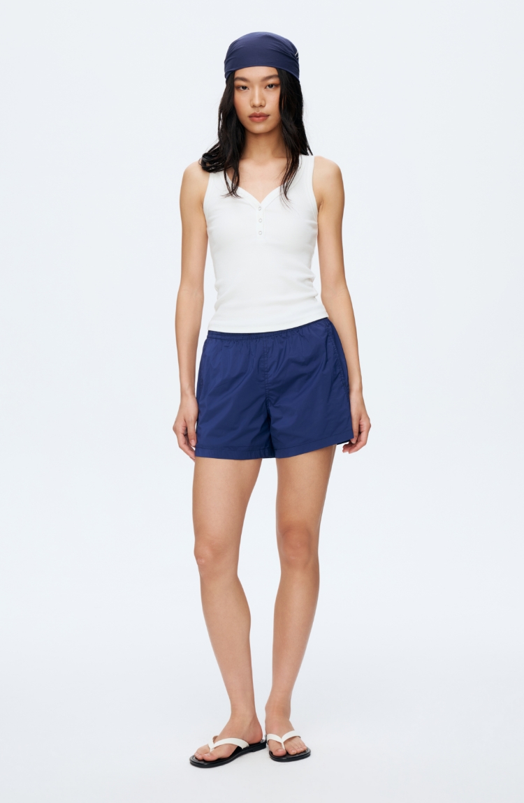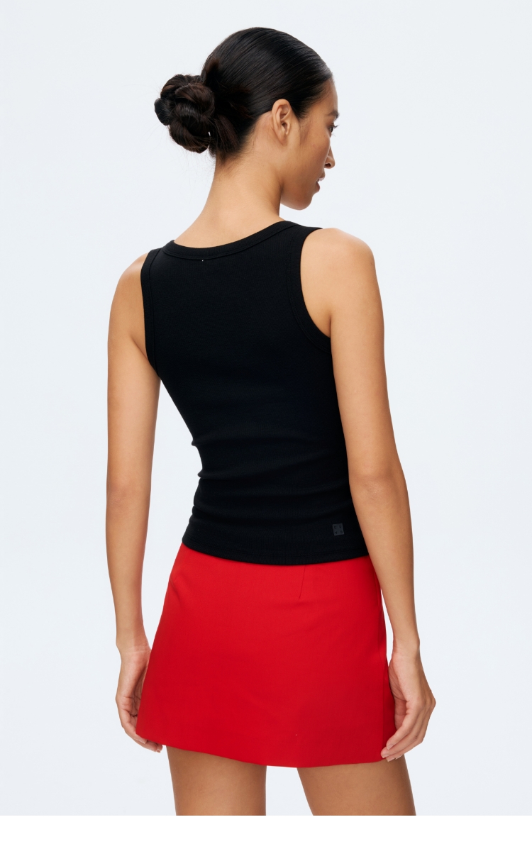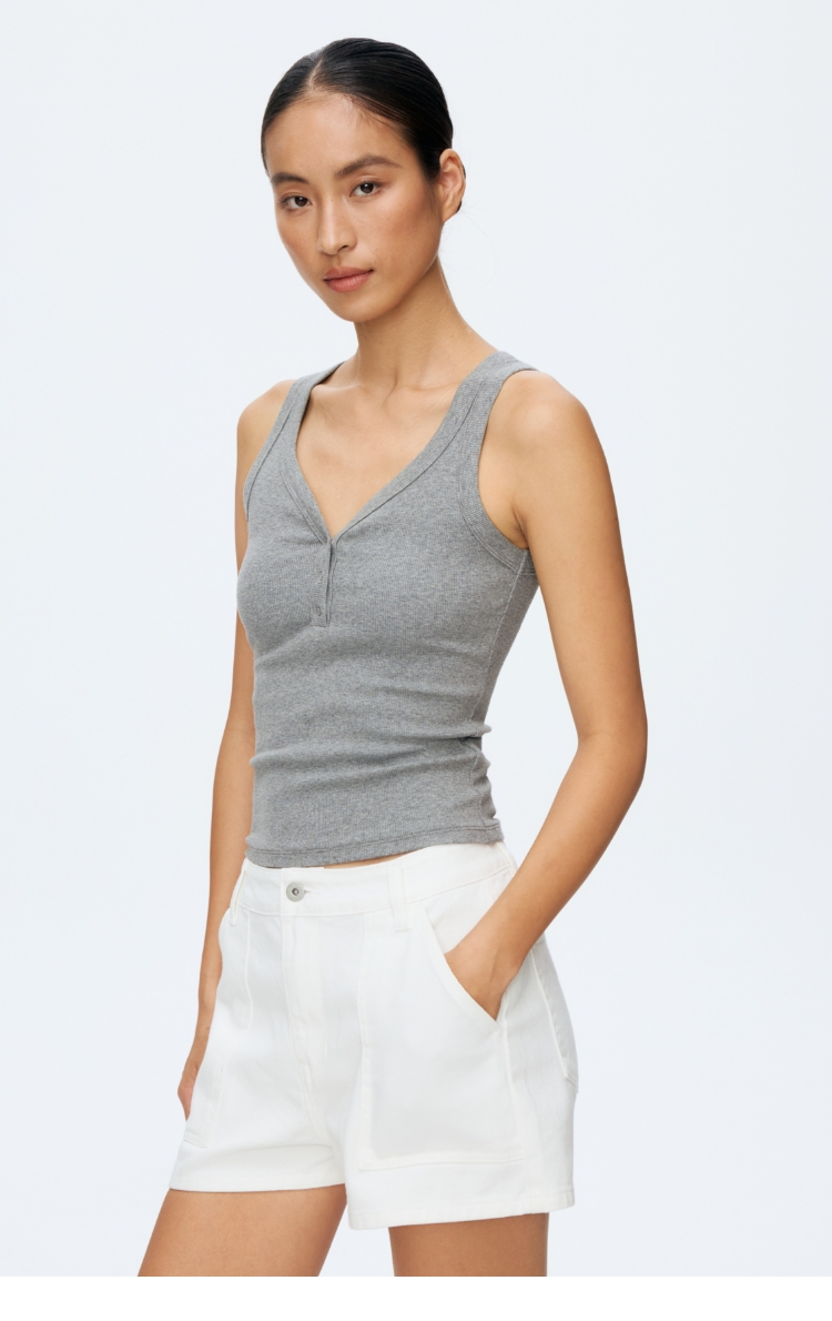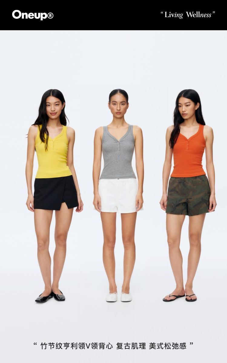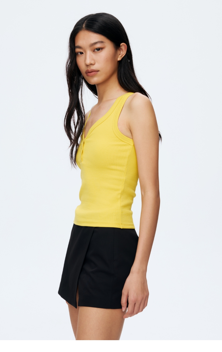 Oenup竹节纹亨利领V领背心