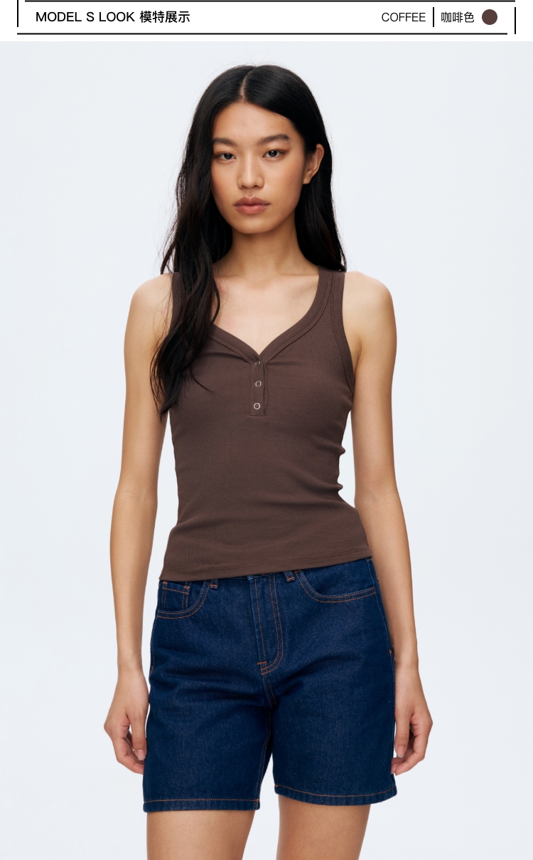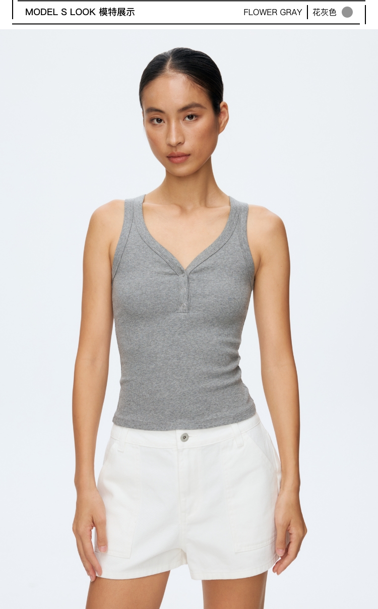 竹节纹亨利领V领背�
