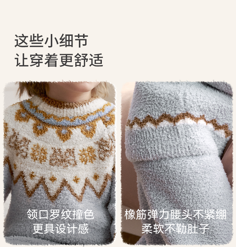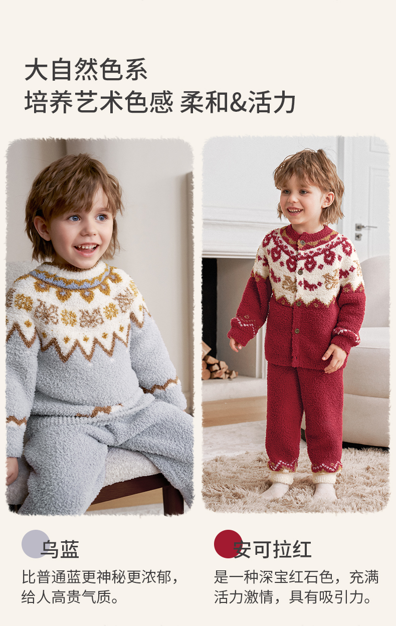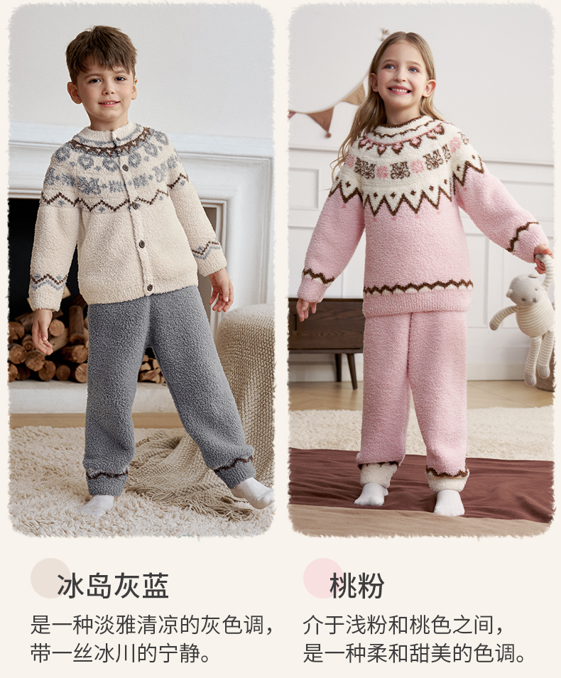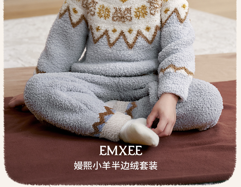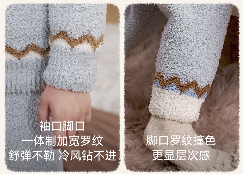 【宝宝服饰】嫚熙儿童家居服半边绒男女童宝宝加厚加绒保暖睡衣套装秋冬季新品
