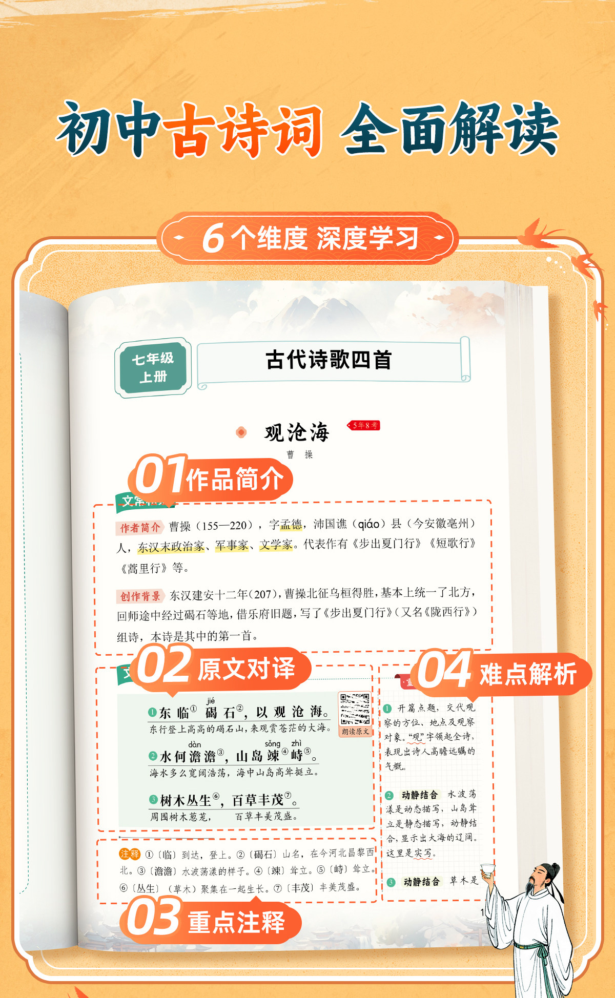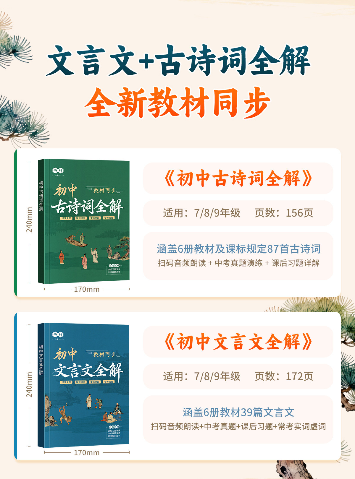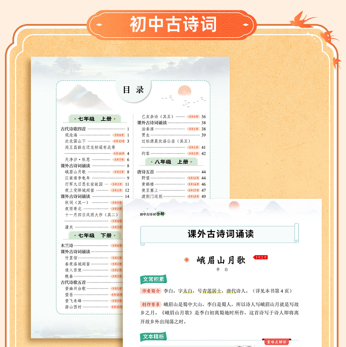 书行2026初中必背古诗词文言文全解七八九年级中考教辅同步教材常考文言文通用87首古诗词
