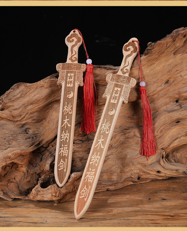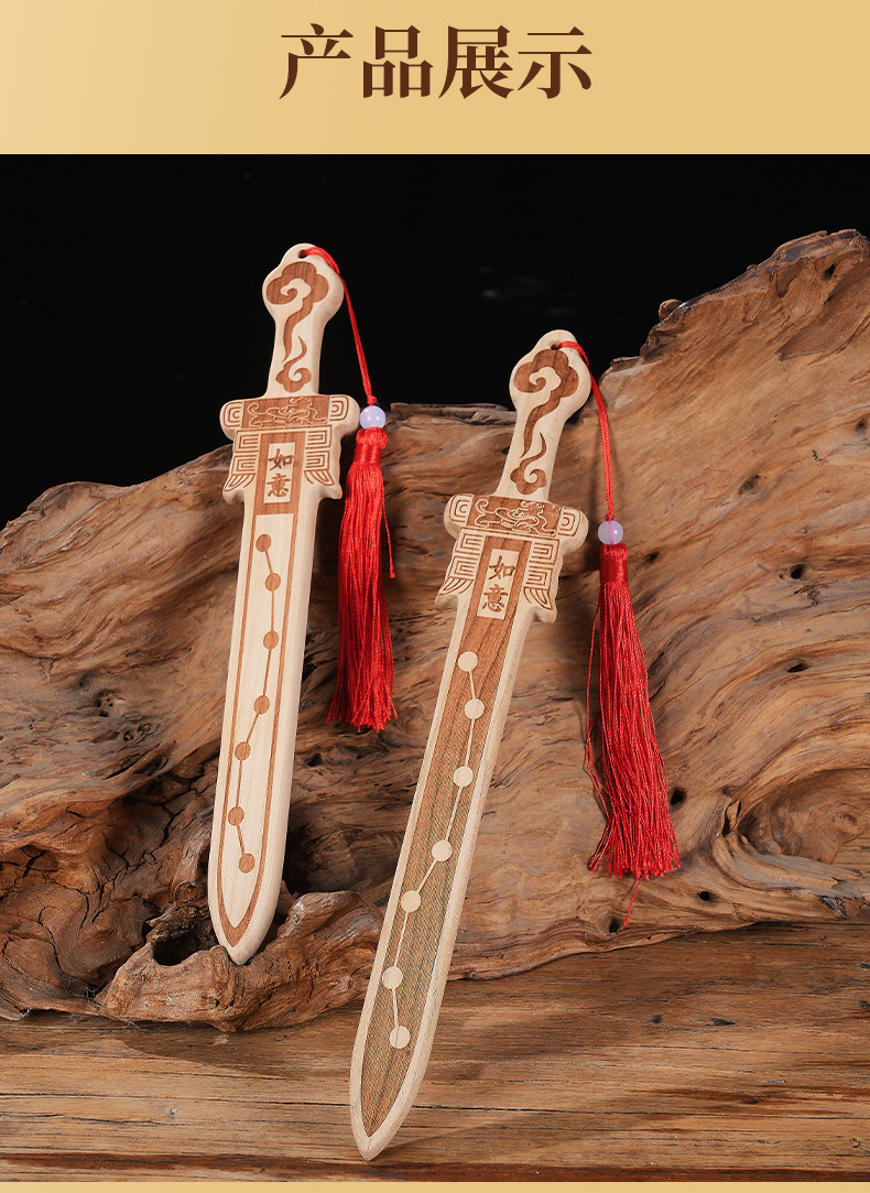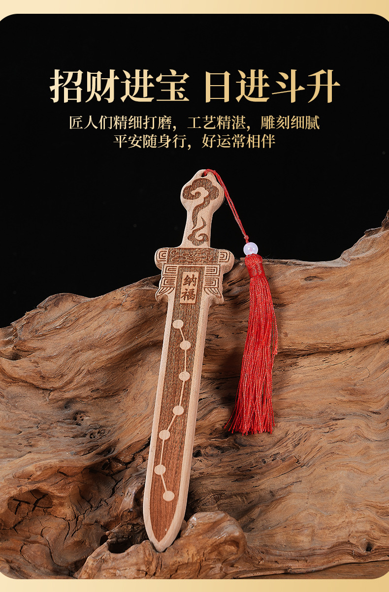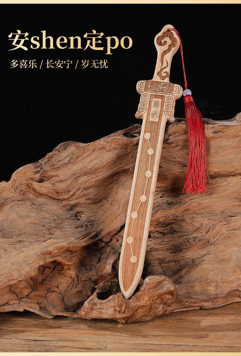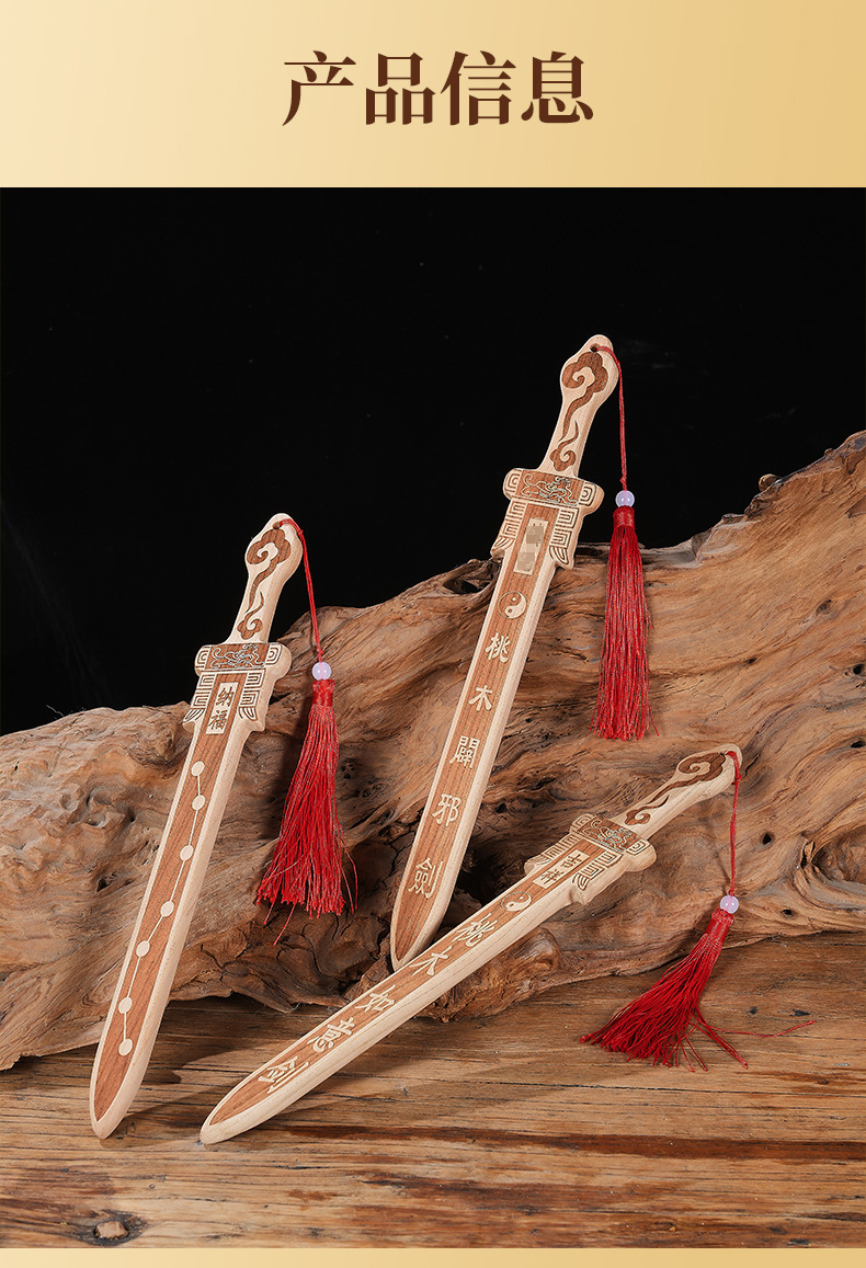 「数款尺寸!桃木七星剑」原木质朱砂雕刻挂件卧室宝剑摆件吉祥纳福客厅摆件宝剑家居饰品