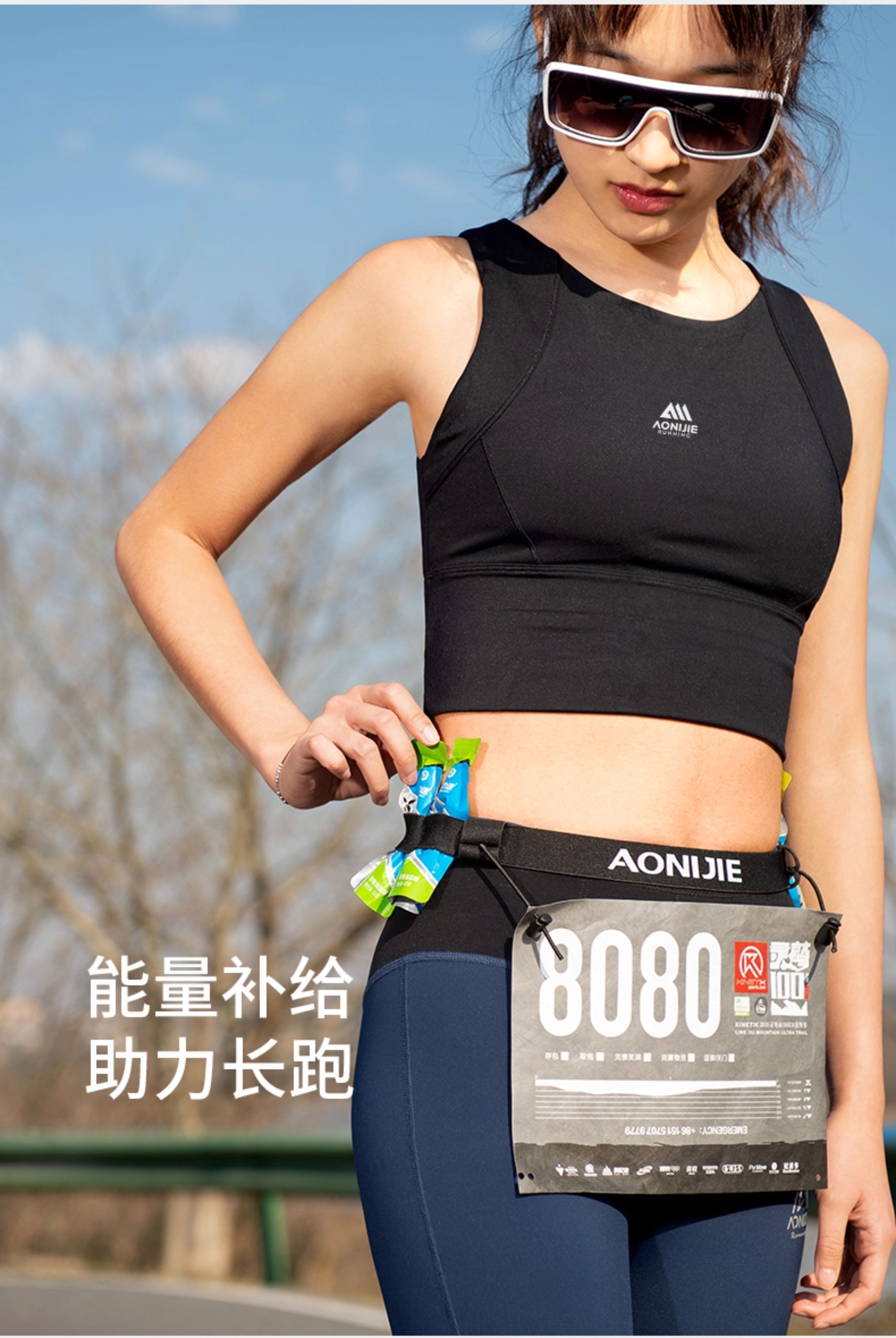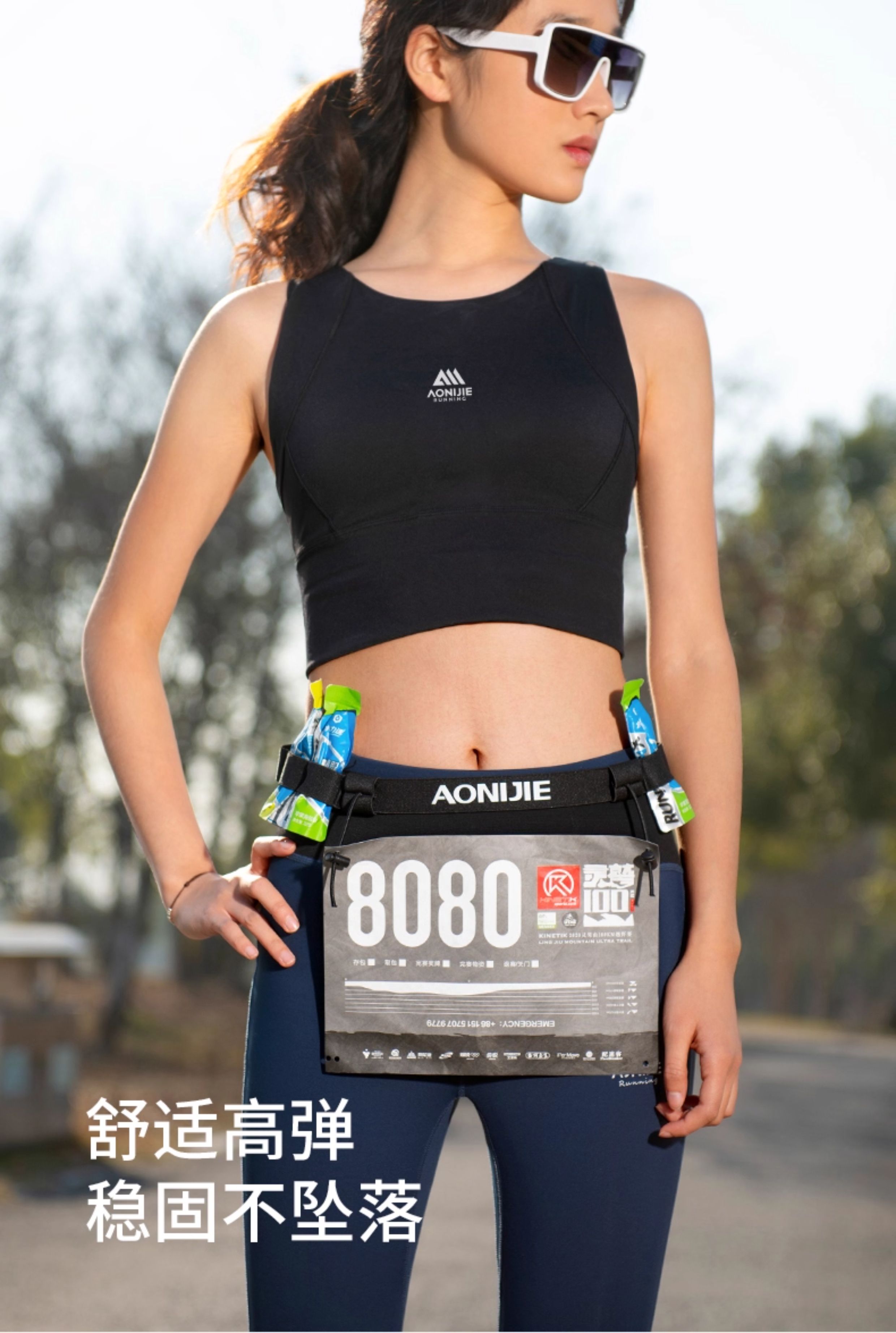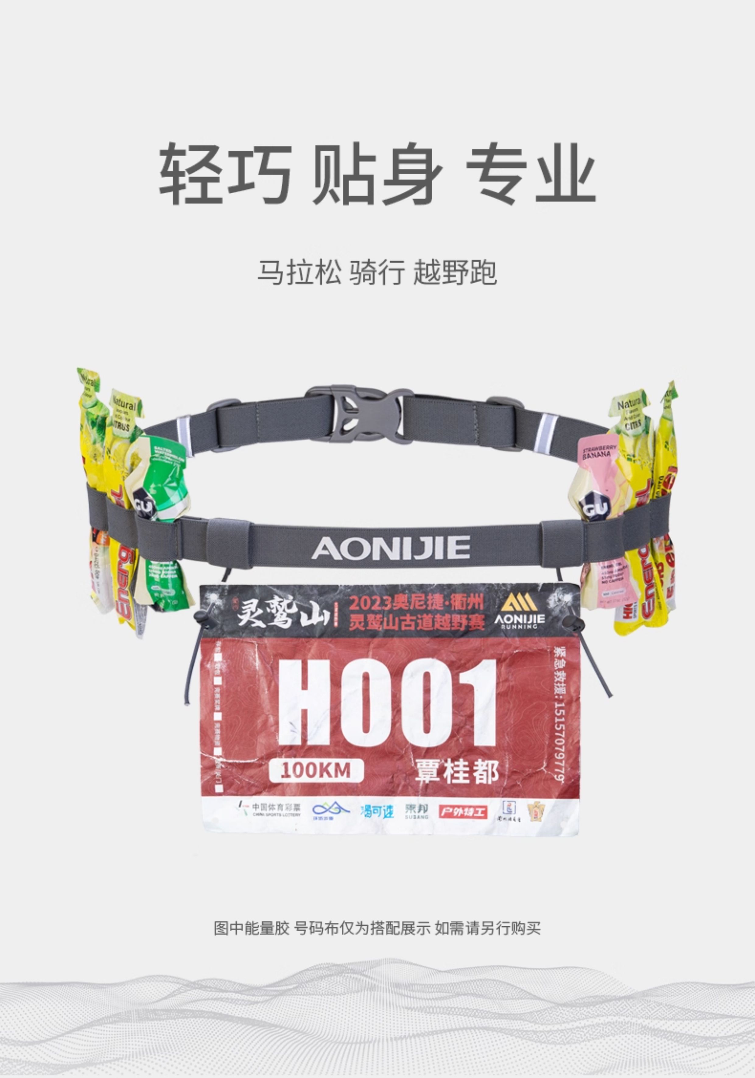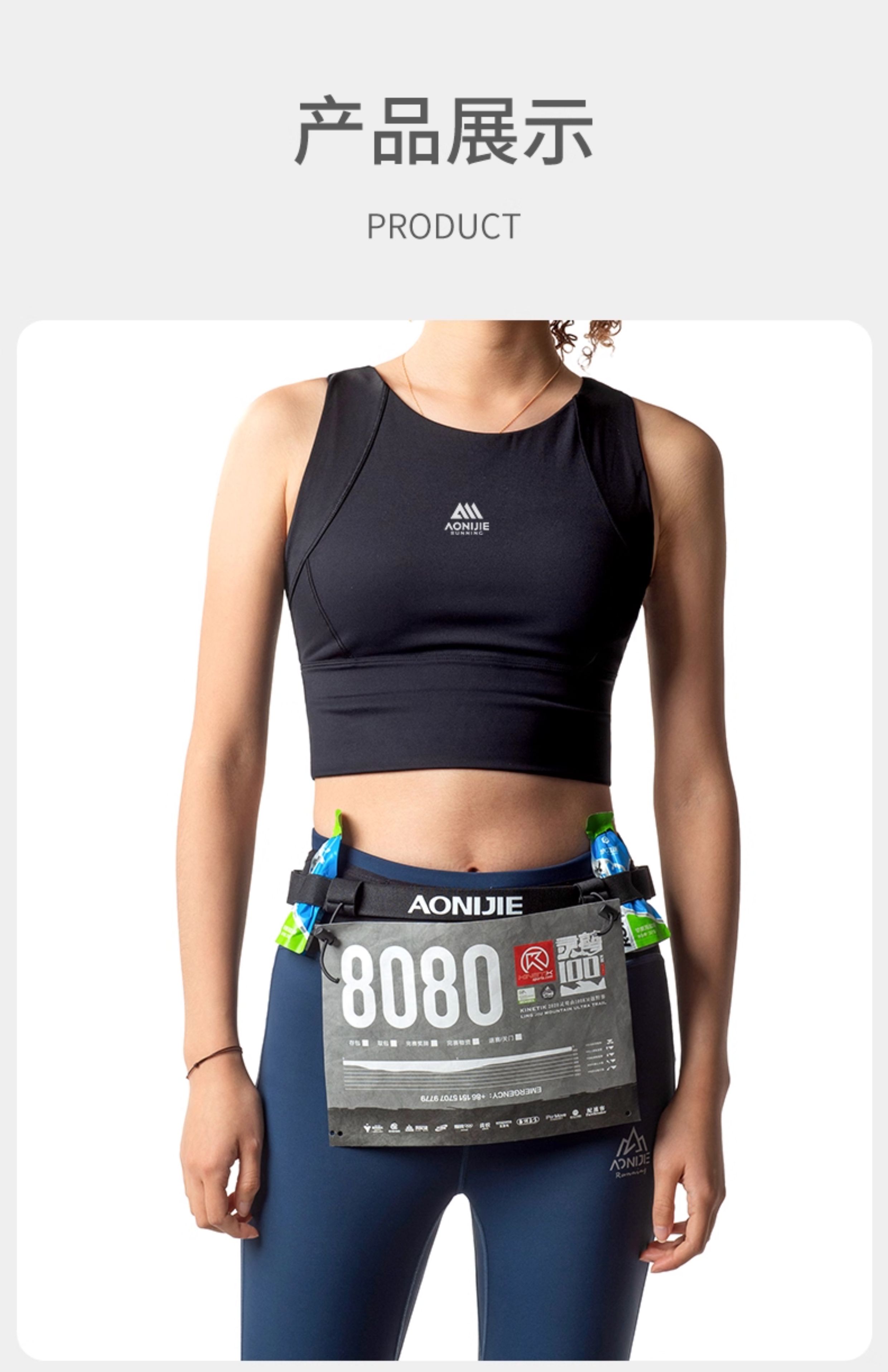 马拉松比赛号码布固定跑步带松紧越野跑竞赛号码簿反光腰带能量胶