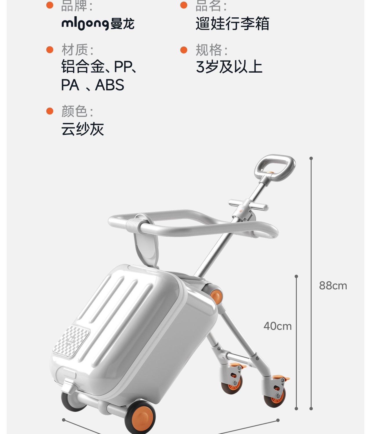 【春日趣玩FUN】曼龙mloong 遛娃行李箱宝宝可坐可骑儿童旅行箱可拆卸拉杆箱2合1带娃出行神器