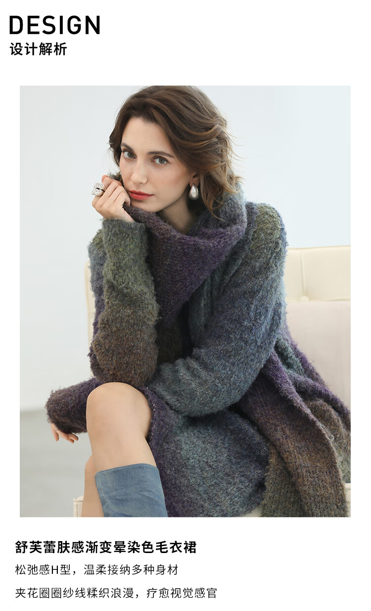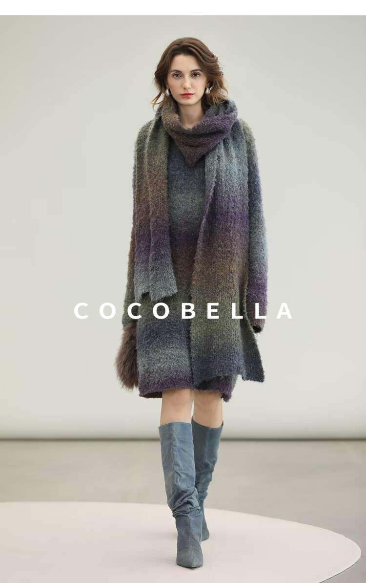 COCOBELLA舒芙蕾轻法风渐变软糯舒适毛衣裙气质连衣裙MZ7076
