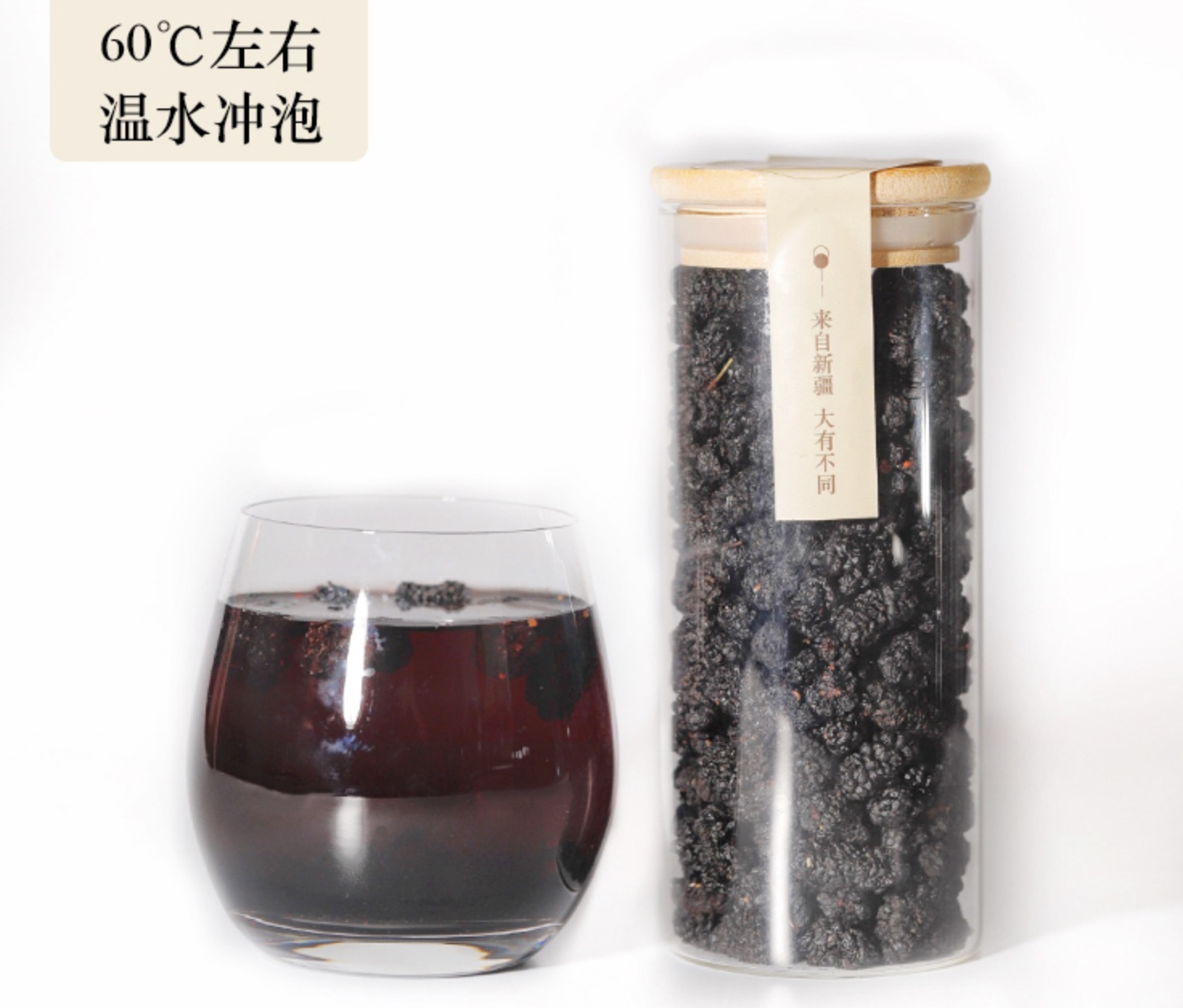 注意:不要用沸水,会破坏桑葚干花青素!