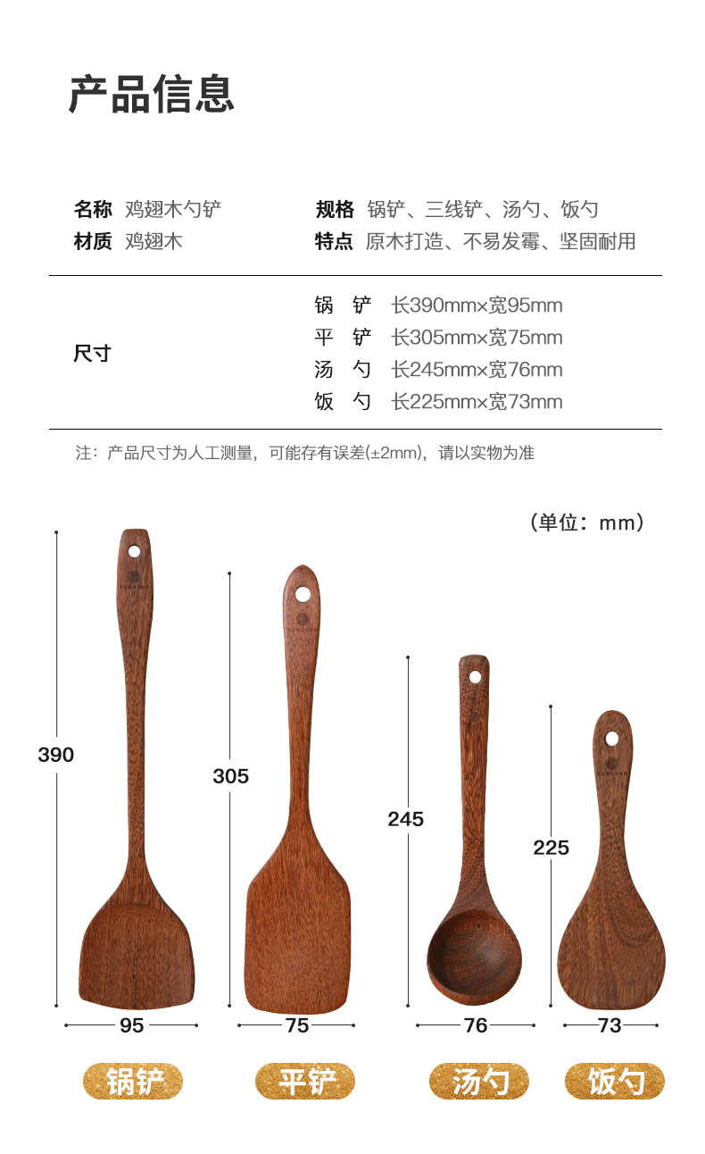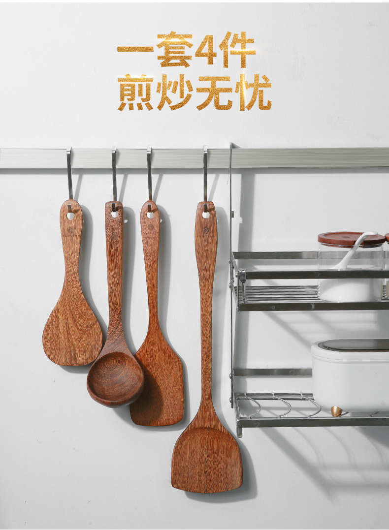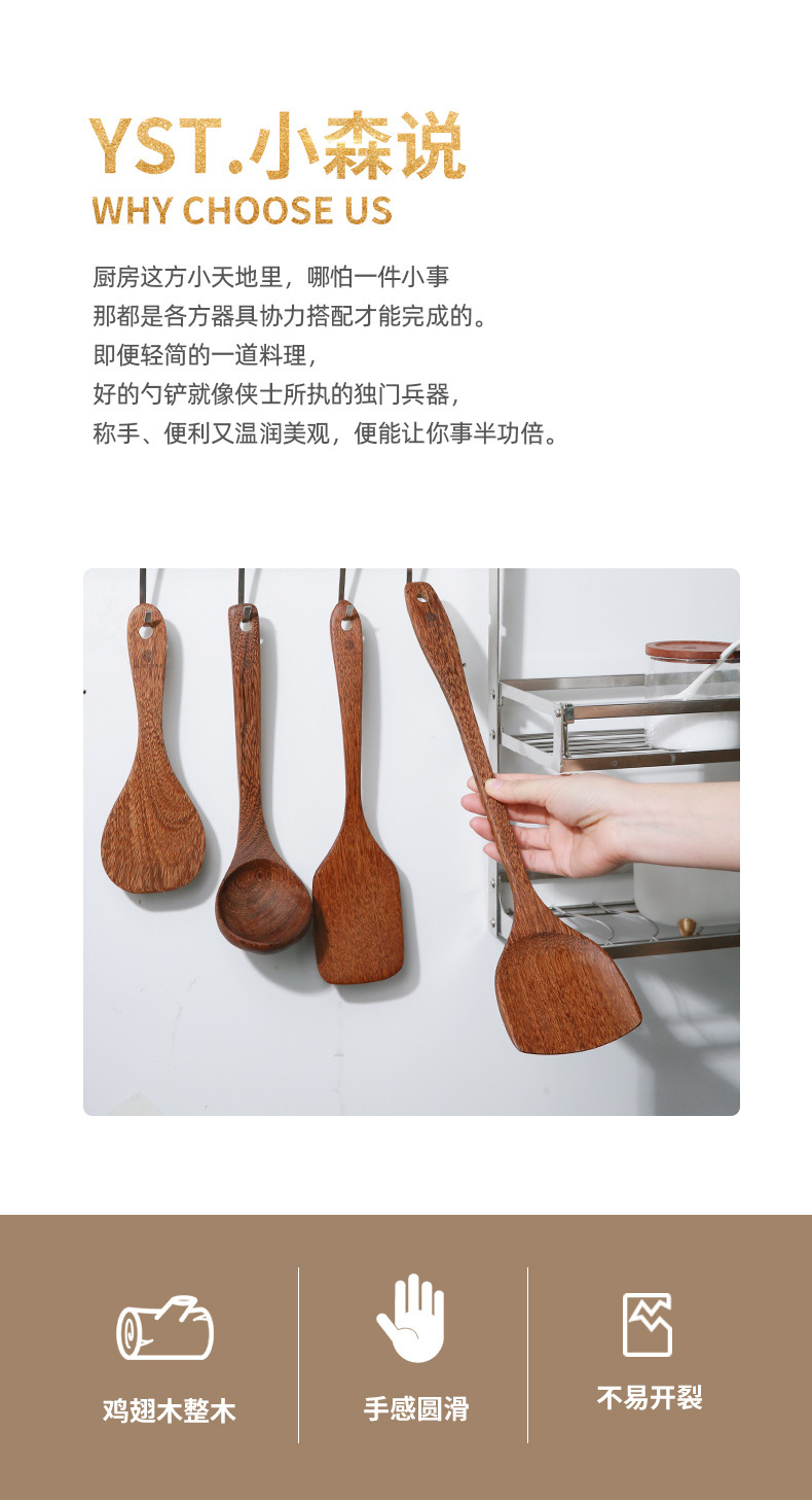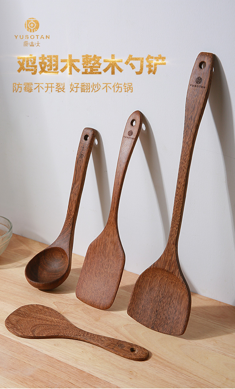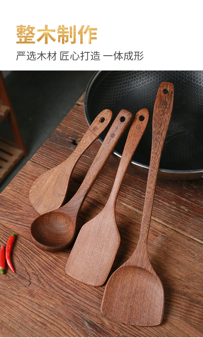 【无漆无蜡木铲】原森太整木鸡翅木勺铲套装 原木木勺子 实木木勺铲套装
