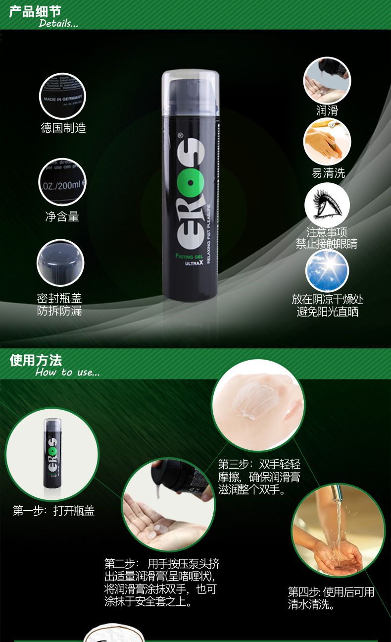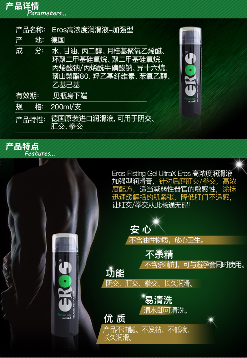 德国原装Eros First拳交润滑膏 200ml