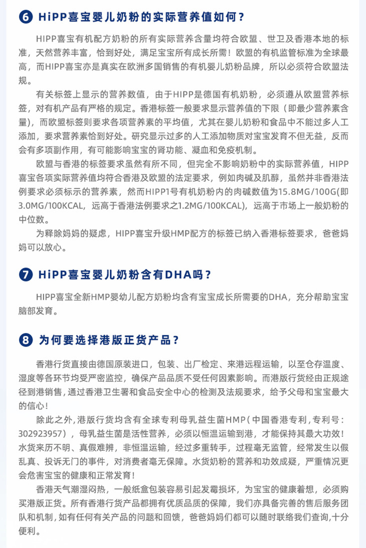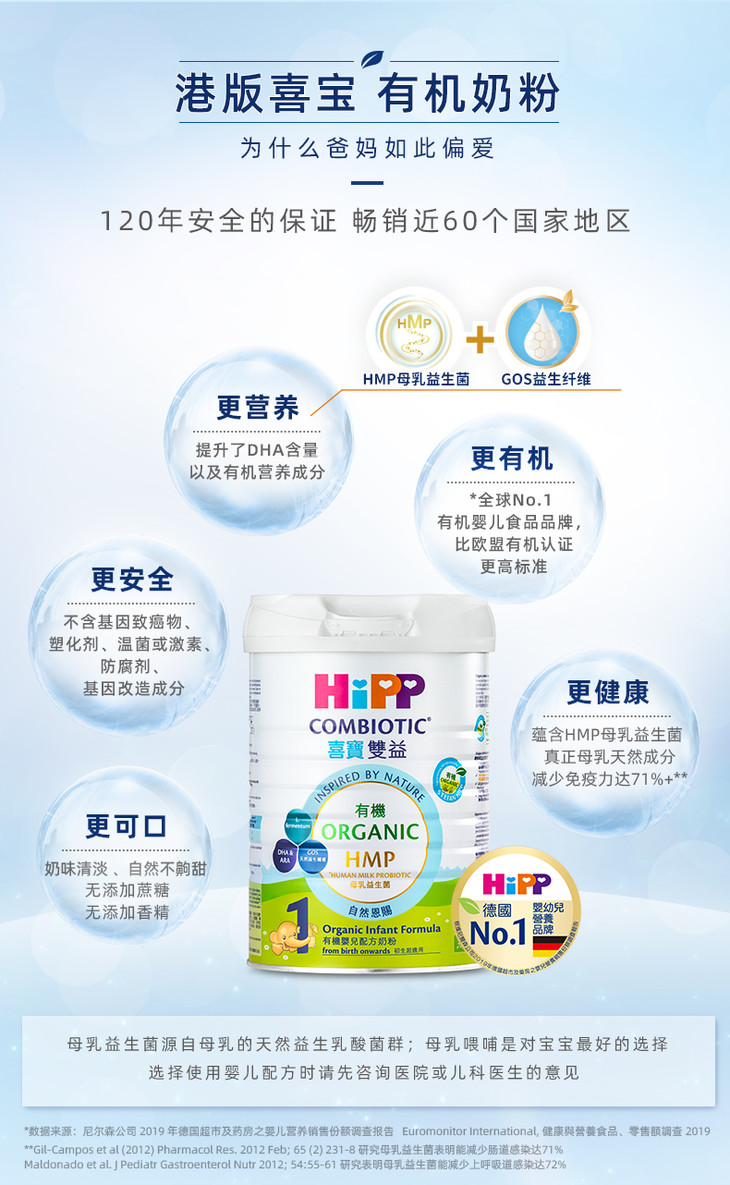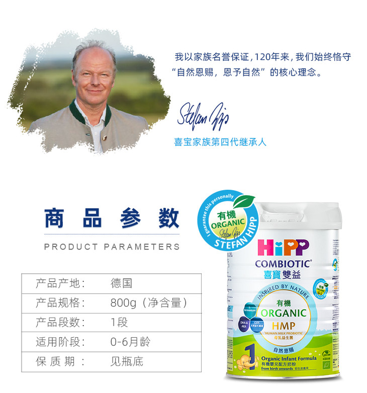 【保税区】港版HiPP喜宝有机双益HMP婴儿配方奶粉1段 800g