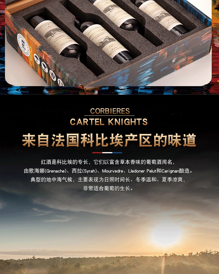 【超值8瓶装 AOP等级】法国 卡特尔朗悦干红葡萄酒 AOP等级 750ml*4瓶/箱