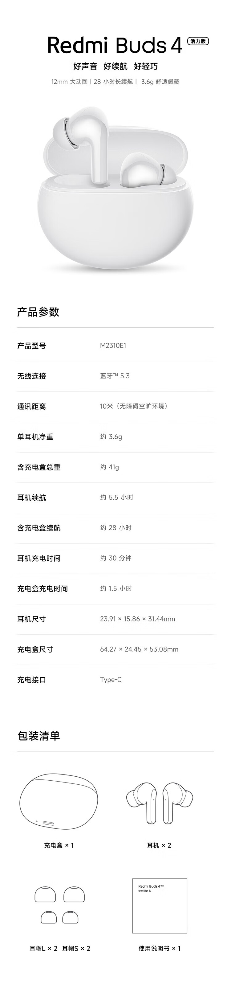 小米/红米 Redmi Buds 4活力版 蓝牙耳机