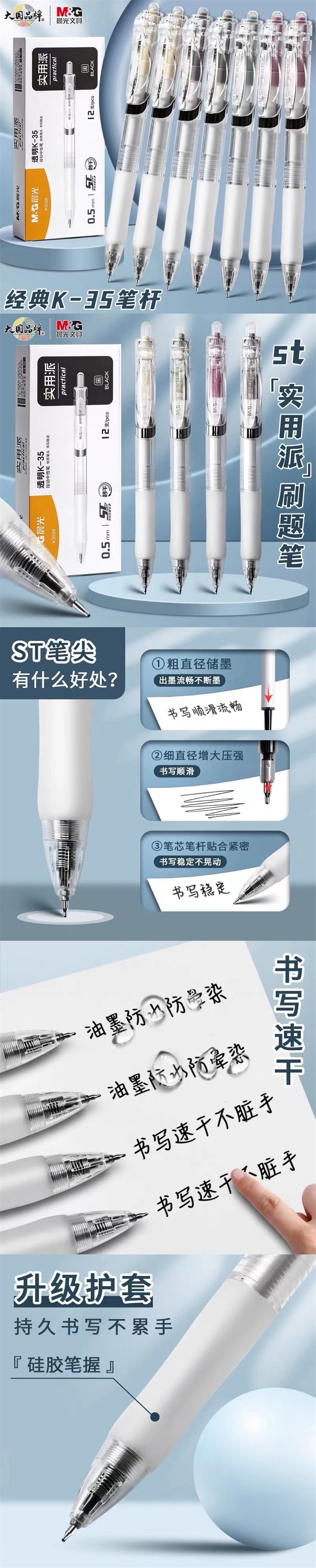晨光透明K-35st笔头按动速干中性笔 1支 黑笔0.5mm秒速干签字笔考试刷题水笔高颜值圆珠笔按压式