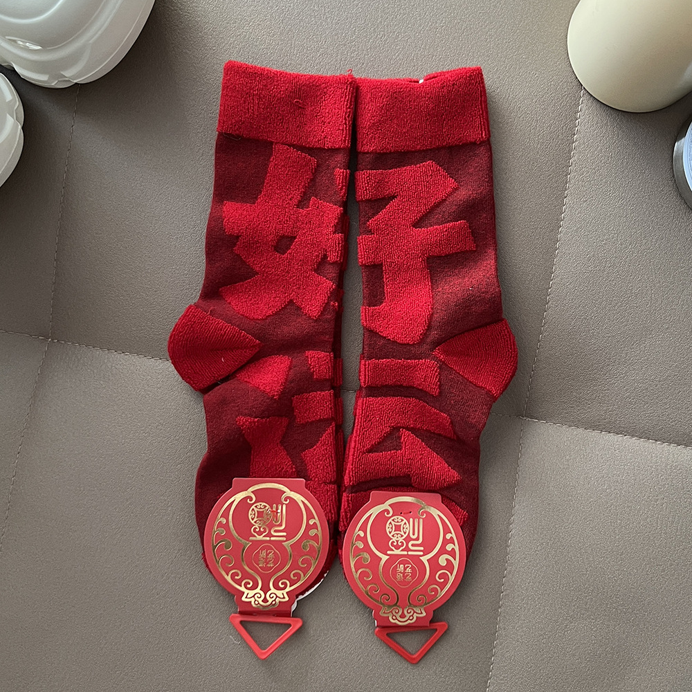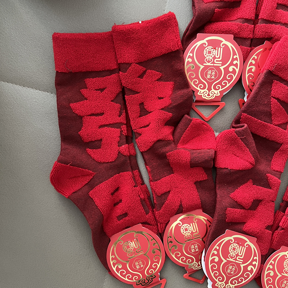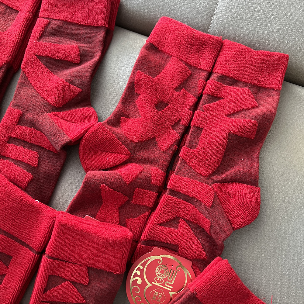 【好运来❗️立体毛圈红袜】经典中国红配色,寓意满满的好运和福气,立体毛圈加厚保暖,袜口弹力设计,不勒脚不下滑,本命年红袜子立体毛圈袜发财加厚中筒袜年袜QQ