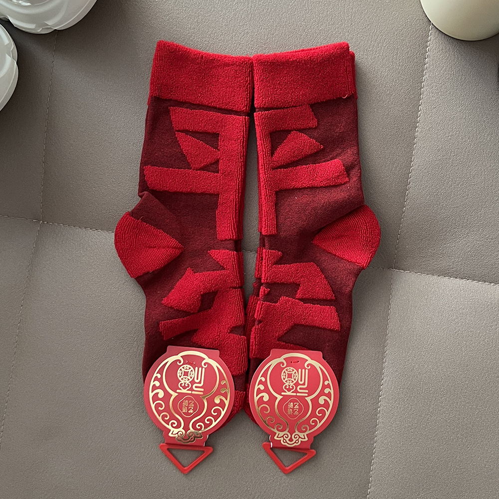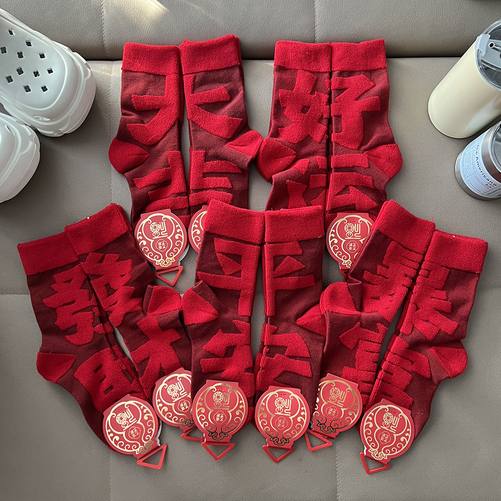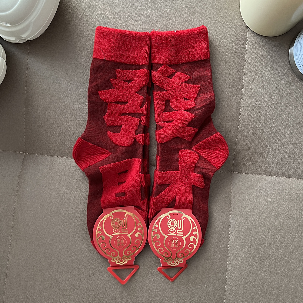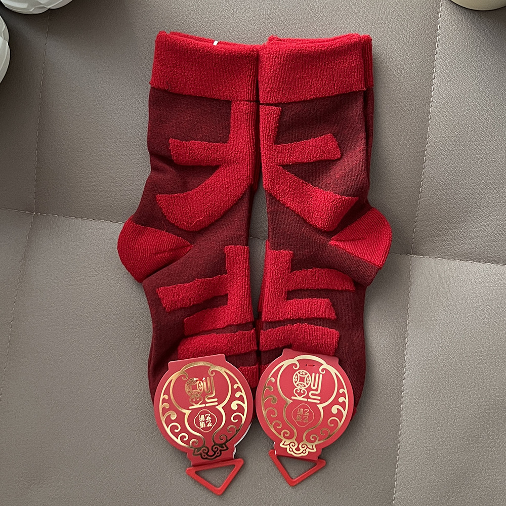 【好运来❗️立体毛圈红袜】经典中国红配色,寓意满满的好运和福气,立体毛圈加厚保暖,袜口弹力设计,不勒脚不下滑,本命年红袜子立体毛圈袜发财加厚中筒袜年袜QQ