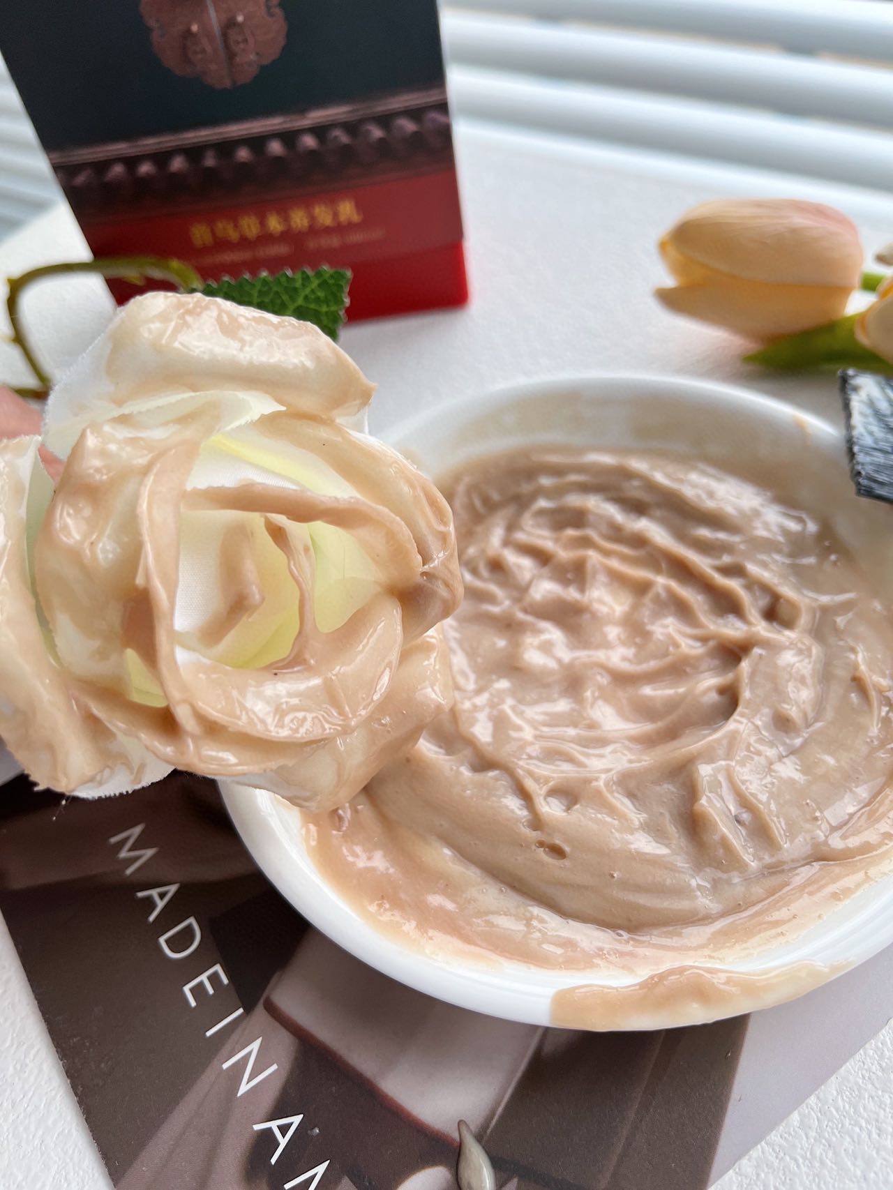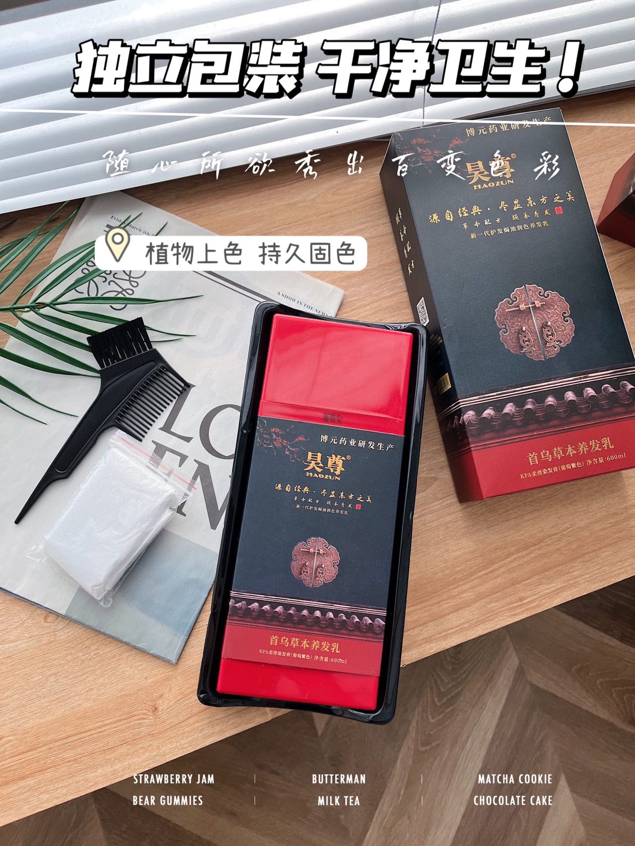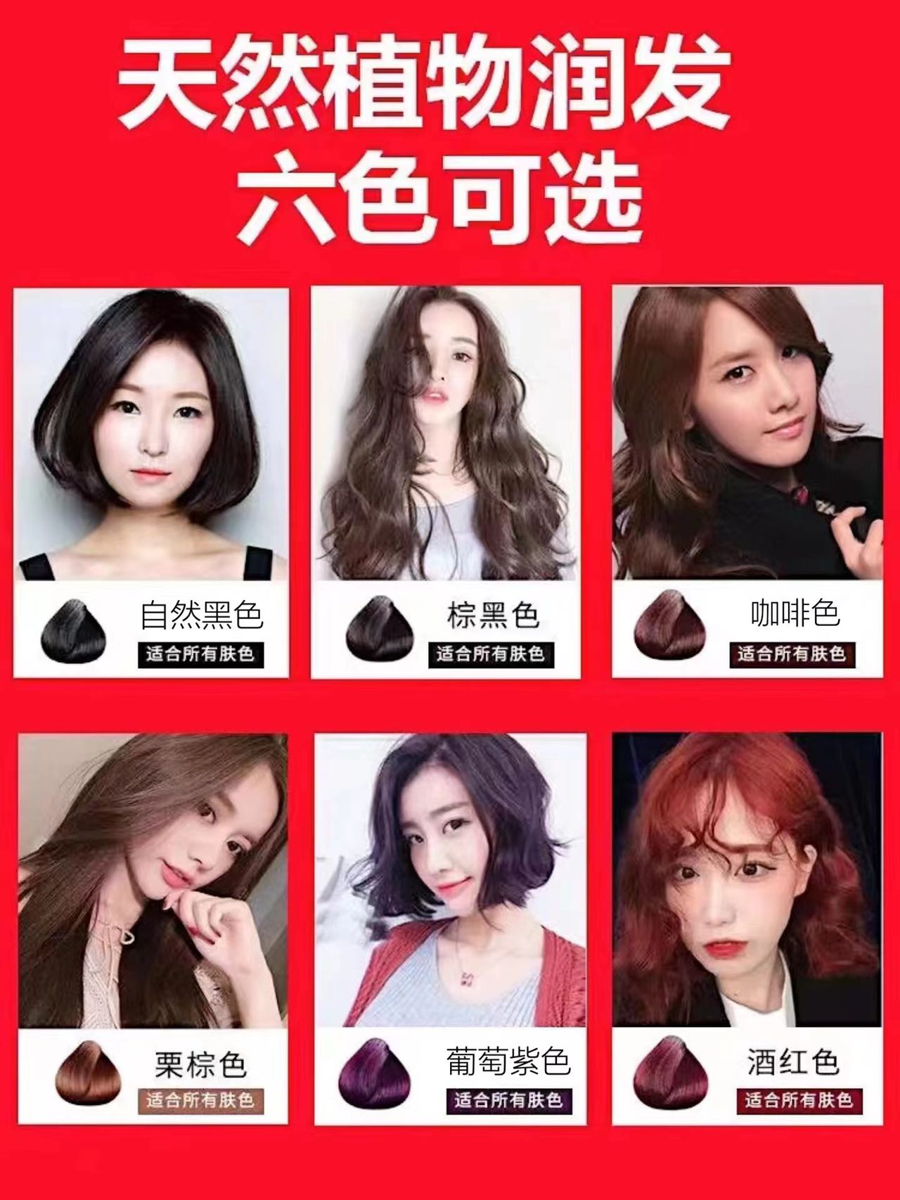 原材料均选取自然中草药,枸杞,芍药,何首乌,灵芝等,染发过程不伤发质,不黑头皮,还能养护秀发,一举多得