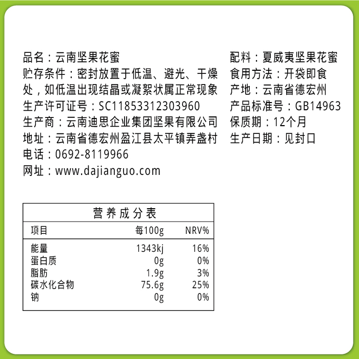 云南迪思牛皮纸礼盒(80g果仁×4)+(牛扎糖×3)+(500g蜂蜜×1)