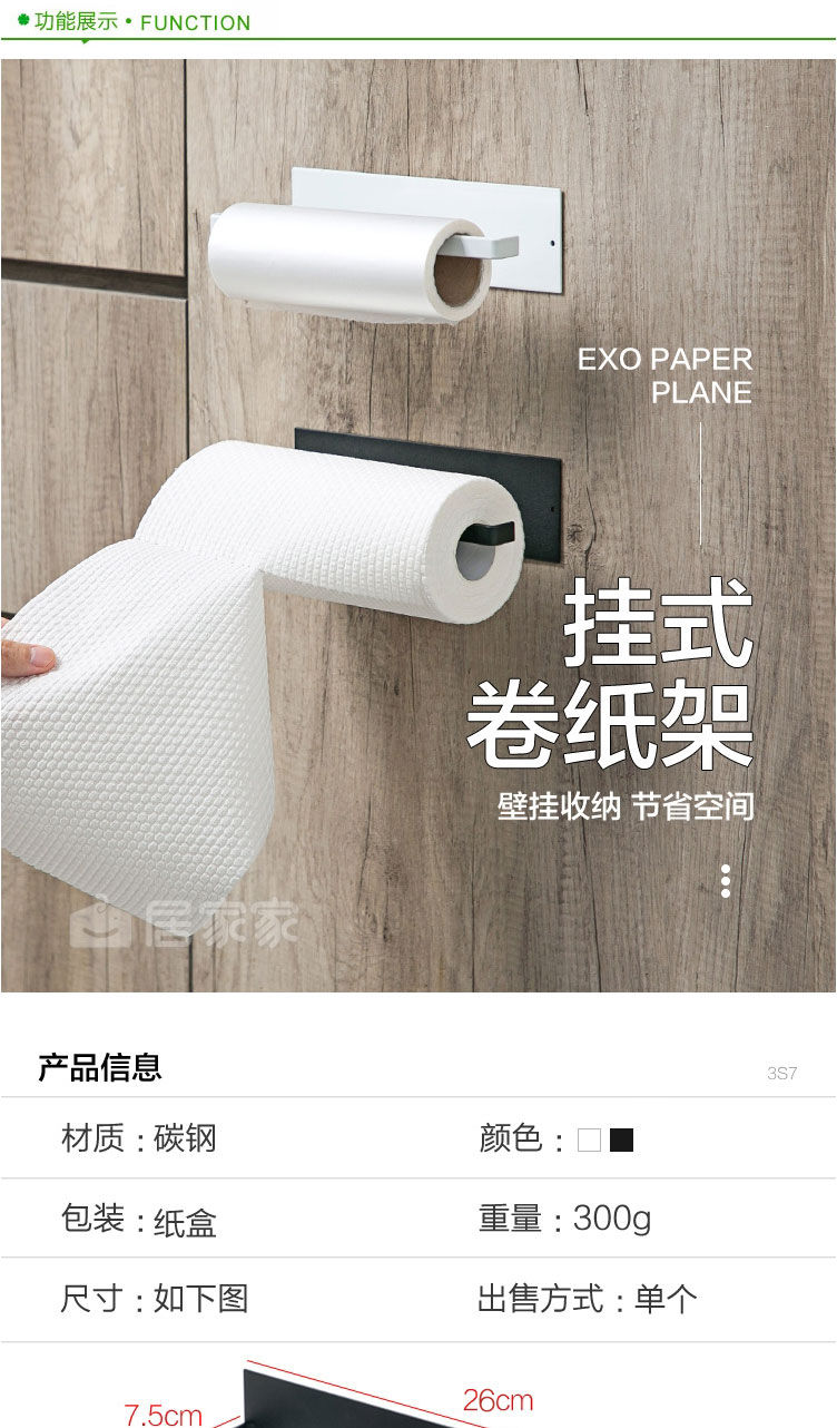创意壁挂纸巾架 免打孔浴室厨房置物架用纸架纸巾卷纸筒居家日用