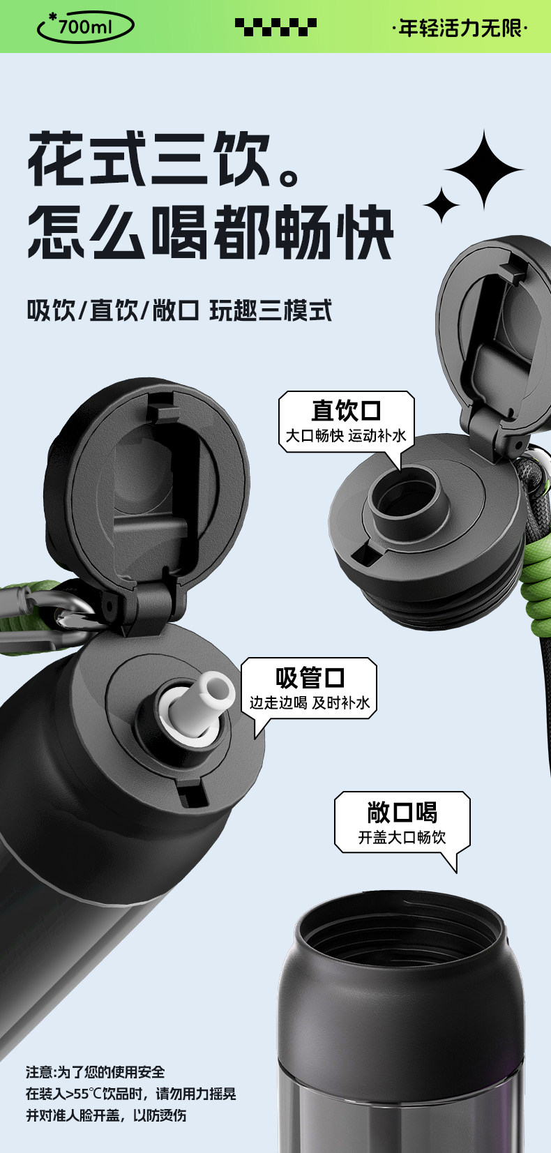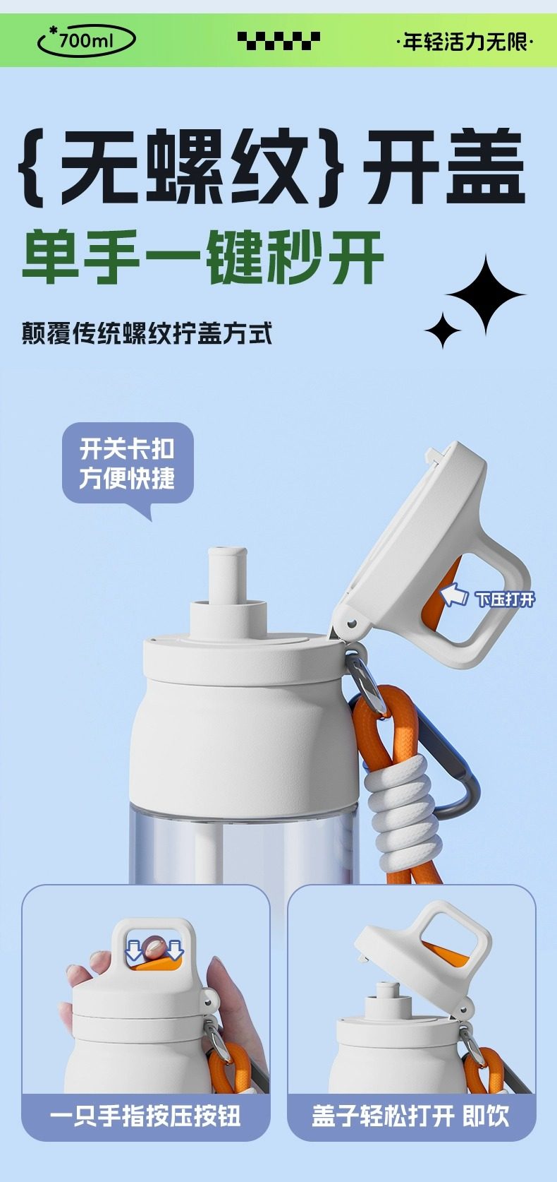 【下单送 配件3件套】Tritan材质耐高温塑料杯 运动水杯 学生水杯 上学专用吸管杯