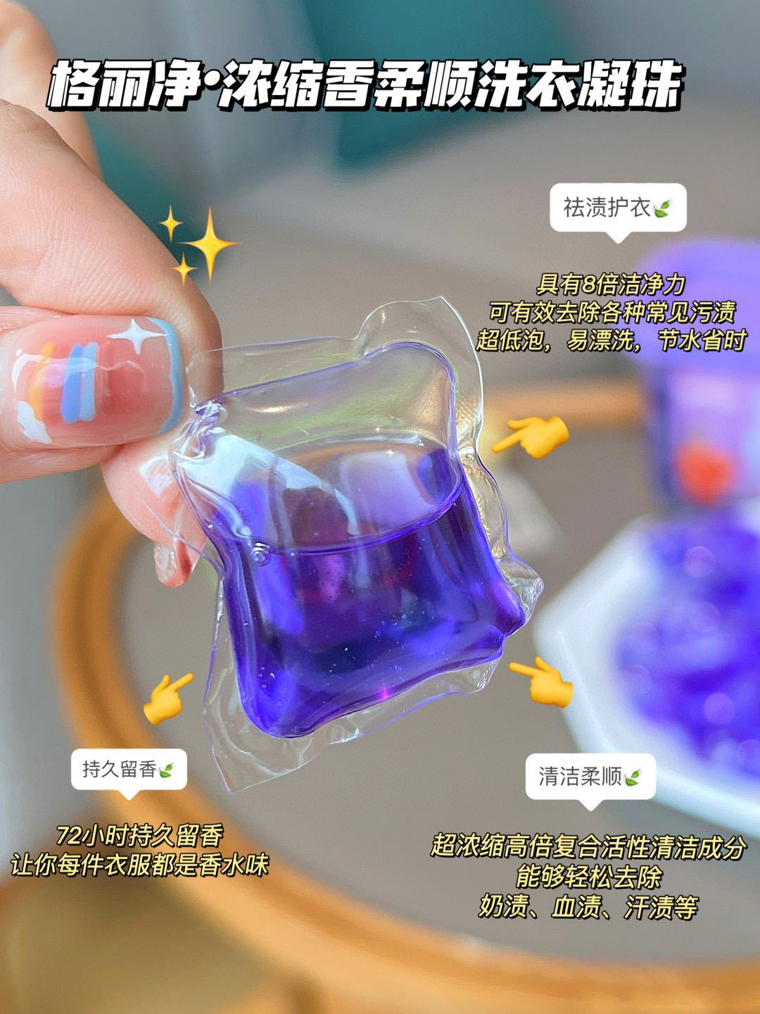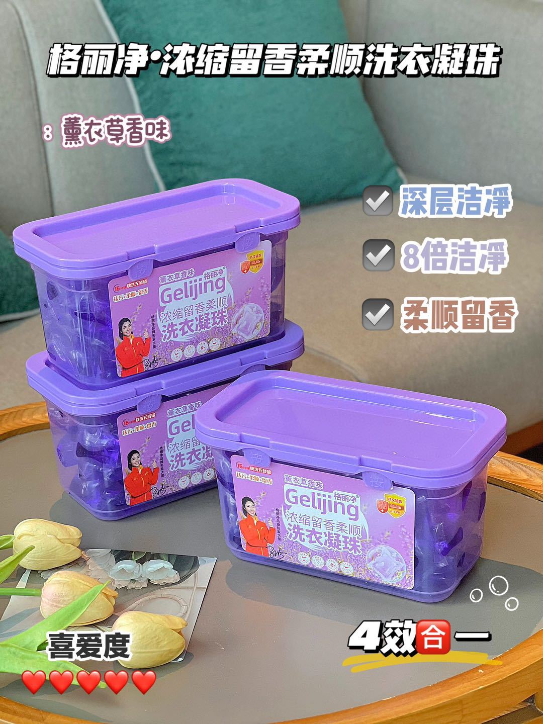 「19.9元到手100颗!多效合一」格丽净薰衣草香味洗衣凝珠 居家日用去污去渍留香洗衣凝珠