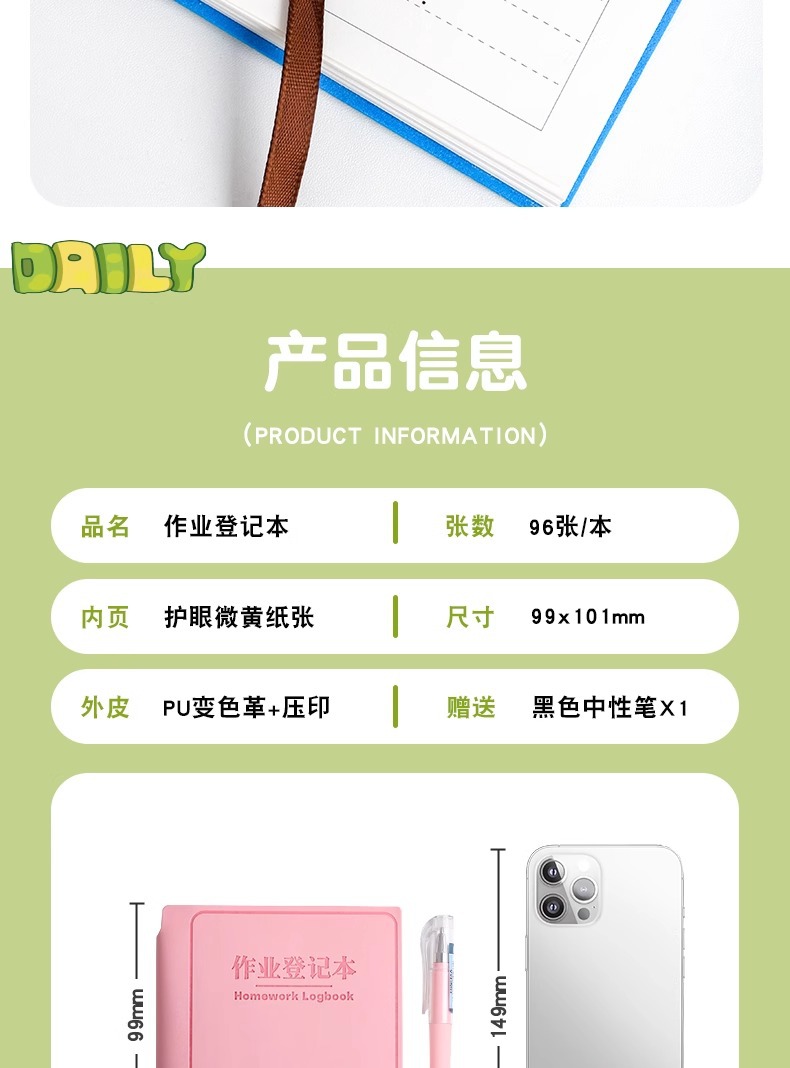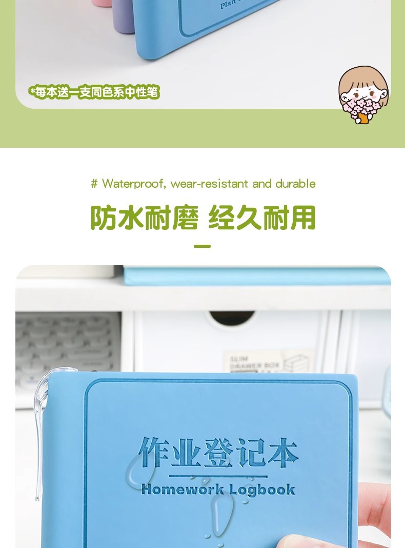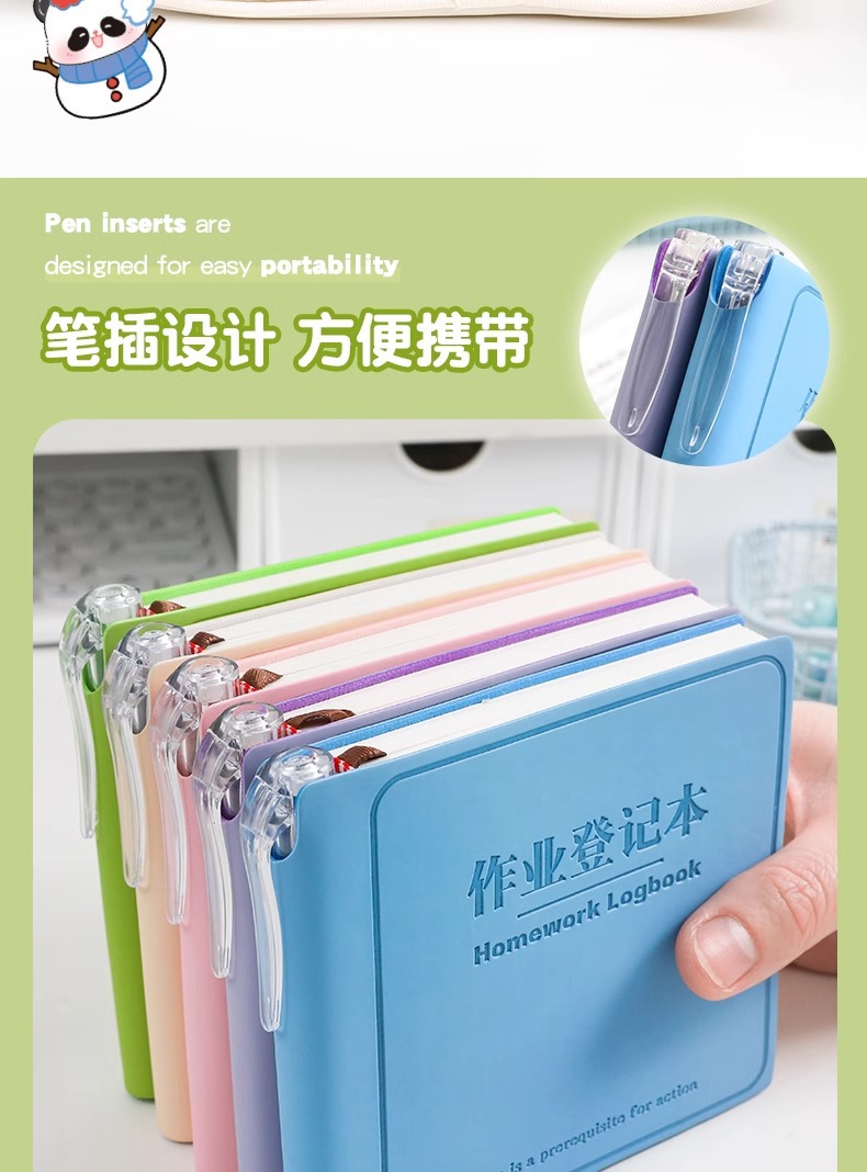 拍1发2!送2支中性笔【精品套装!登记本】精装插笔作业登记本 学生备忘小巧随身豆豆本 横线笔记本 PU皮防水笔记本