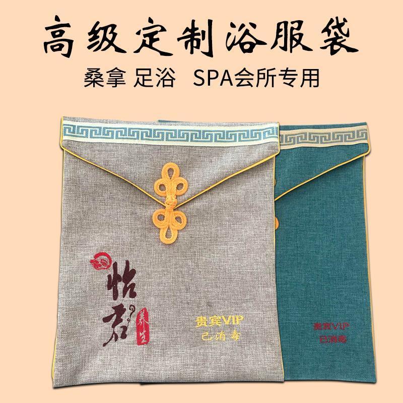 定制汗蒸服收纳袋子浴服袋多色棉麻置物袋绣字男女专属足疗足浴袋
