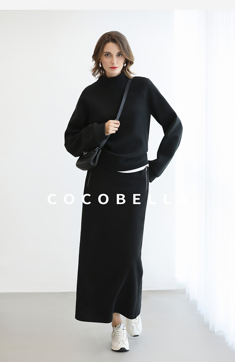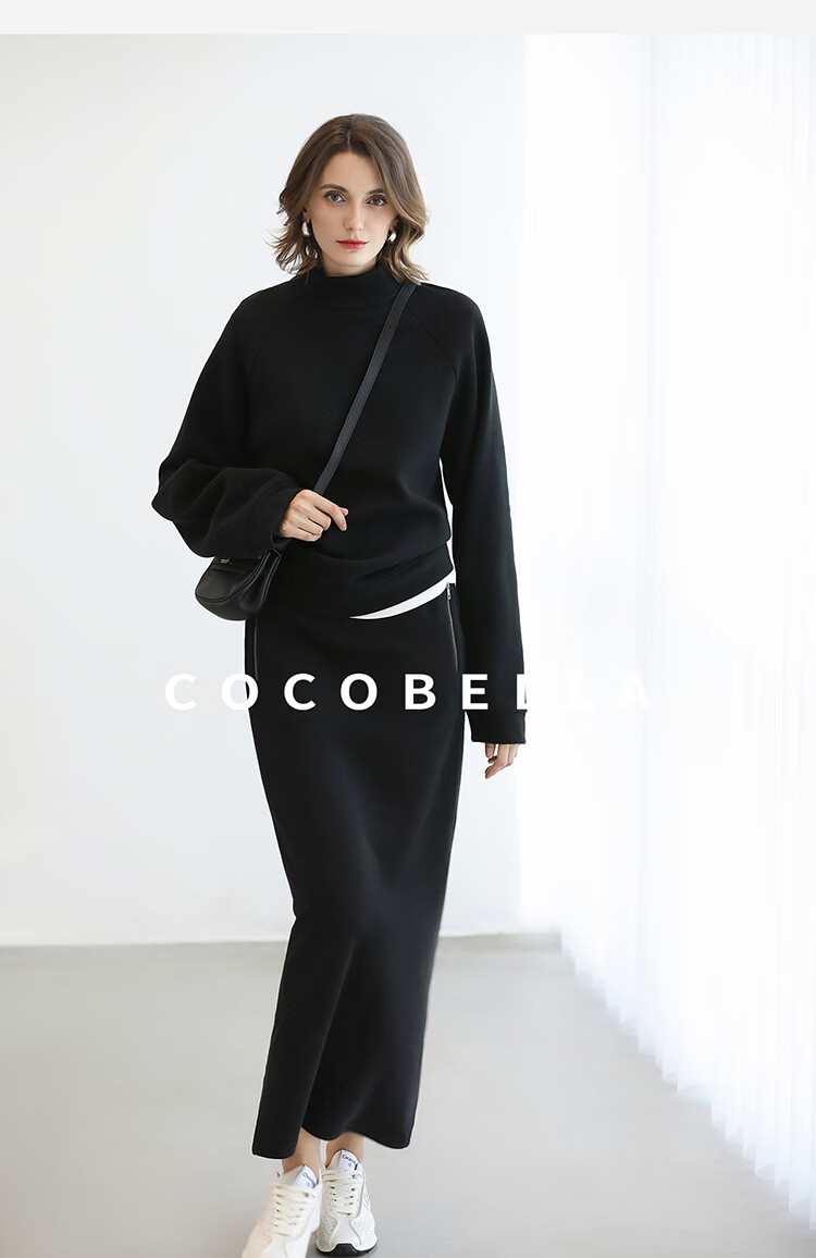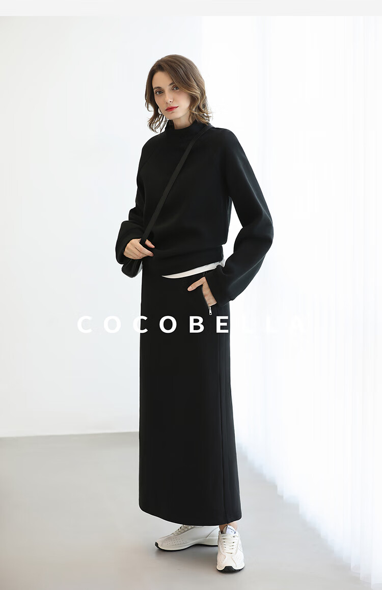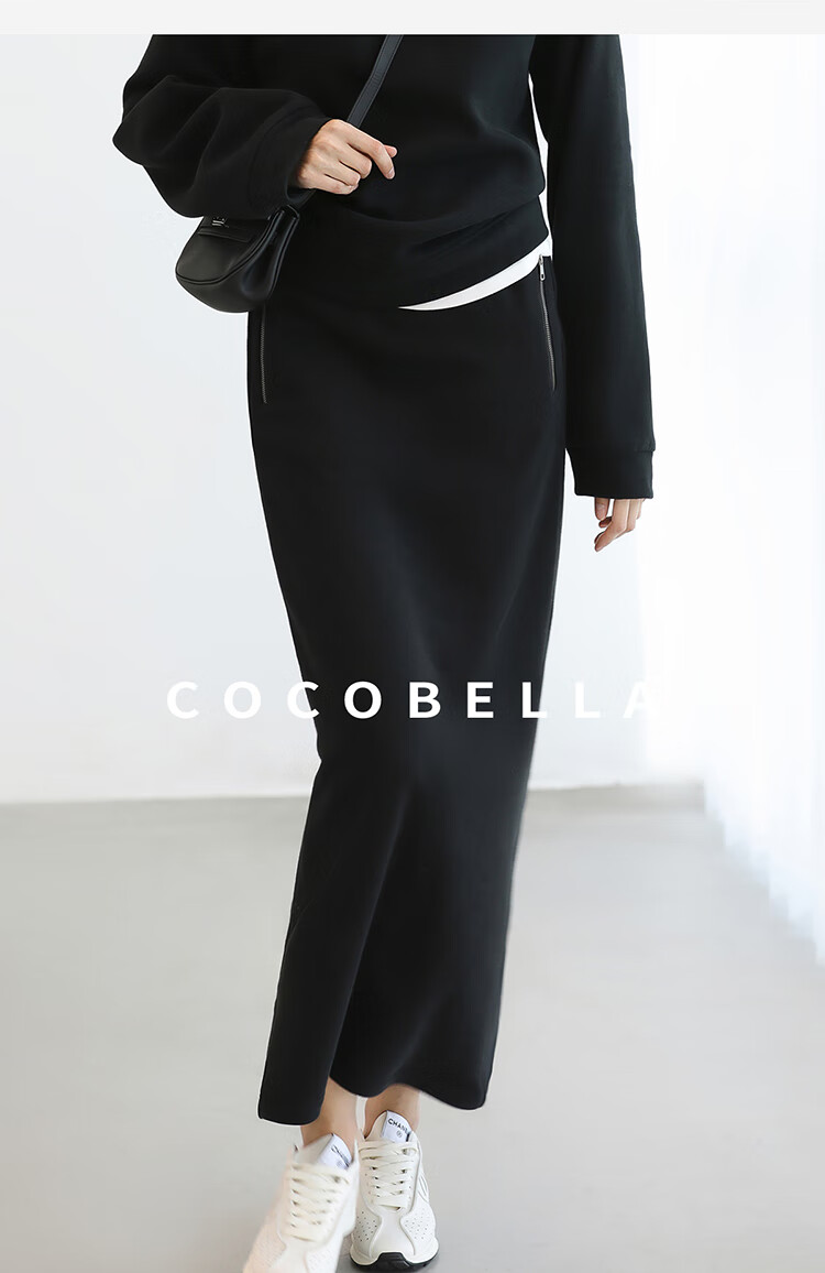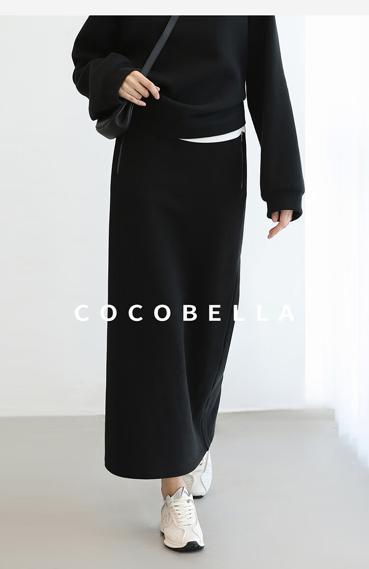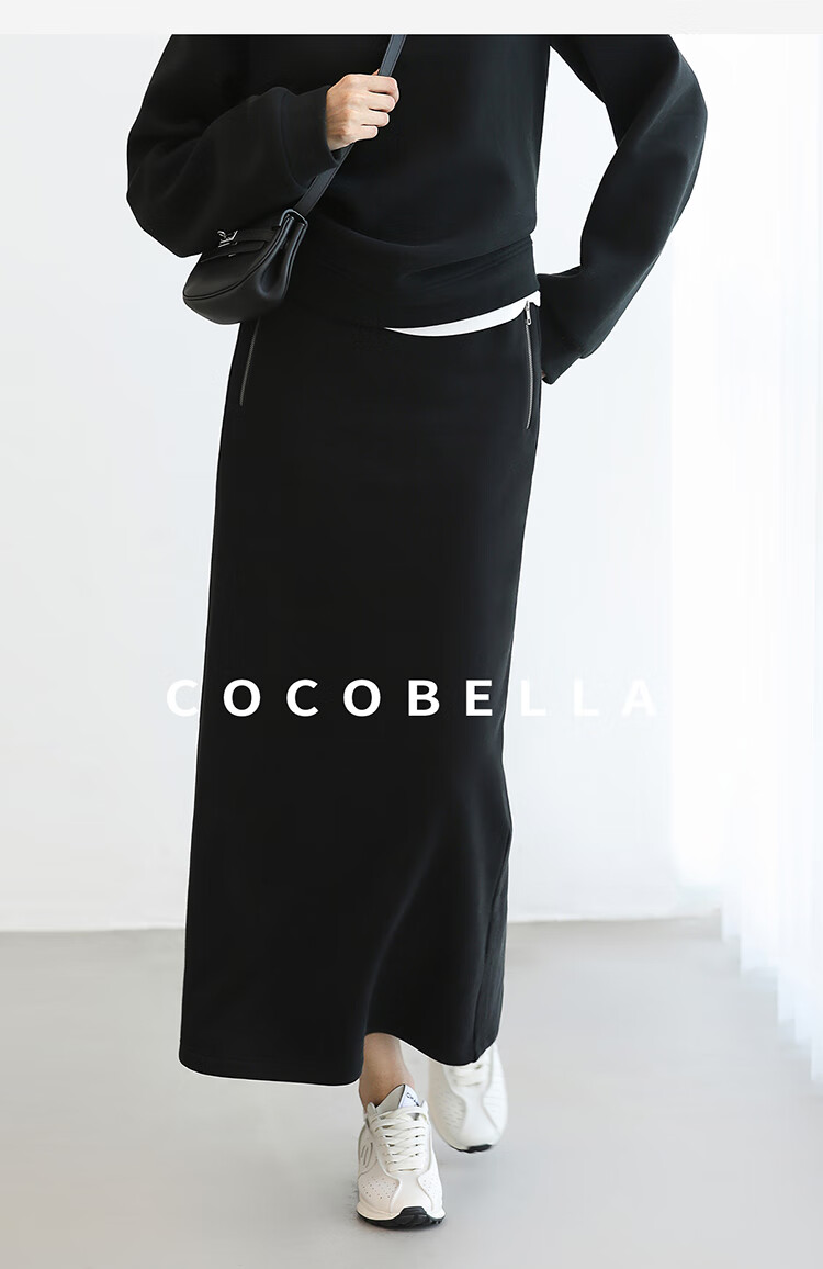 COCOBELLA时尚通勤黑色半身裙女秋冬温暖亲肤遮胯直筒裙HS3162