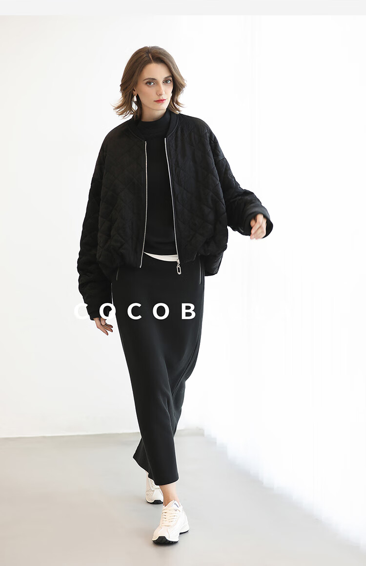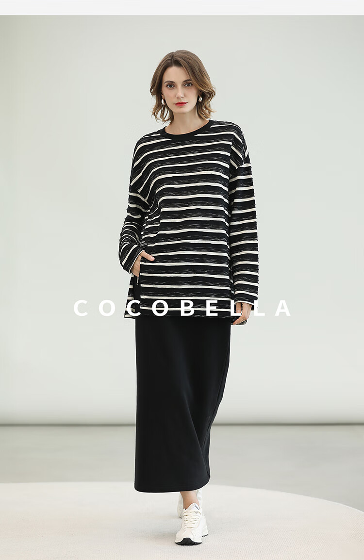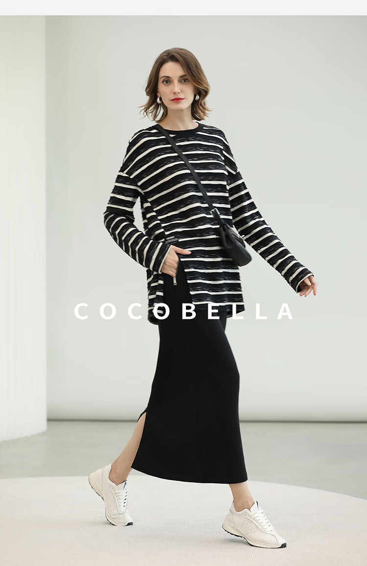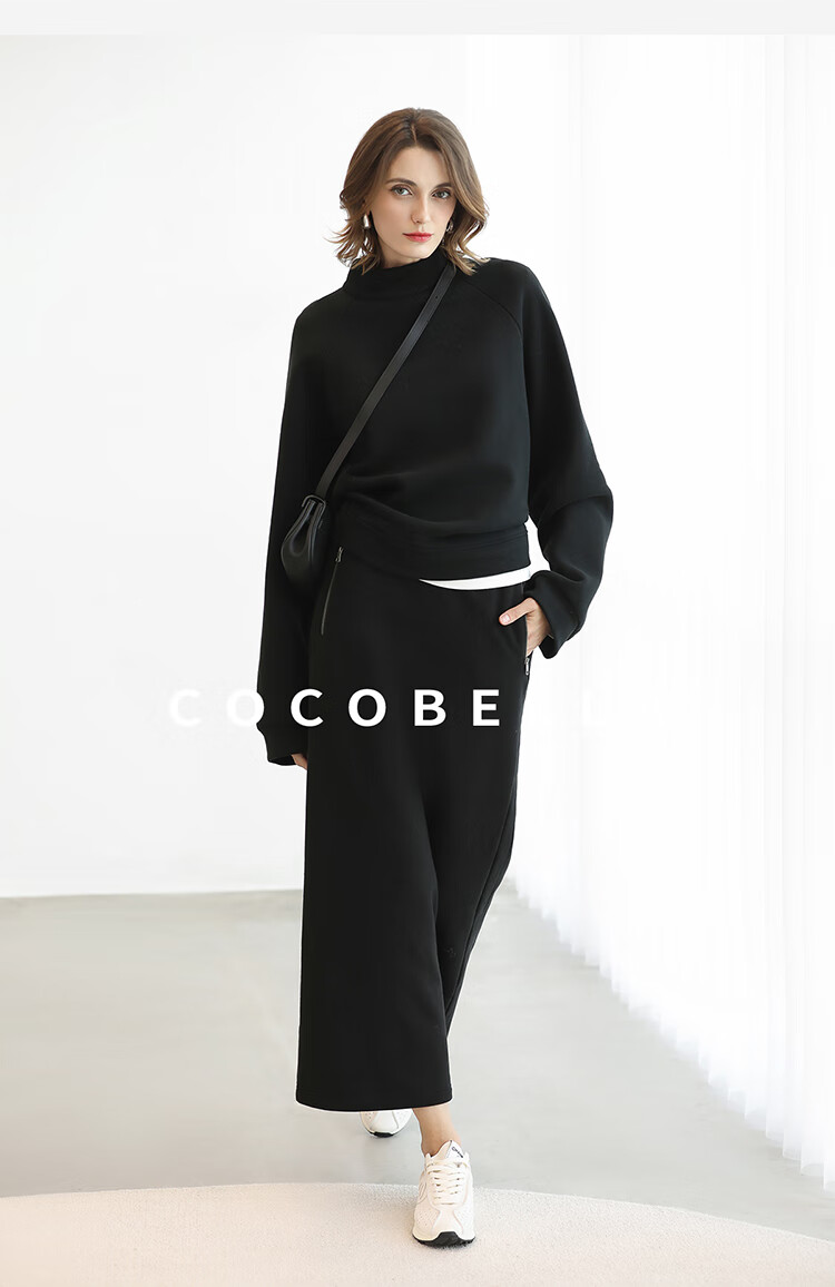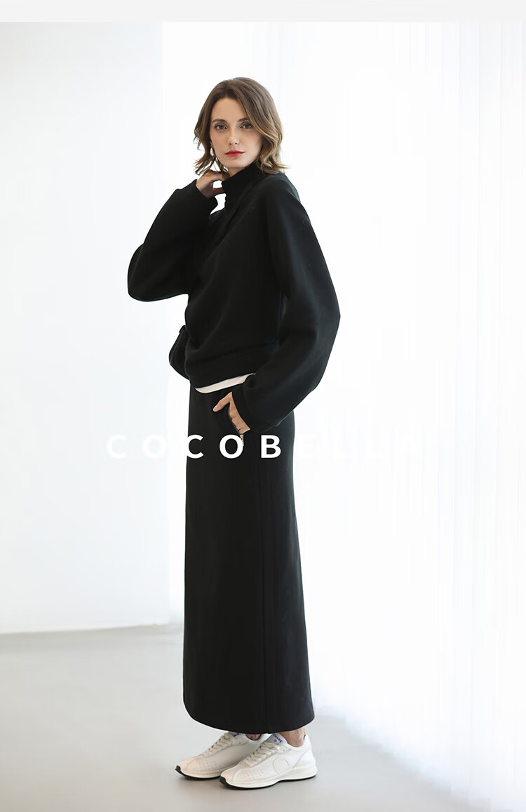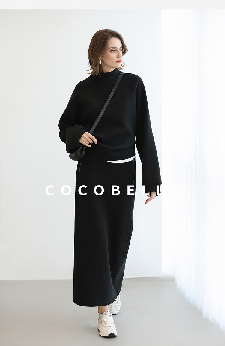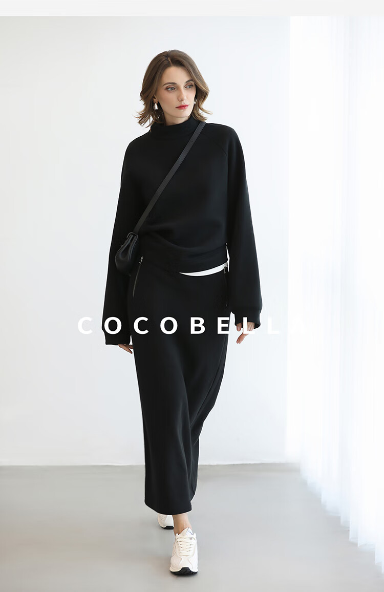 COCOBELLA时尚通勤黑色半身裙女秋冬温暖亲肤遮胯直筒裙HS3162