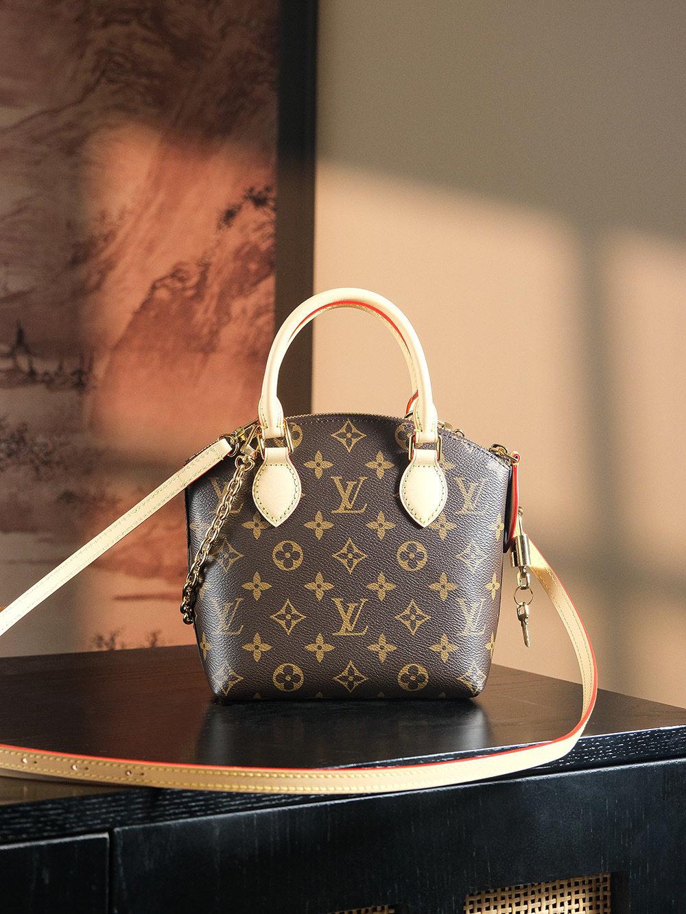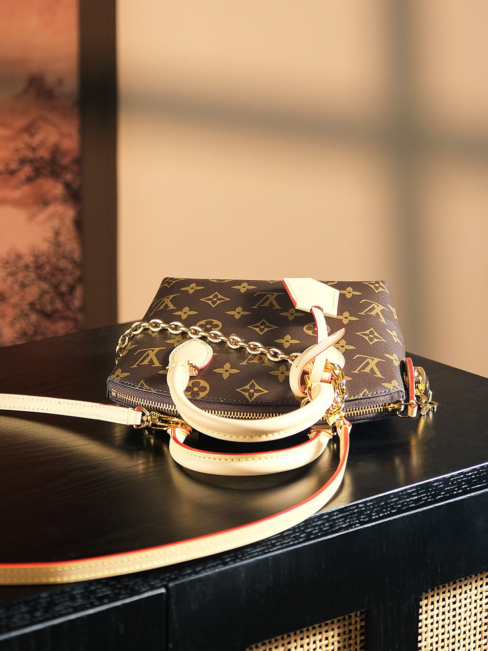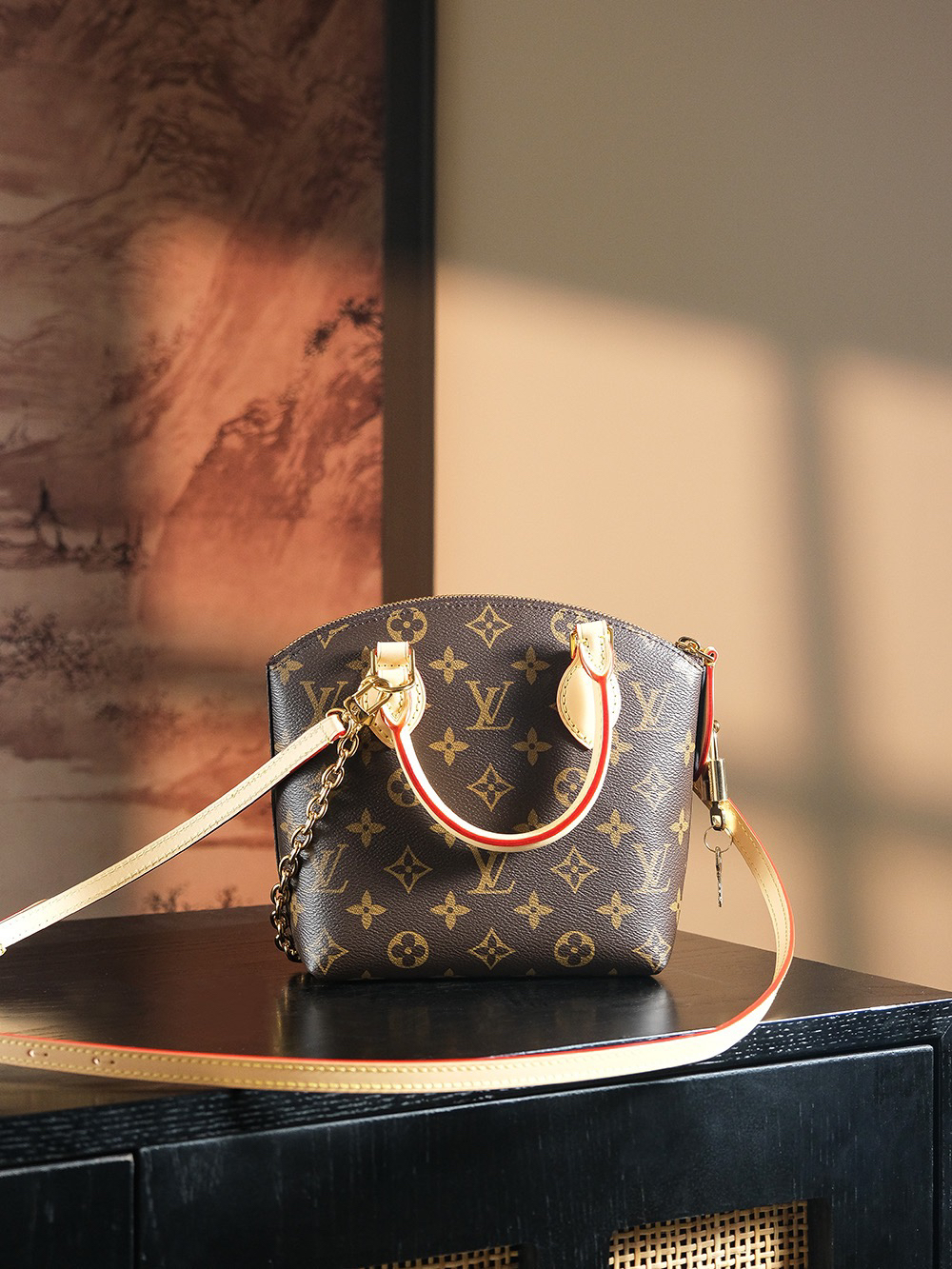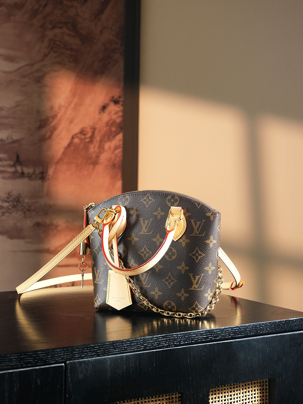 依旧是采用经典老花面料搭配上弧形上缘以及椭圆形饰边,完美呈现出现代化时尚与复古的完美结合。