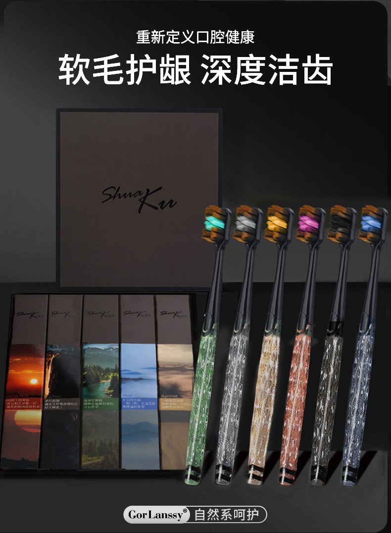 捡漏6只装/29.9!【出门旅游家用必备】超细软毛成人宽头彩晶柄,6支独立礼盒装抖快爆品高档轻奢牙刷,旅游家用超便捷。让你的牙齿得到全方位的呵护,无论是在家中还是旅途中,都能享受到高品质的口腔清洁!