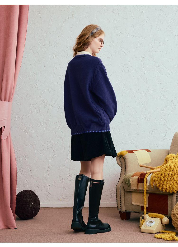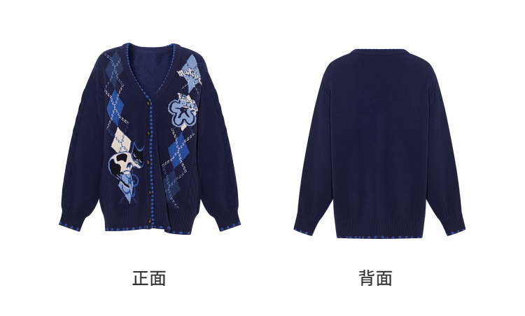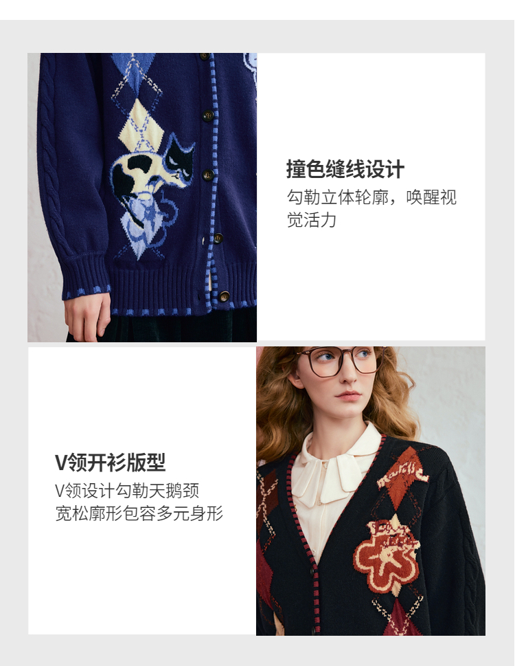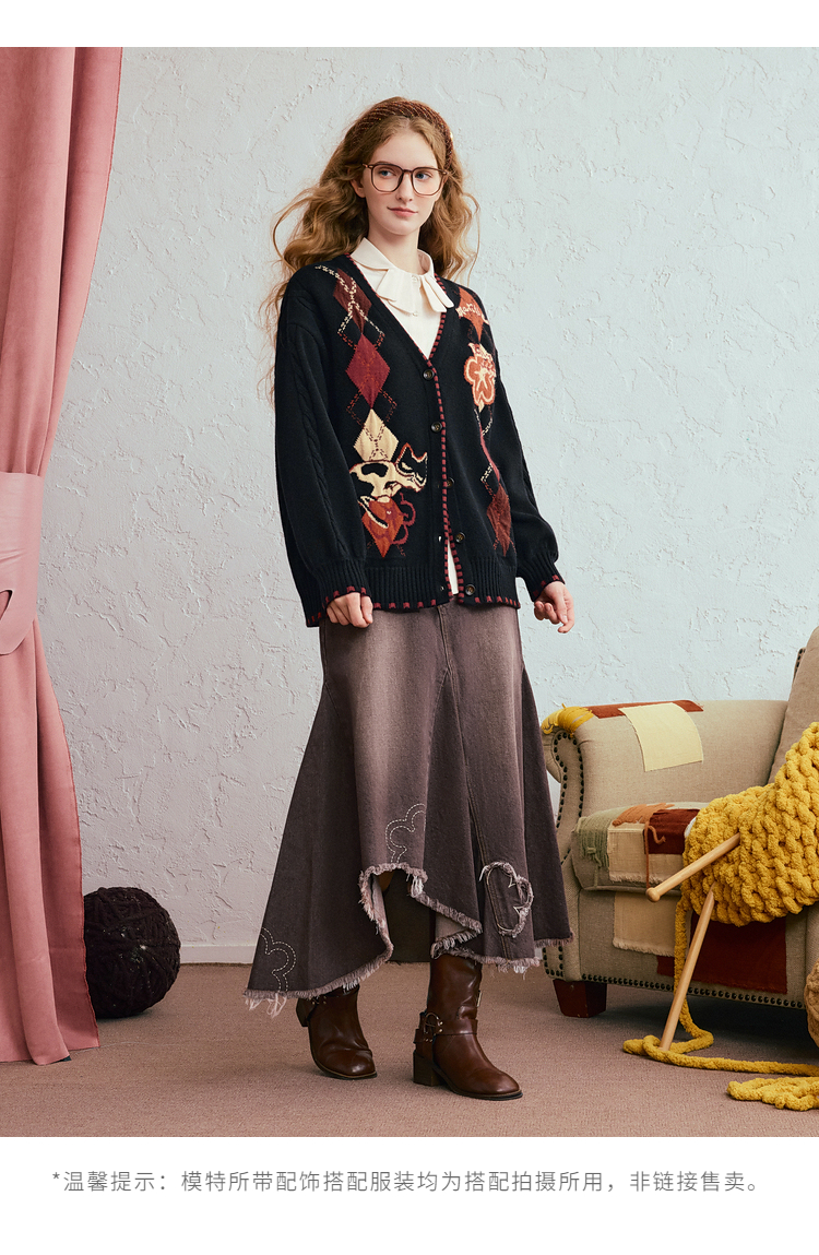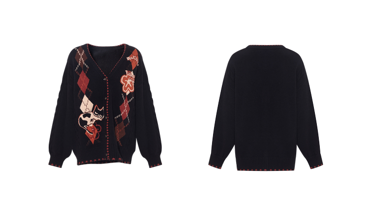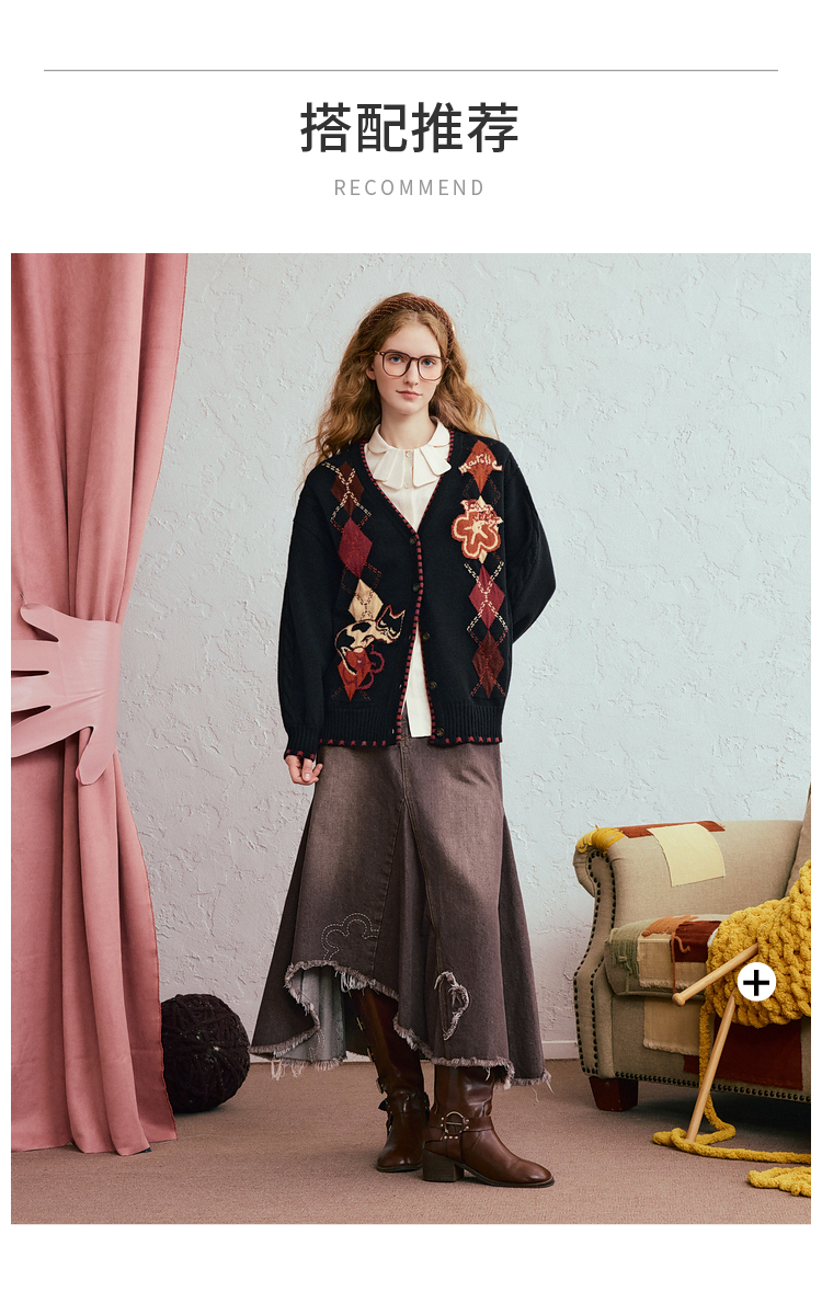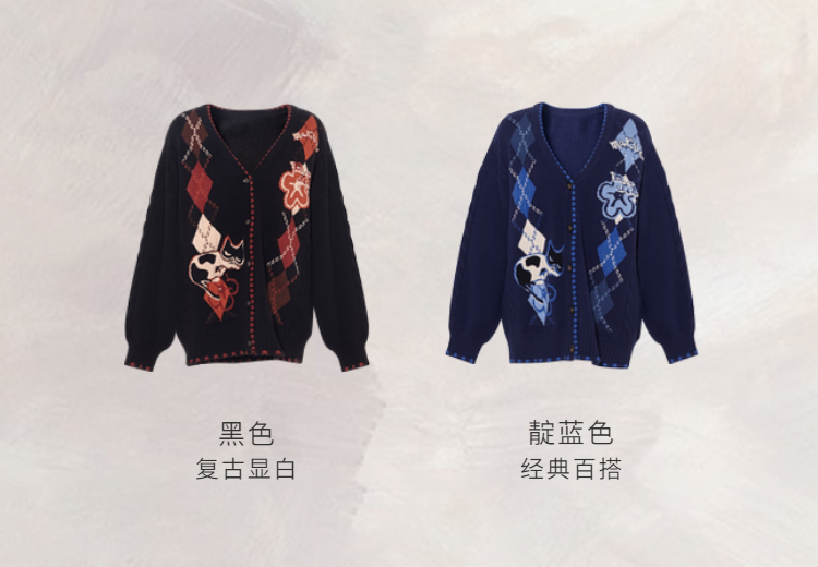 两三事 古着手札 2025冬季新款复古菱形格花色毛衣开衫女宽松