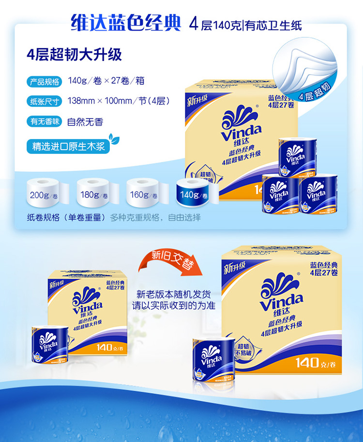 维达蓝色经典卫卷4层140克×27卷V4069-B