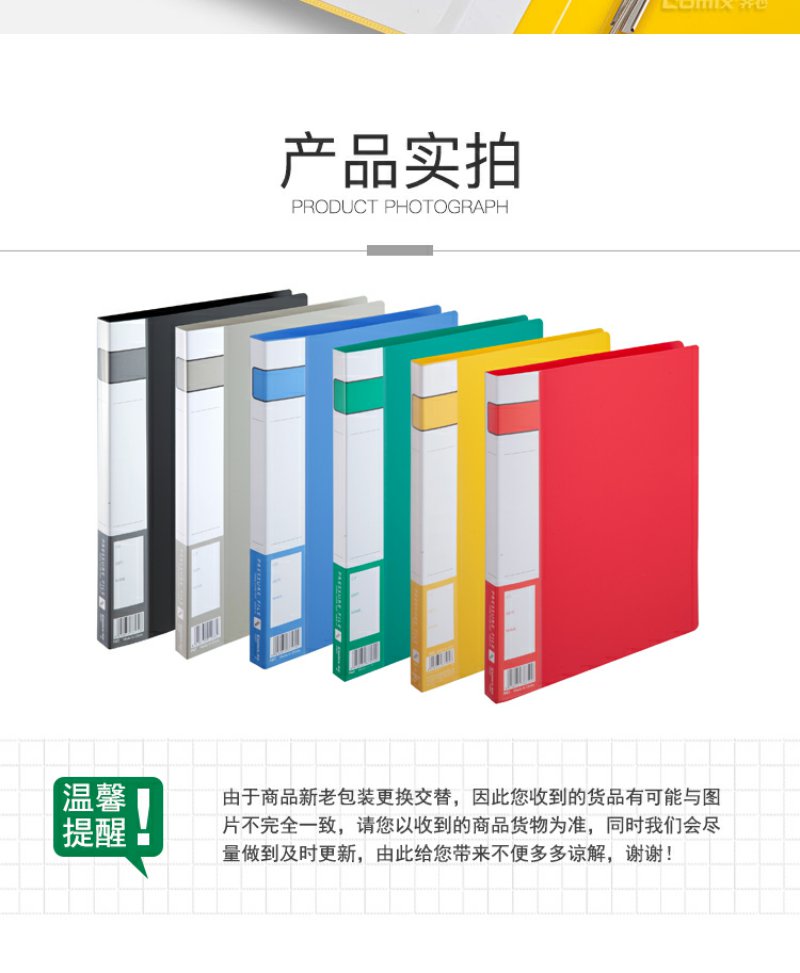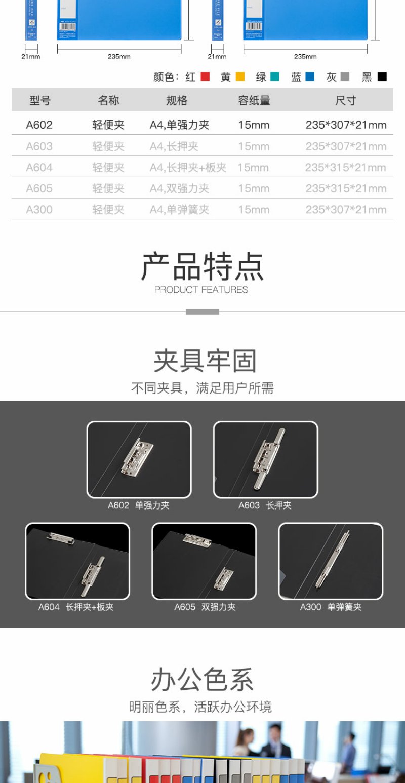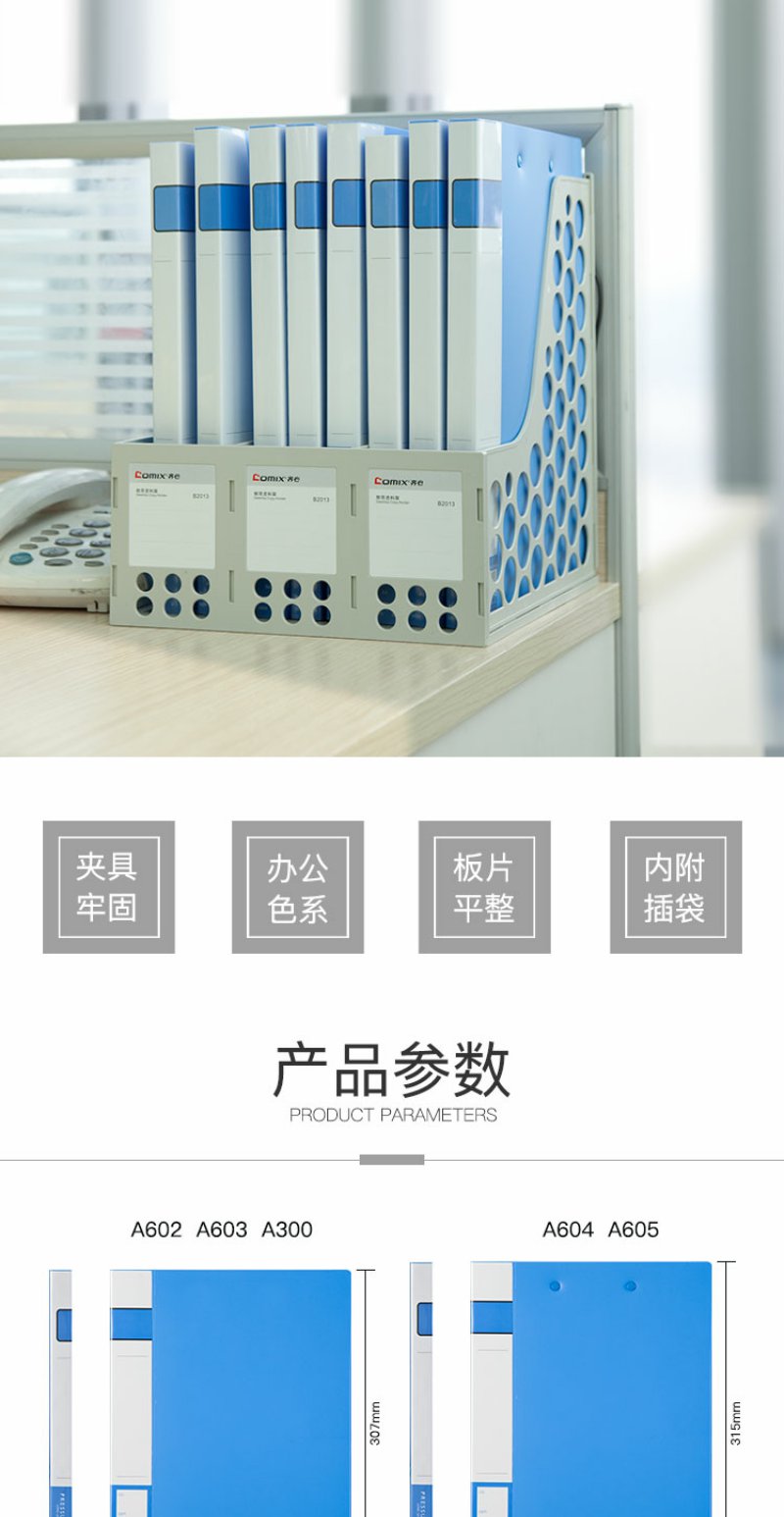 齐心 A4蓝色单强力夹+插袋 A4文件夹 资料夹 A602
