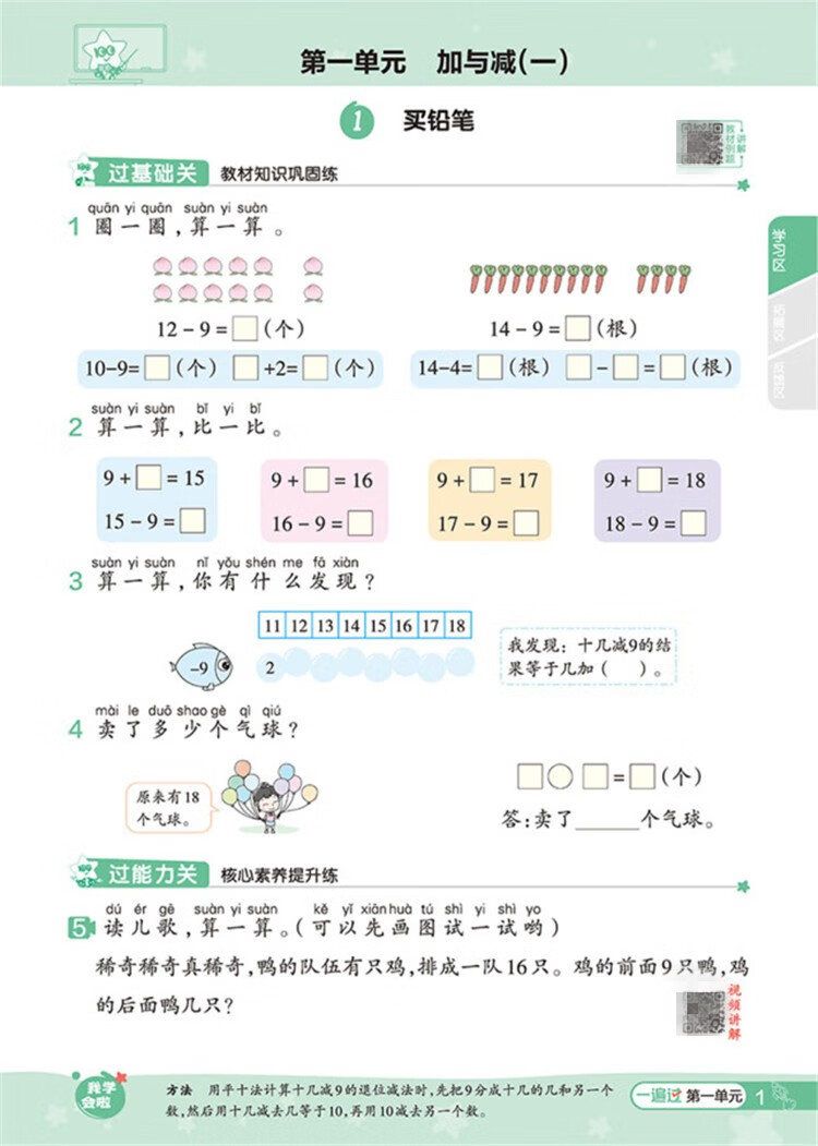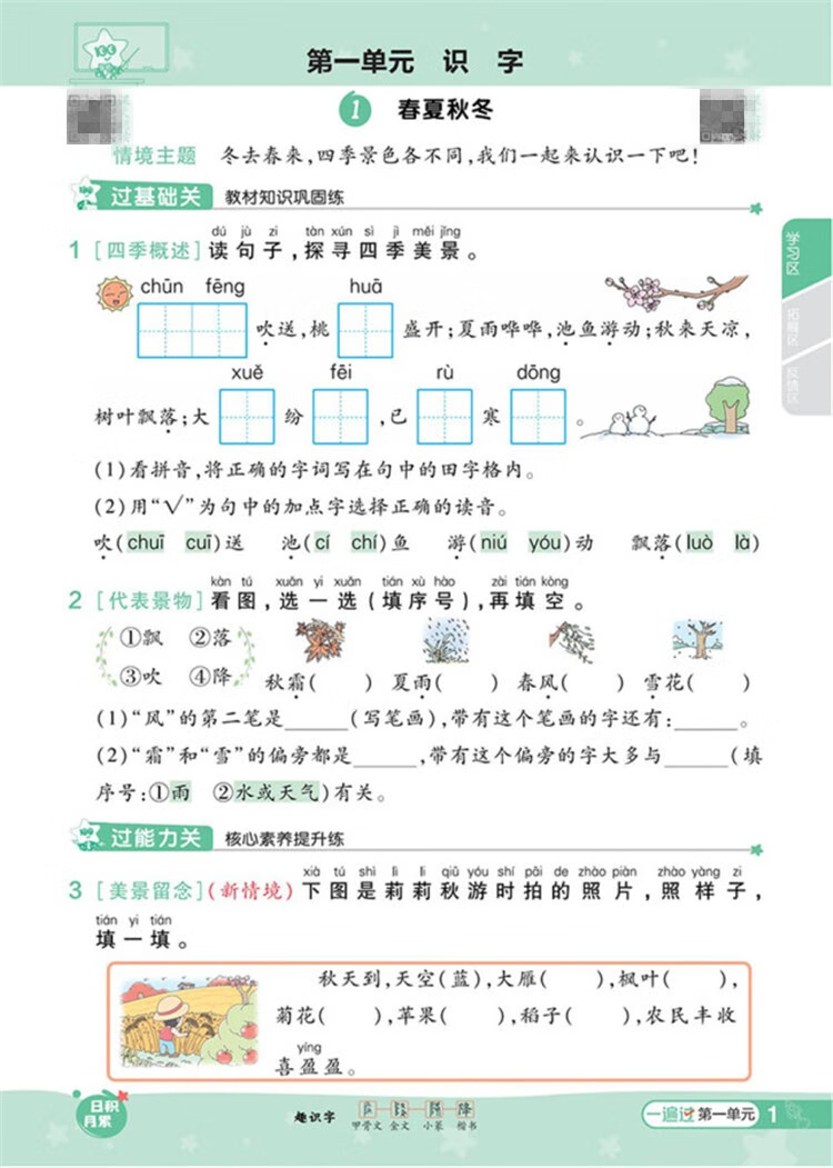 一遍过小学一年级上册语文数学人教版北师大版天星教育同步练习册天天练教辅书辅导书资料书