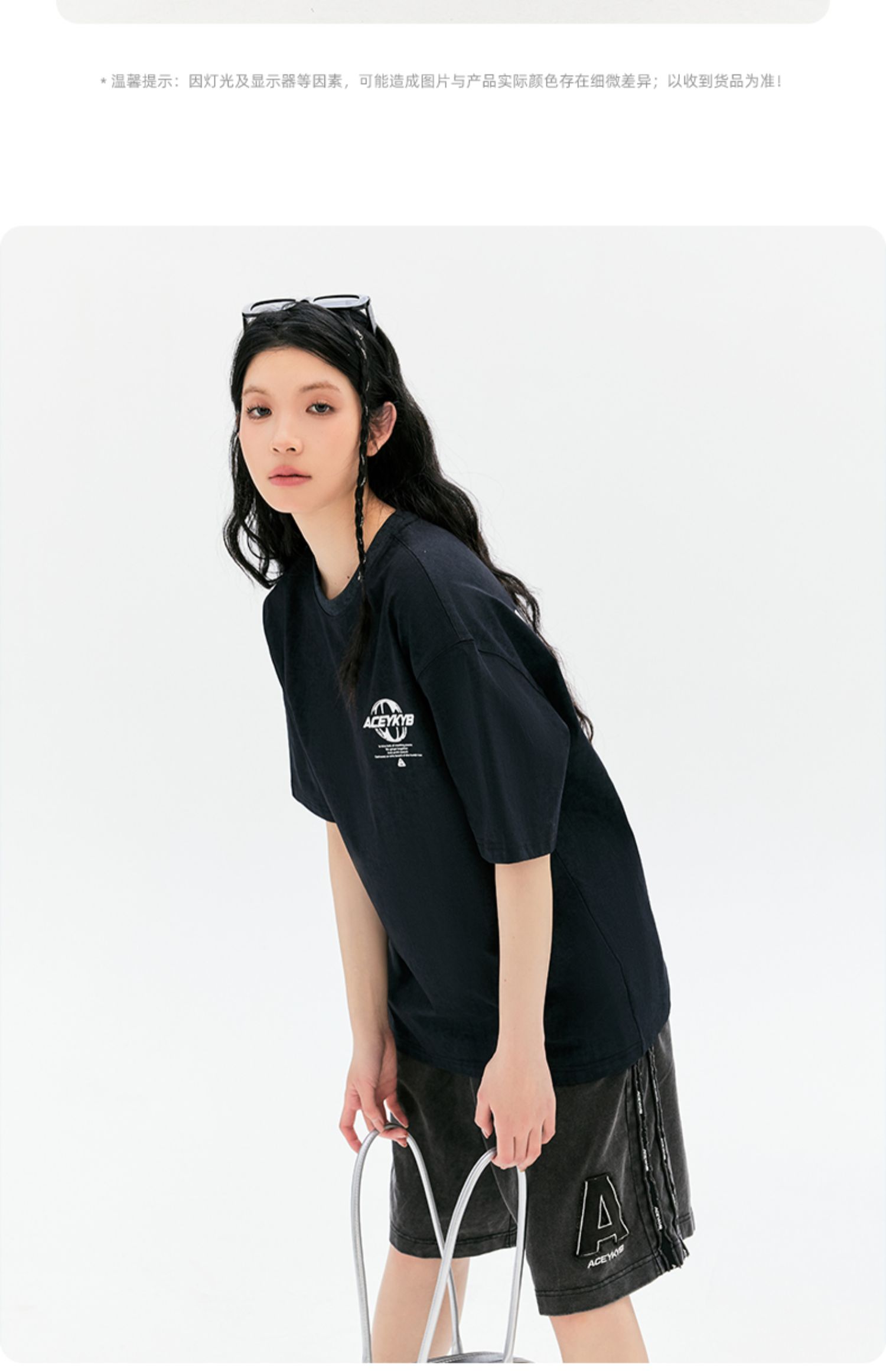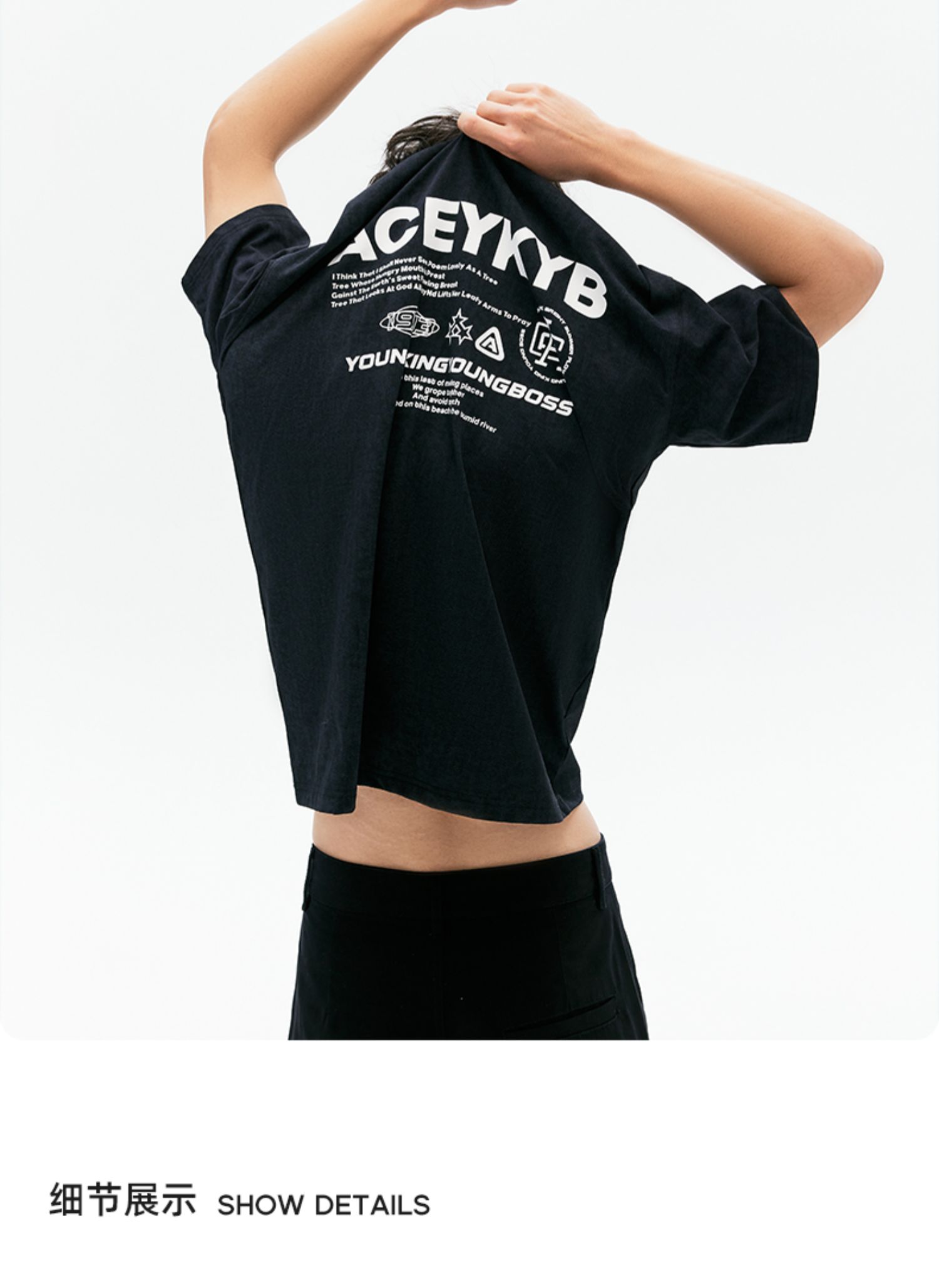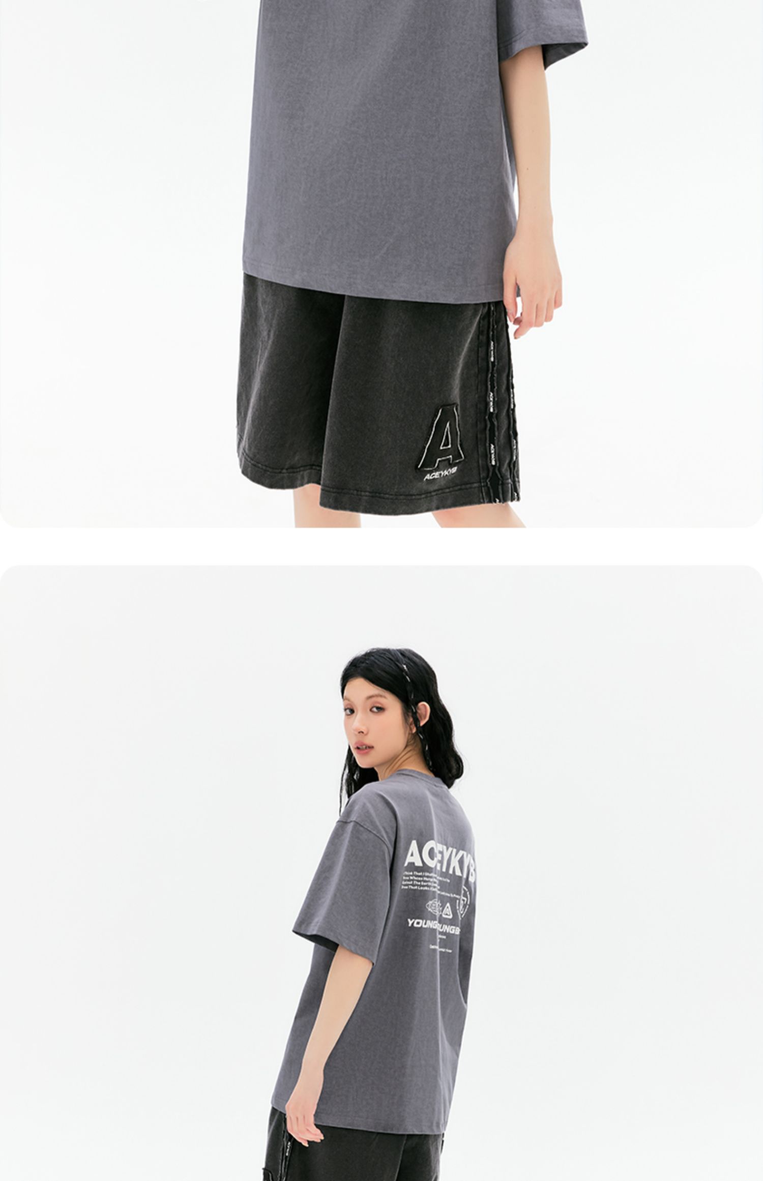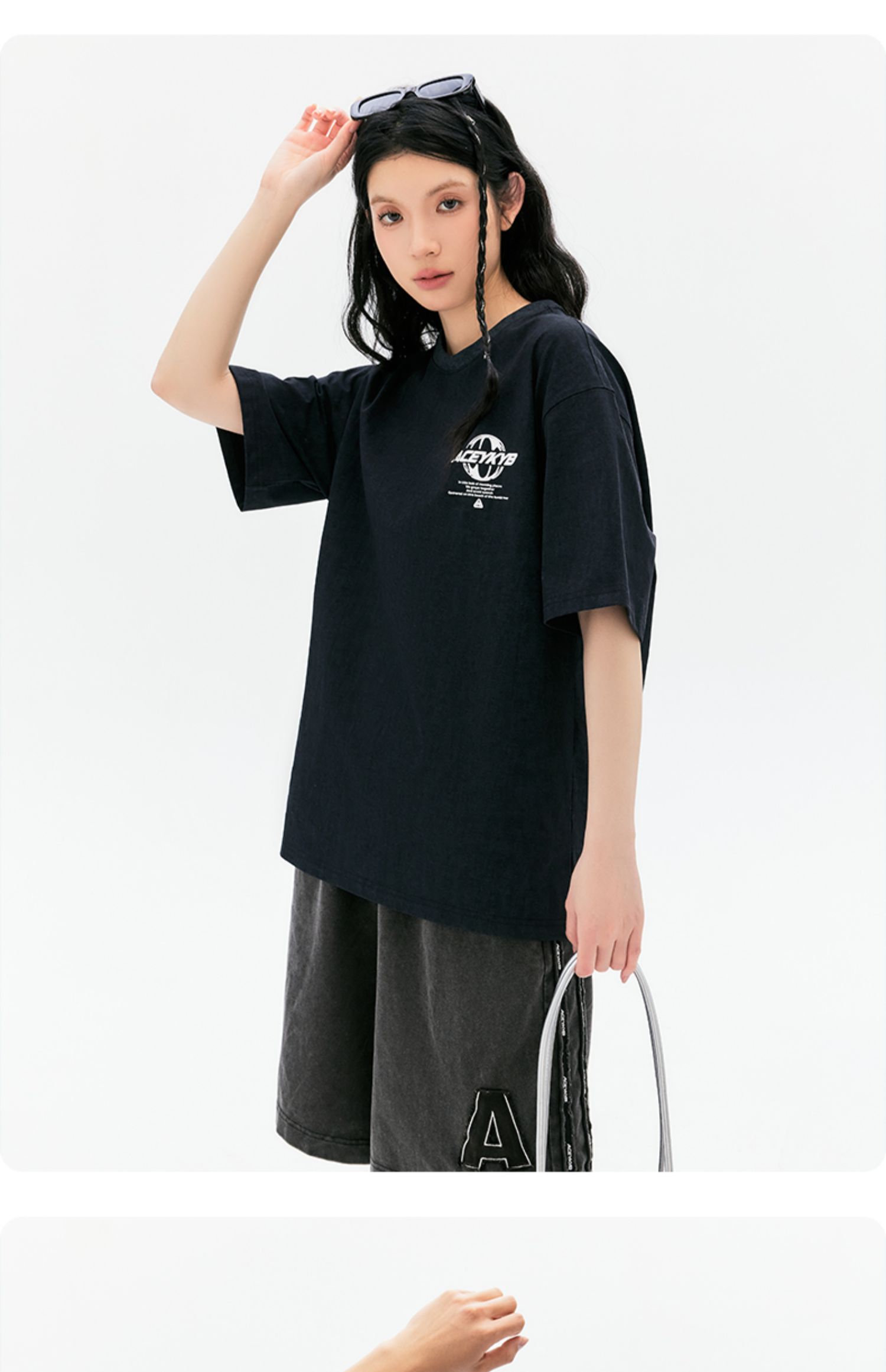 YKYB黄子韬美式复古印花短袖高街中性2025夏季新款水洗做旧t恤女