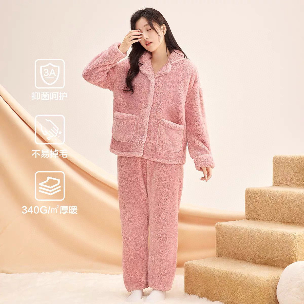 💰109元包邮,【红豆正品 】 加绒加厚,超长毛珊瑚绒女士冬季睡衣