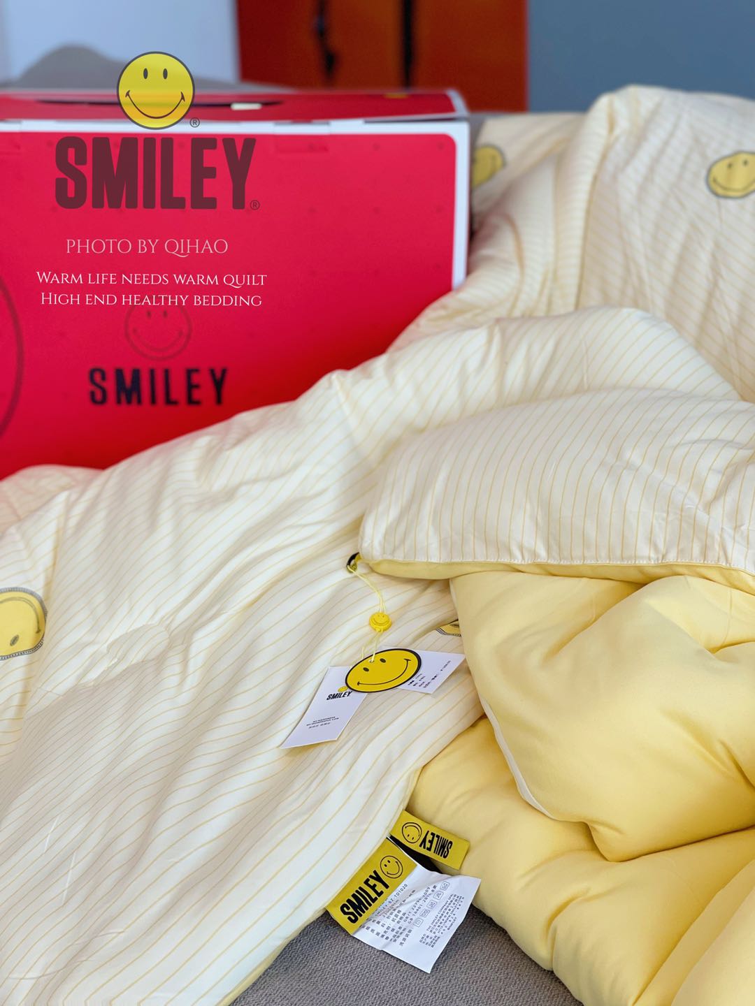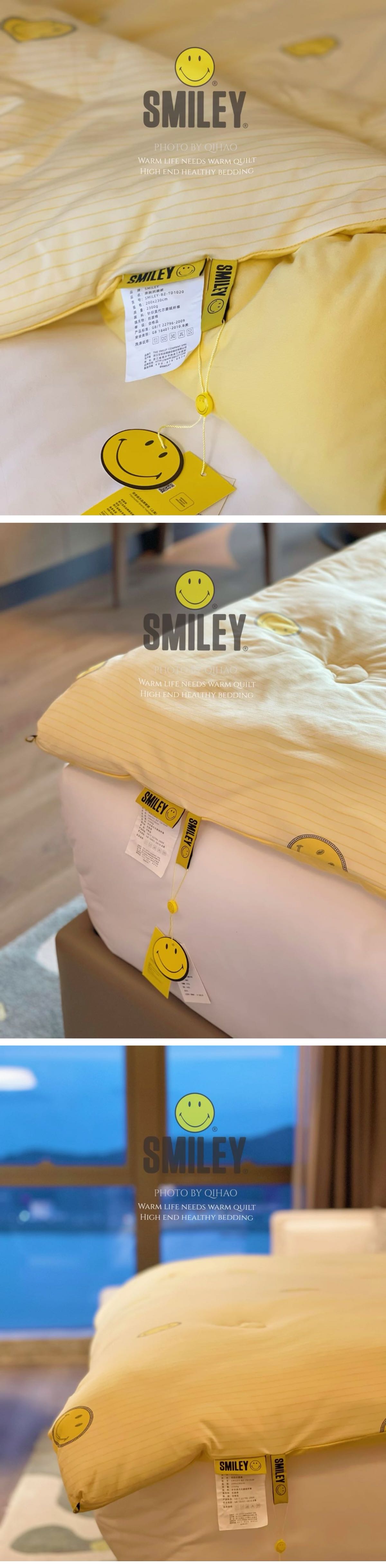 SMILEY堪称“被子界的王者”,柔软亲肤,一秒供暖!蓬松解压巨保暖,没见过弹力这么大的亲肤被,即使不套被套也舒服到爆,如同贴身内衣一样的亲肤感,软软糯糯的盖上像躺在云朵里一样感受~ 大爱~