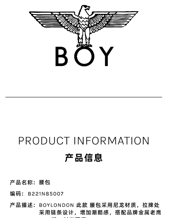 BOY腰包男女同款22春夏新品金属老鹰LOGO链条斜挎包B221N8500702