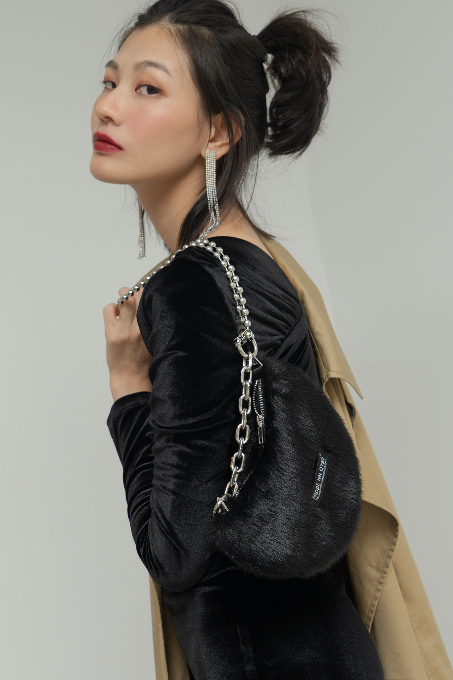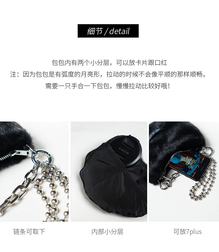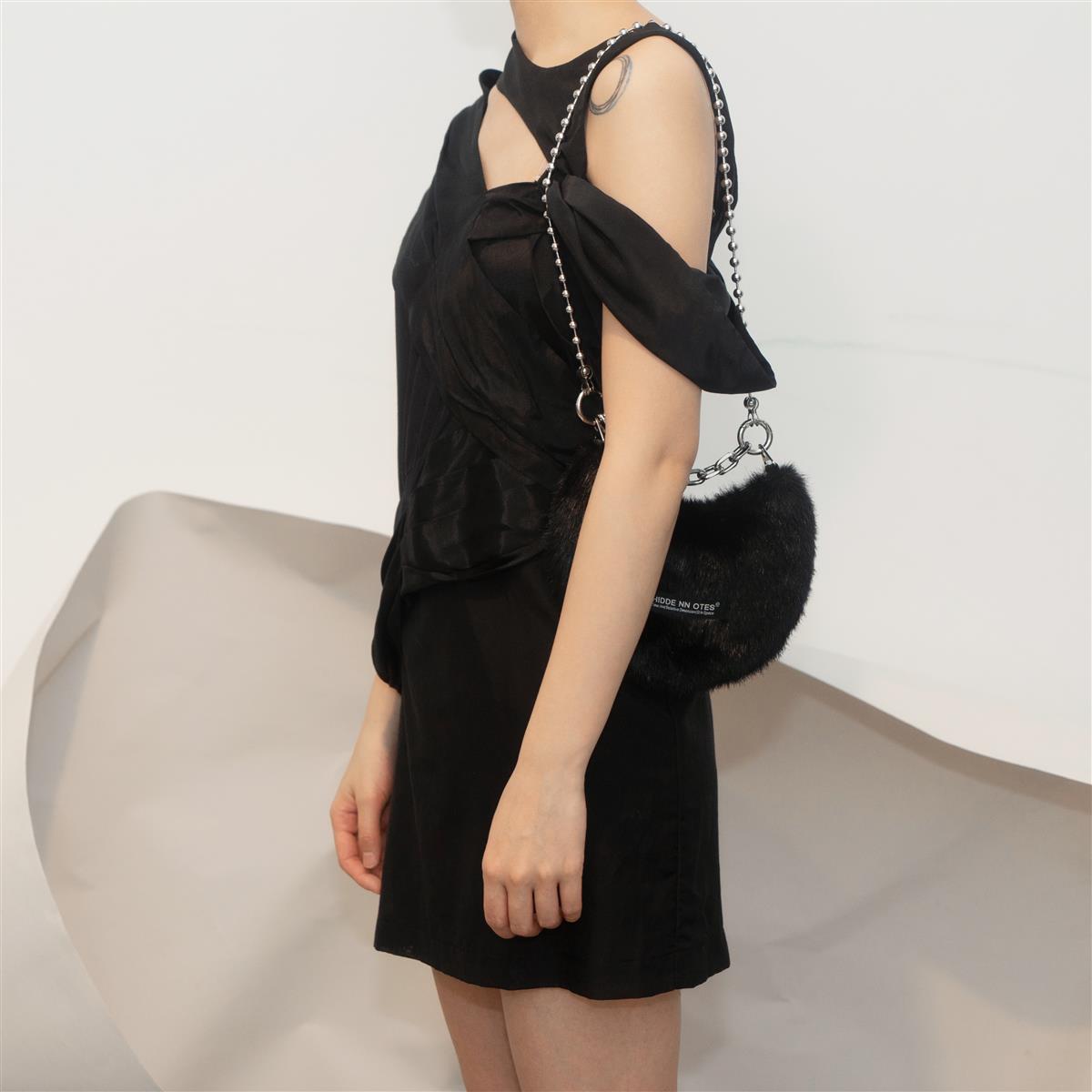 HIDDENNOTES l 千禧辣妹设计感链条单肩黑白腋下半月包小众腋下包