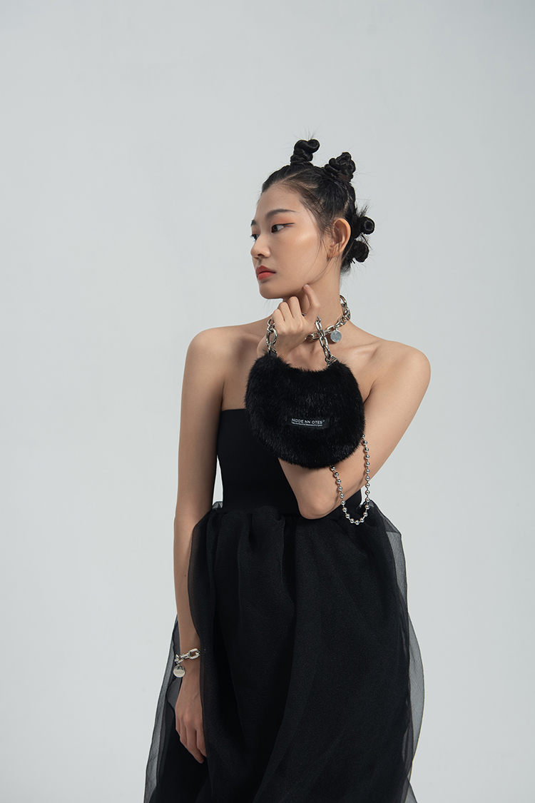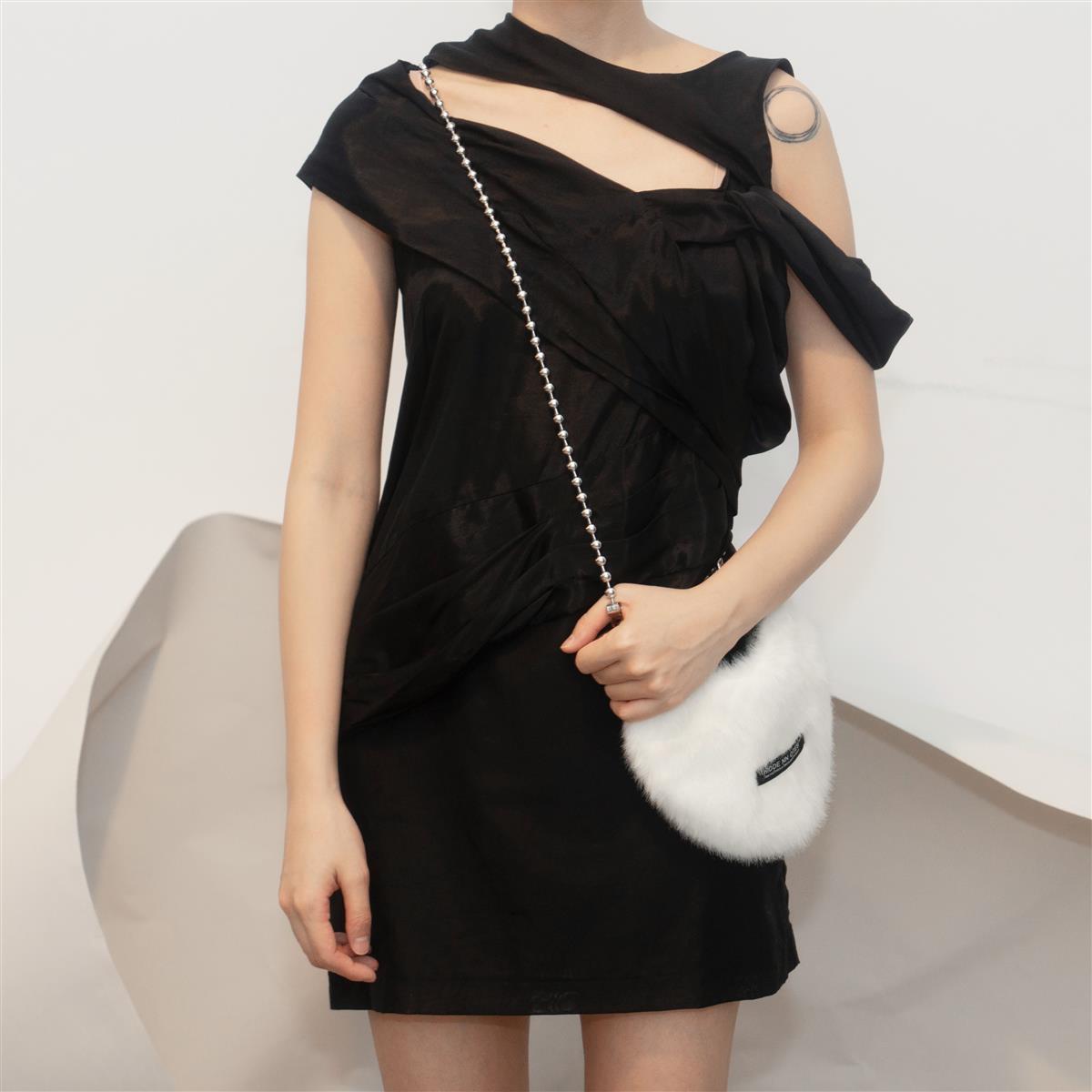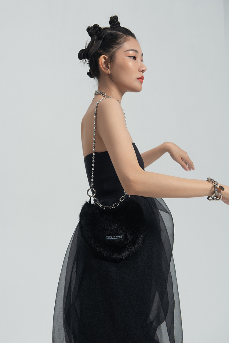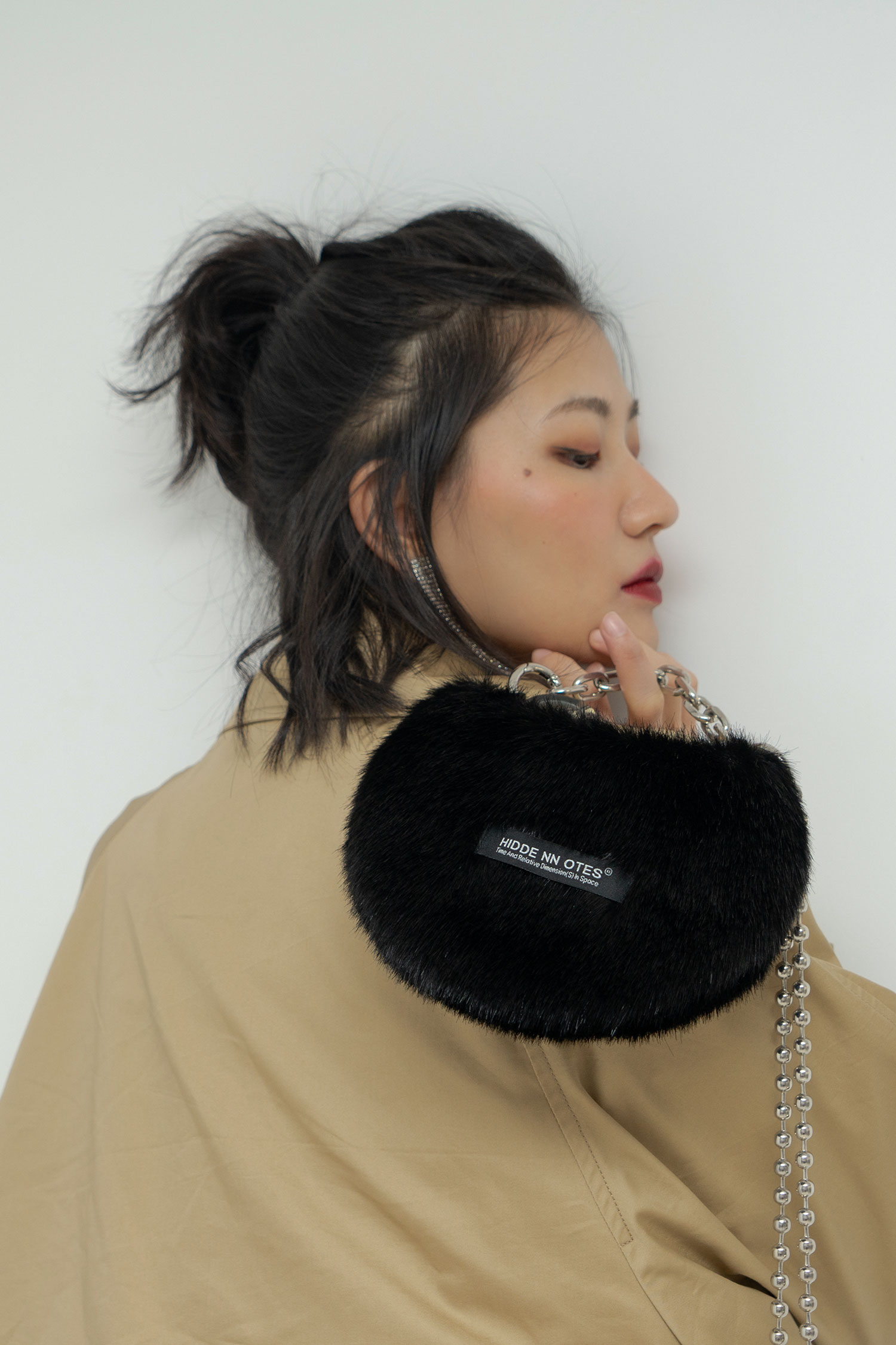 HIDDENNOTES l 千禧辣妹设计感链条单肩黑白腋下半月包小众腋下包