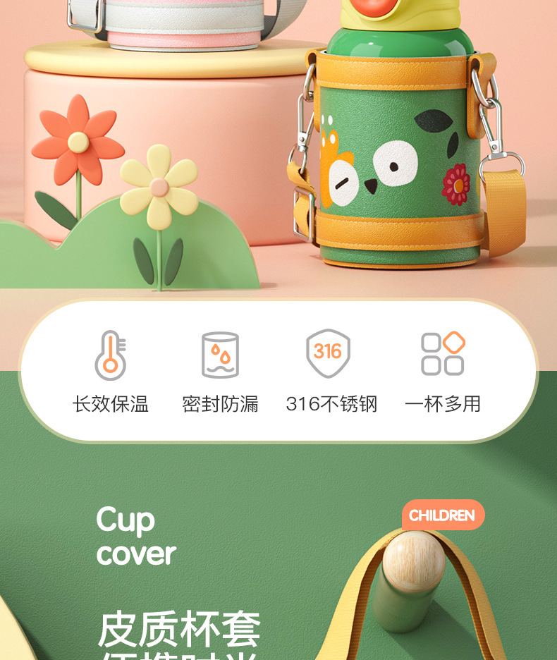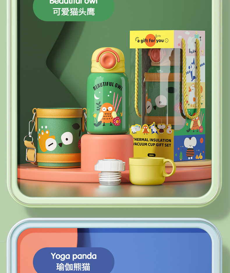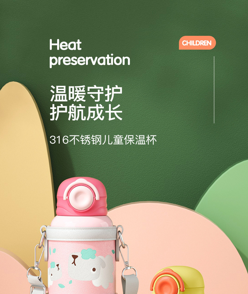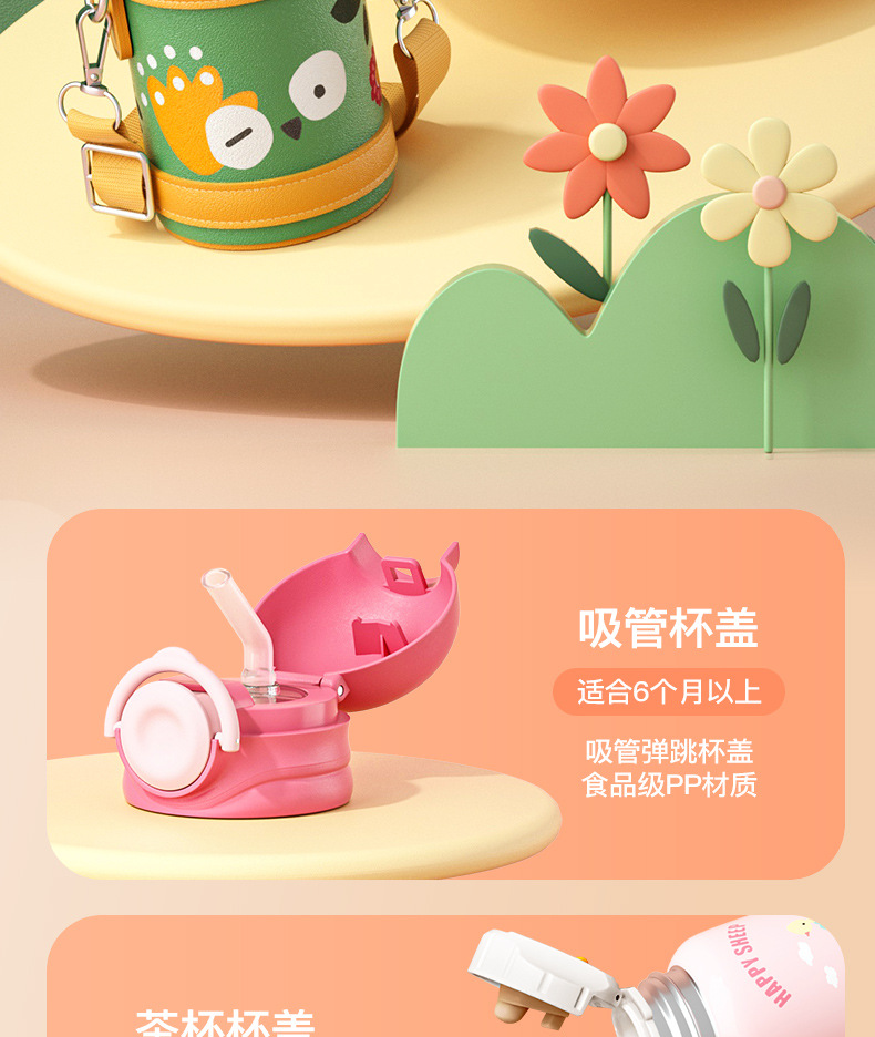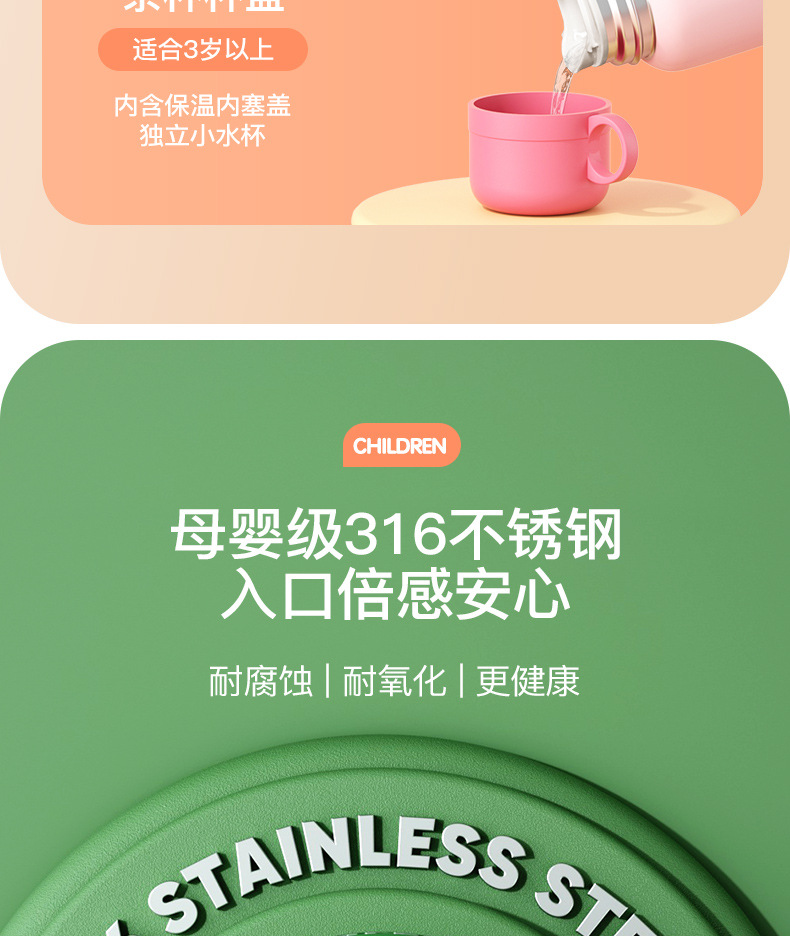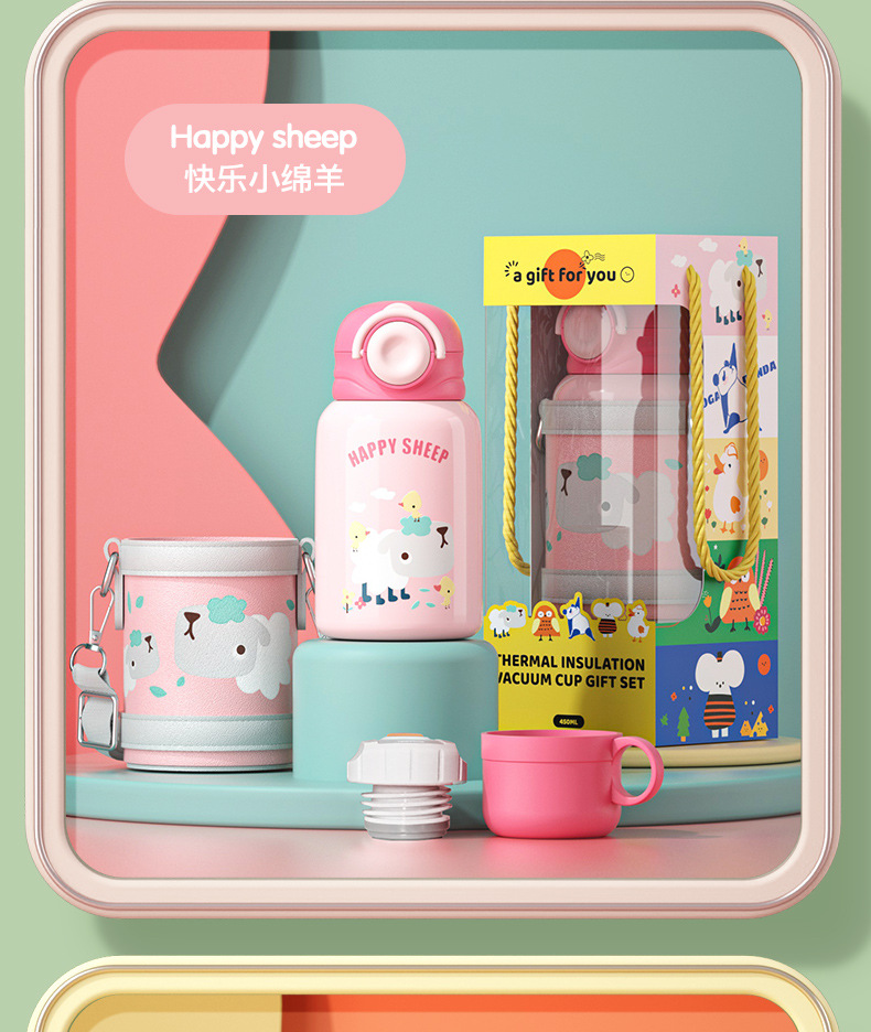 316不锈钢儿童保温杯可爱高颜值礼盒装男女便携吸管杯学饮杯