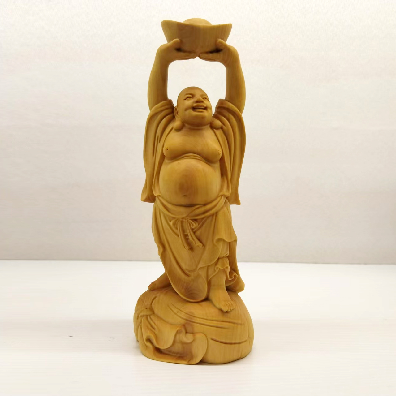 托宝弥勒°黄杨木雕摆件