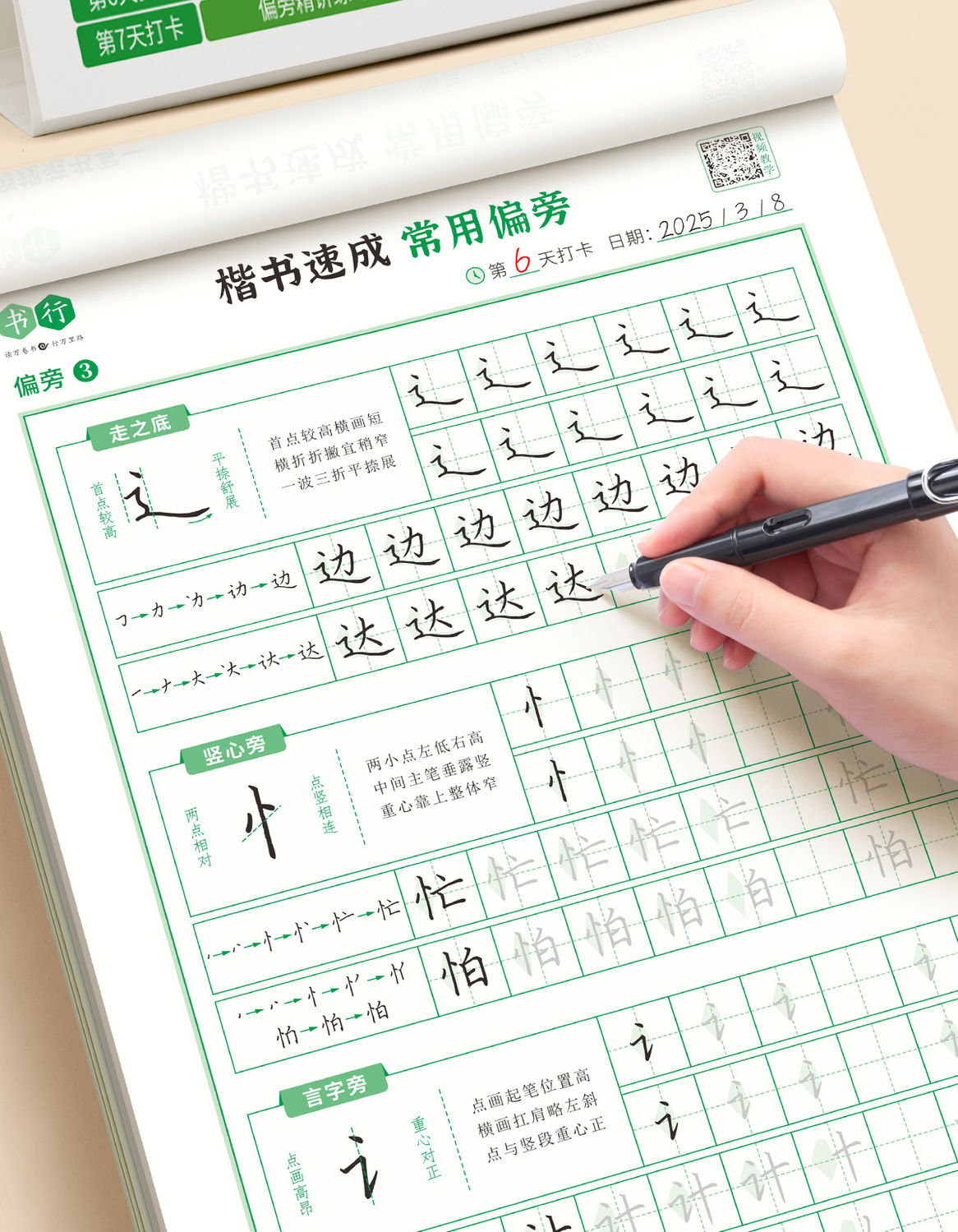 楷书速成字帖零基础入门成人字帖专用偏旁笔画大学生练字控笔训练