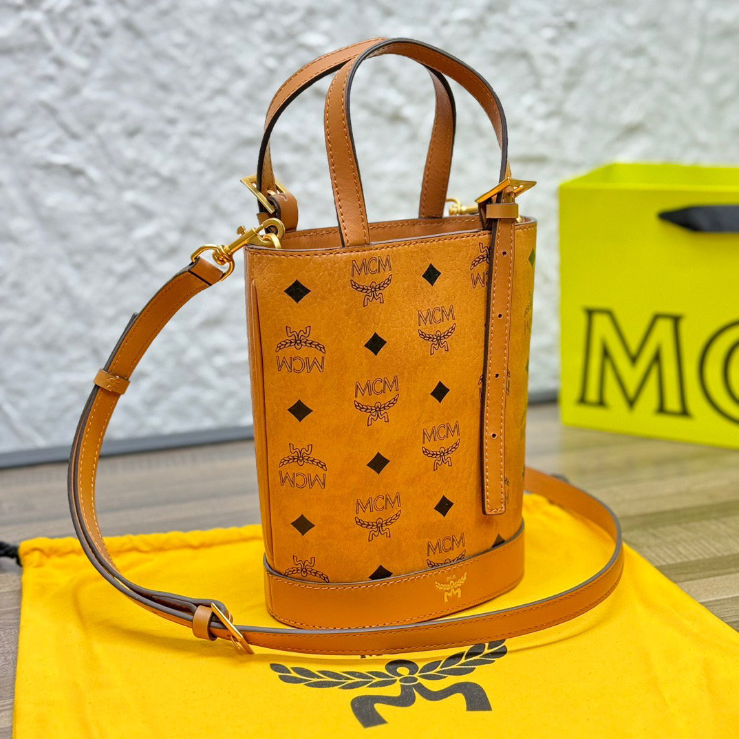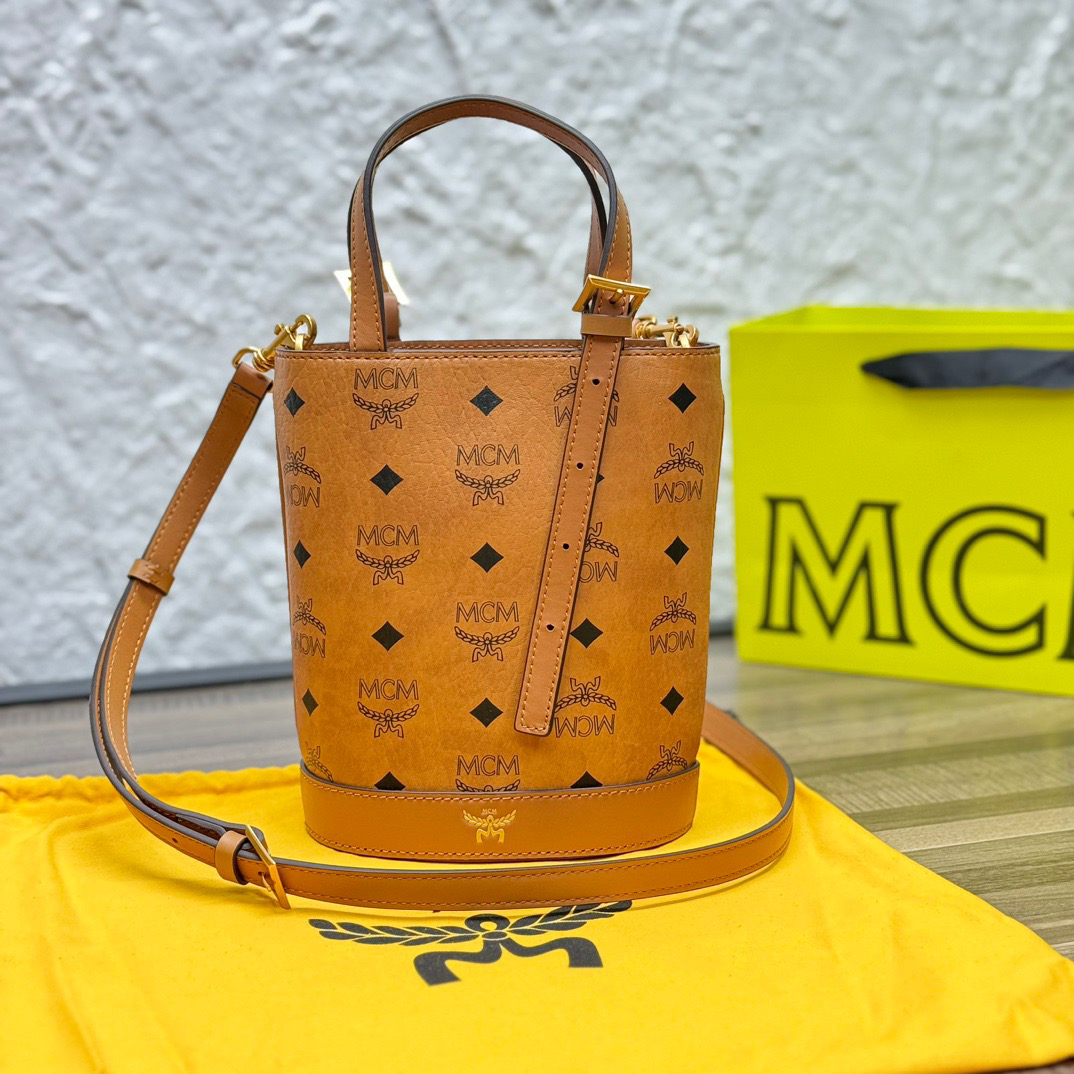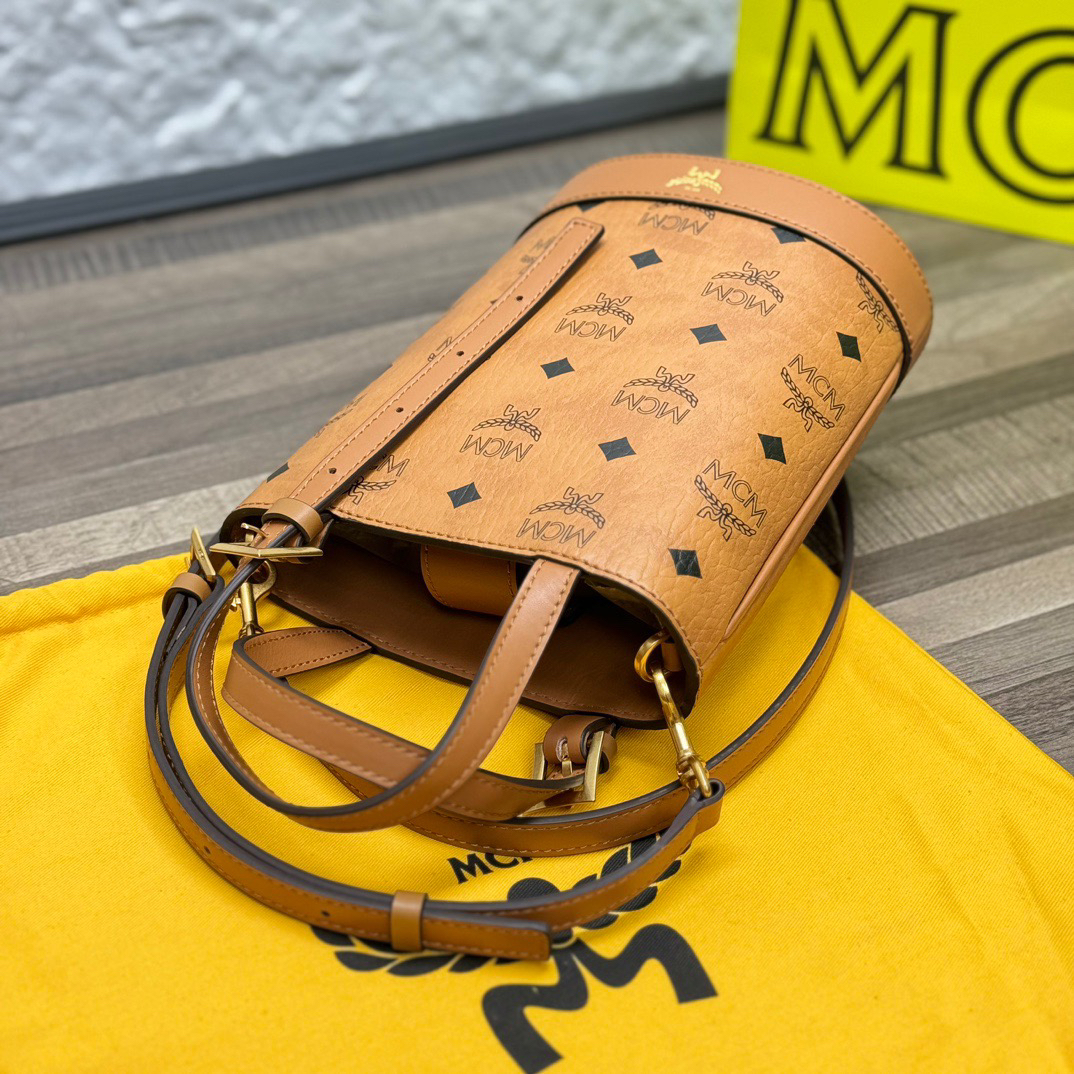 MCM "爆"款水桶包,时尚个性两不误,一眼万年款,整体经典老花的材质设计,经典百搭不俗,汲取了深厚的工艺知识,将经典款式与MCM不朽的工艺融于一体。包袋采用圆形设计,搭配皮革斜挎肩带