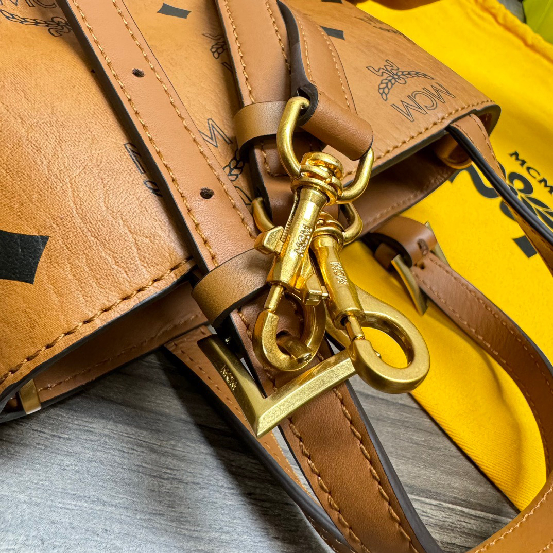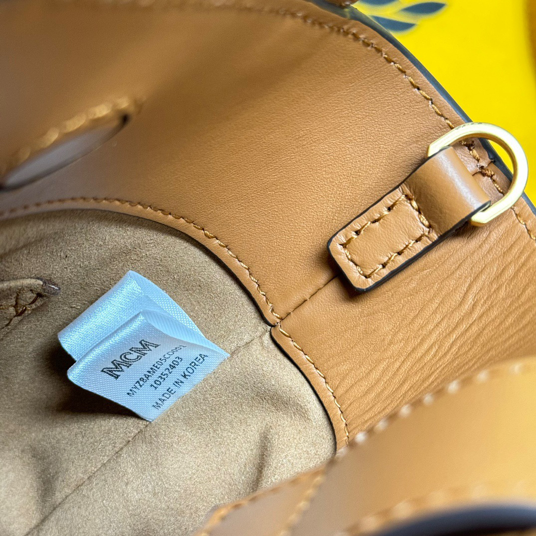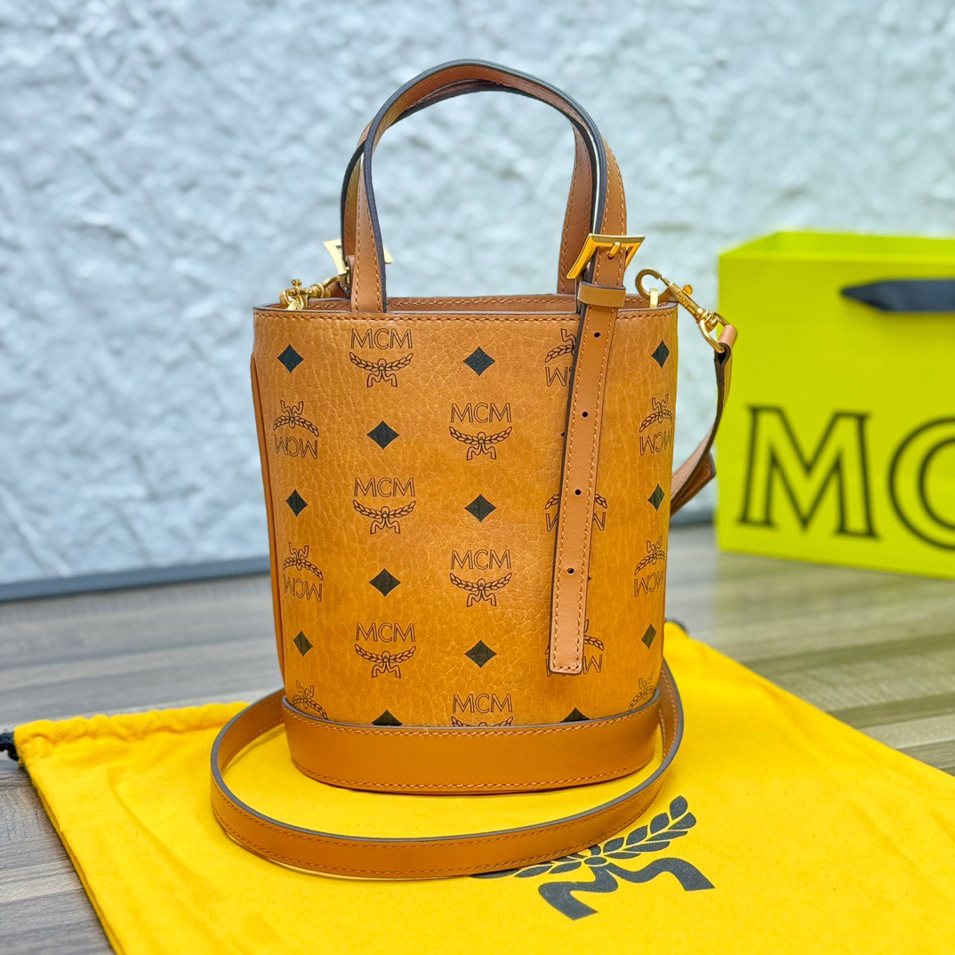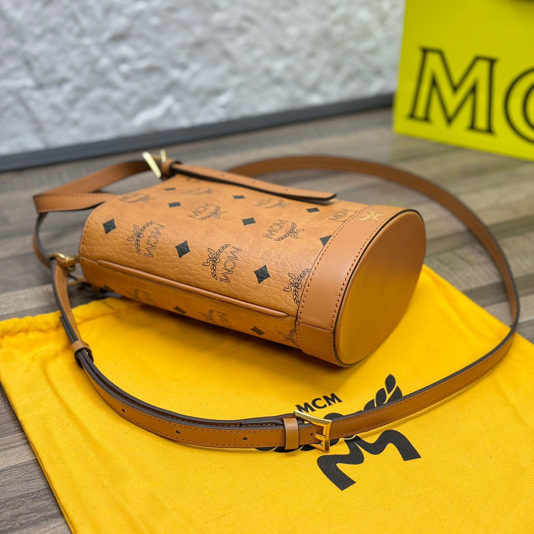 MCM "爆"款水桶包,时尚个性两不误,一眼万年款,整体经典老花的材质设计,经典百搭不俗,汲取了深厚的工艺知识,将经典款式与MCM不朽的工艺融于一体。包袋采用圆形设计,搭配皮革斜挎肩带