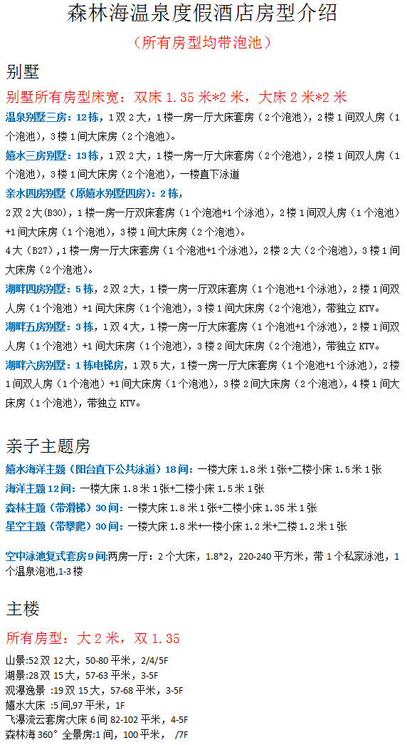 1) 每间房含双份早餐券和四张温泉乐园门票,亲子套房含三份早餐和六张温泉乐园票,空中泳池复式含四份早餐和八张温泉乐园票(温泉乐园门票为单次票,凭券进入,如需再次进入温泉乐园需自行到酒店前台购买门票);
