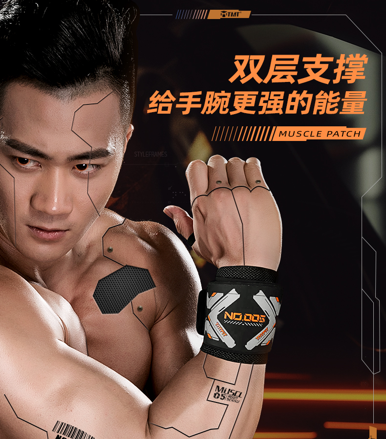 健身机甲风护腕卧推助力带护手腕力量训练专用加压绷带