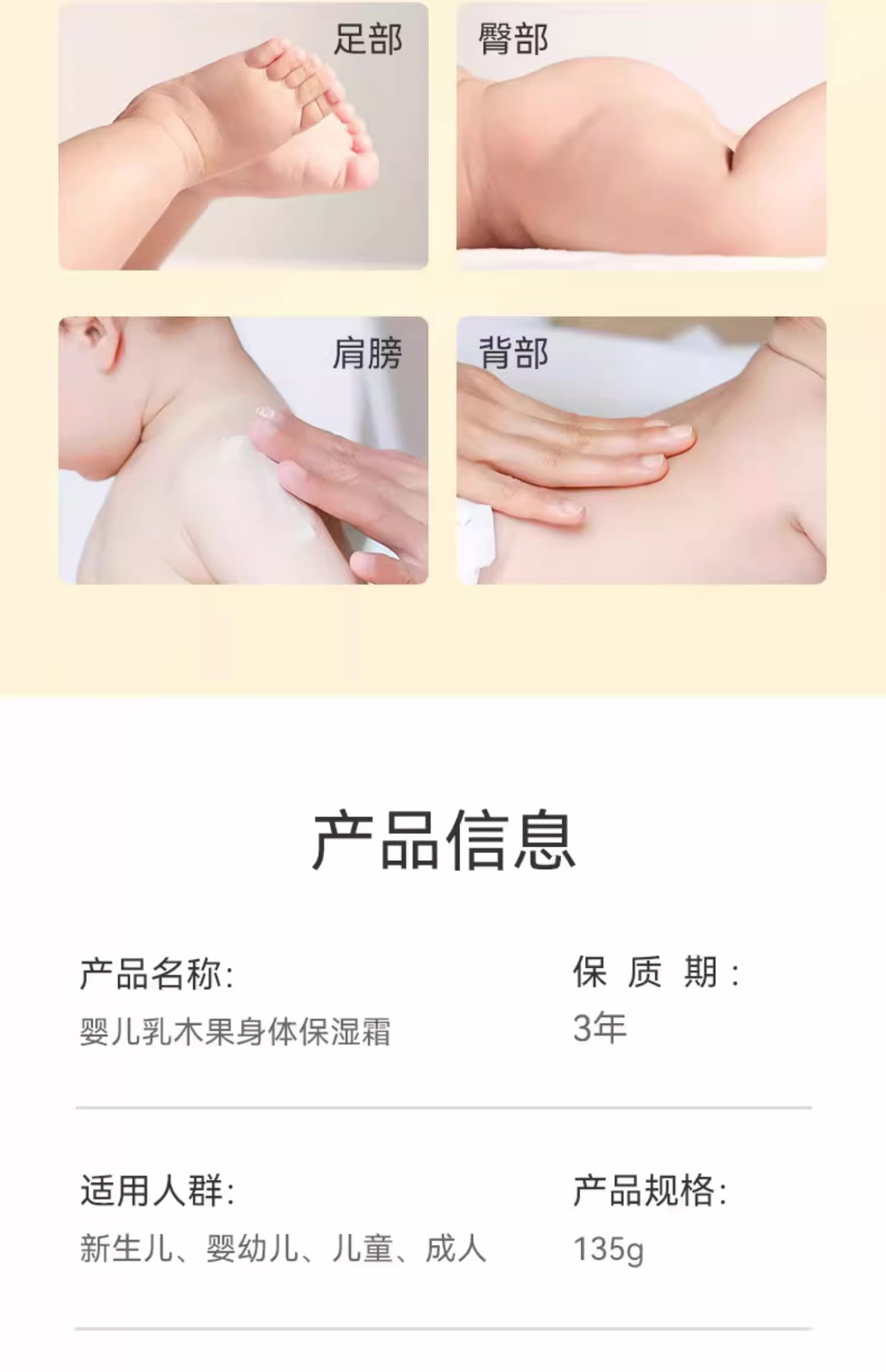 朋禾婴儿乳木果身体保湿霜(家庭装)135ml