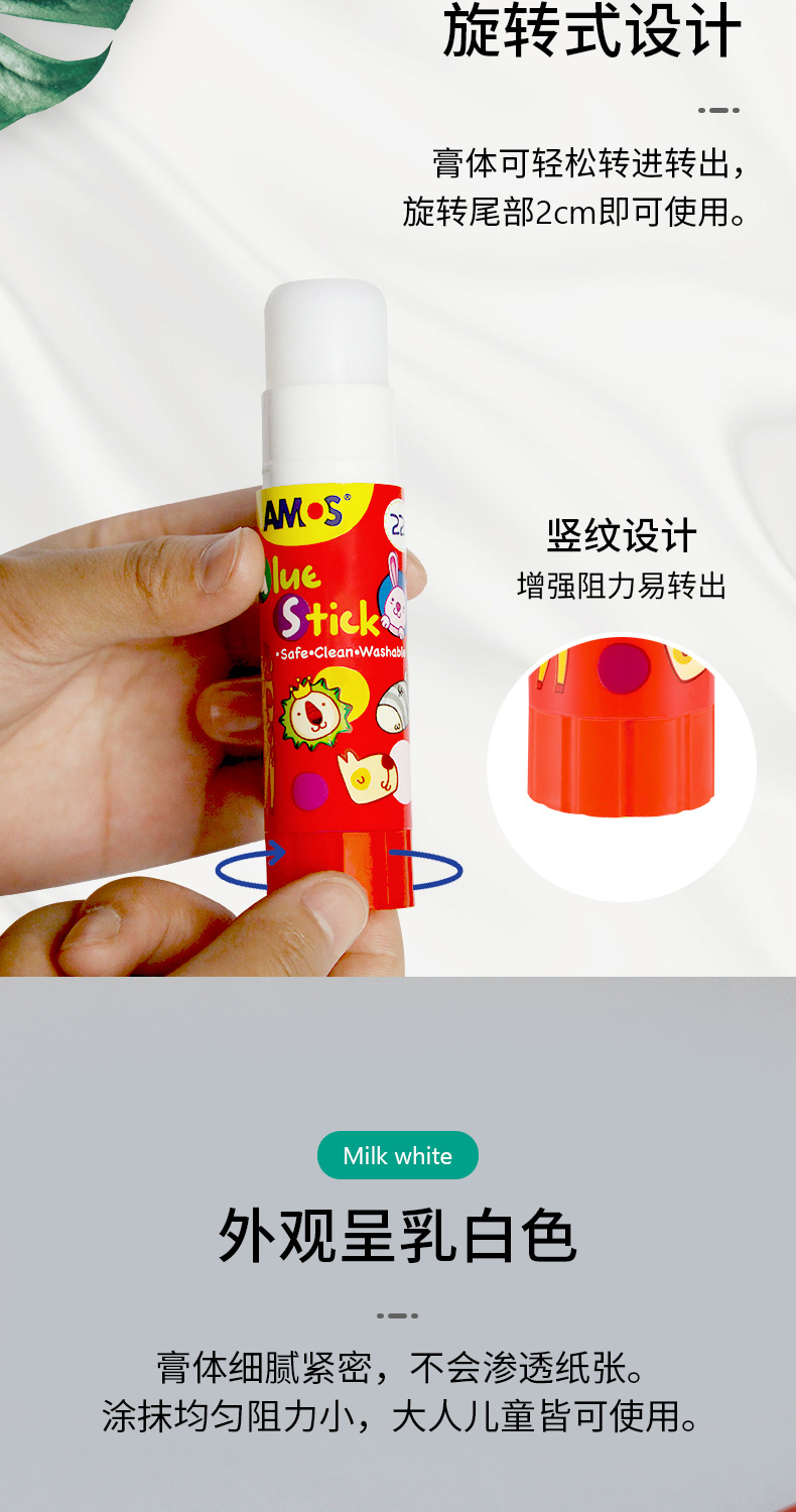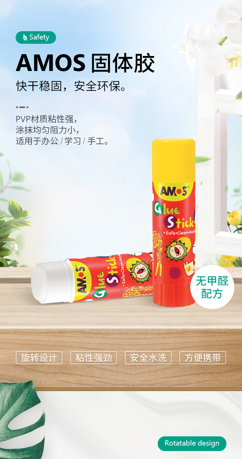 韩国 AMOS 固体胶棒 学生风格 PVP 净含量8克 GSW8AR 5个装